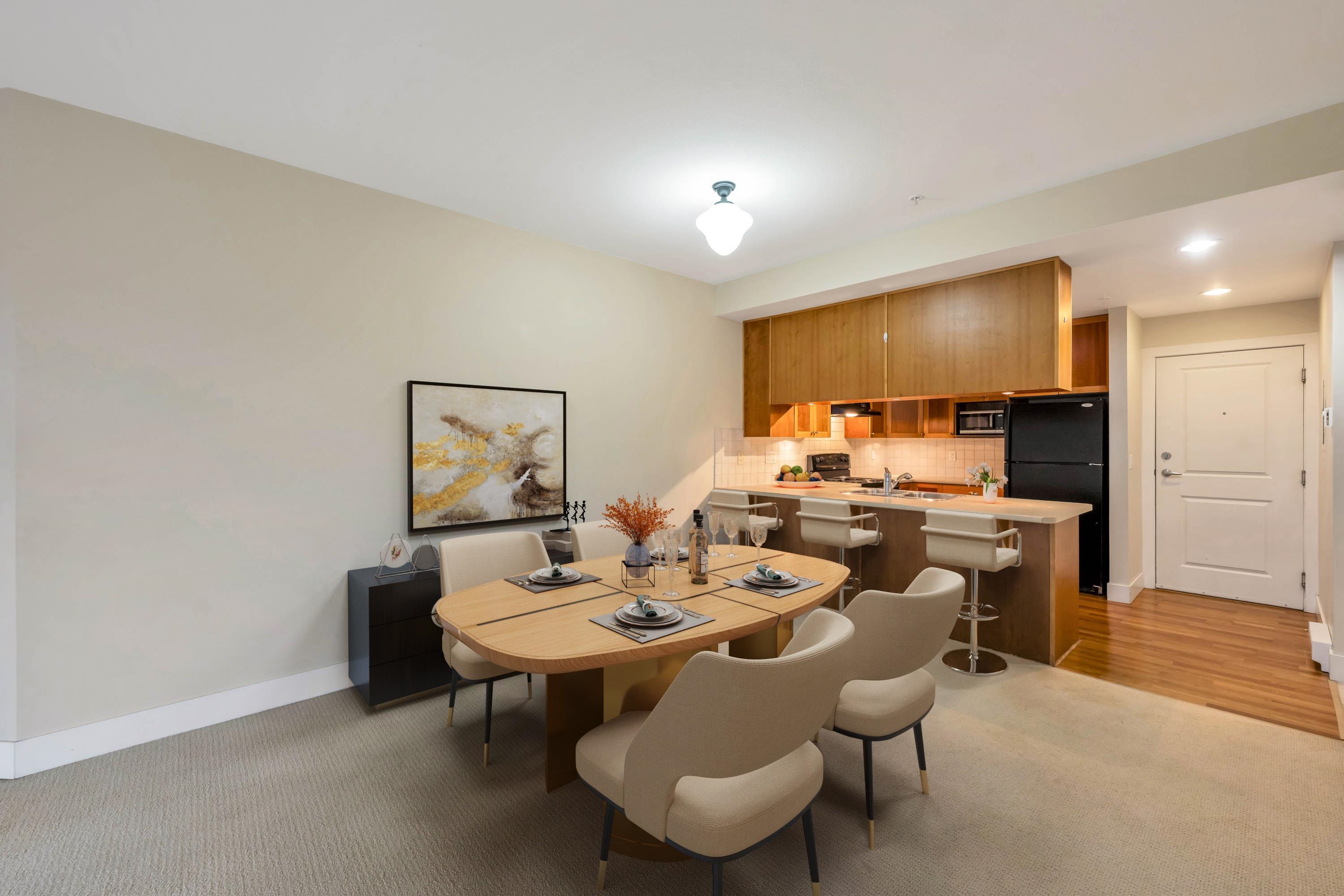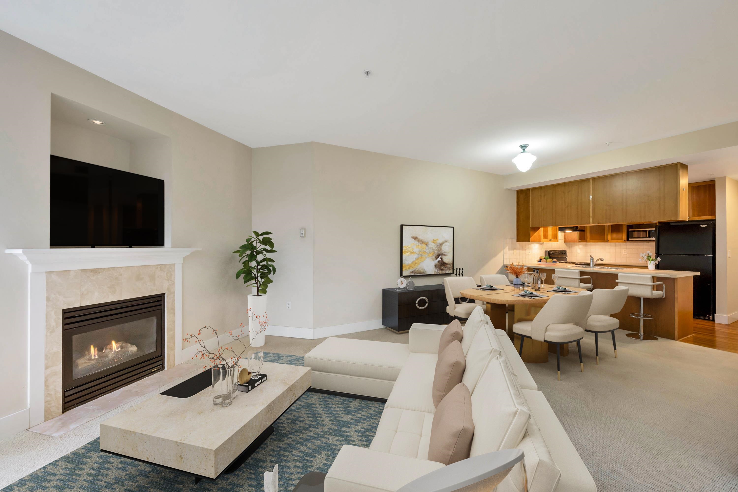 This beautiful spacious 2 bed, 2 bath condo in the heart of South Surrey/White Rock is Priced to Sell. Featuring bright open living room with gas fireplace (gas inc. in maint fees), dining room area with sizable kitchen. Primary bedroom has walk in closet and large ensuite. Huge covered patio facing courtyard, perfect for summer bbqs. Pets are welcome. 1 dog (no size restrictions)or 2 cats allowed. Comes with one underground parking and one storage locker. Amenities include, gym, lounge, and guest suite. Th...