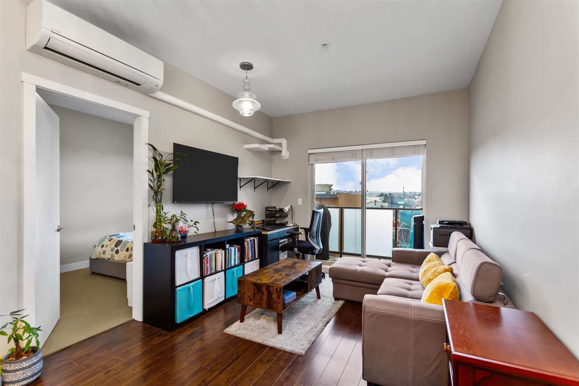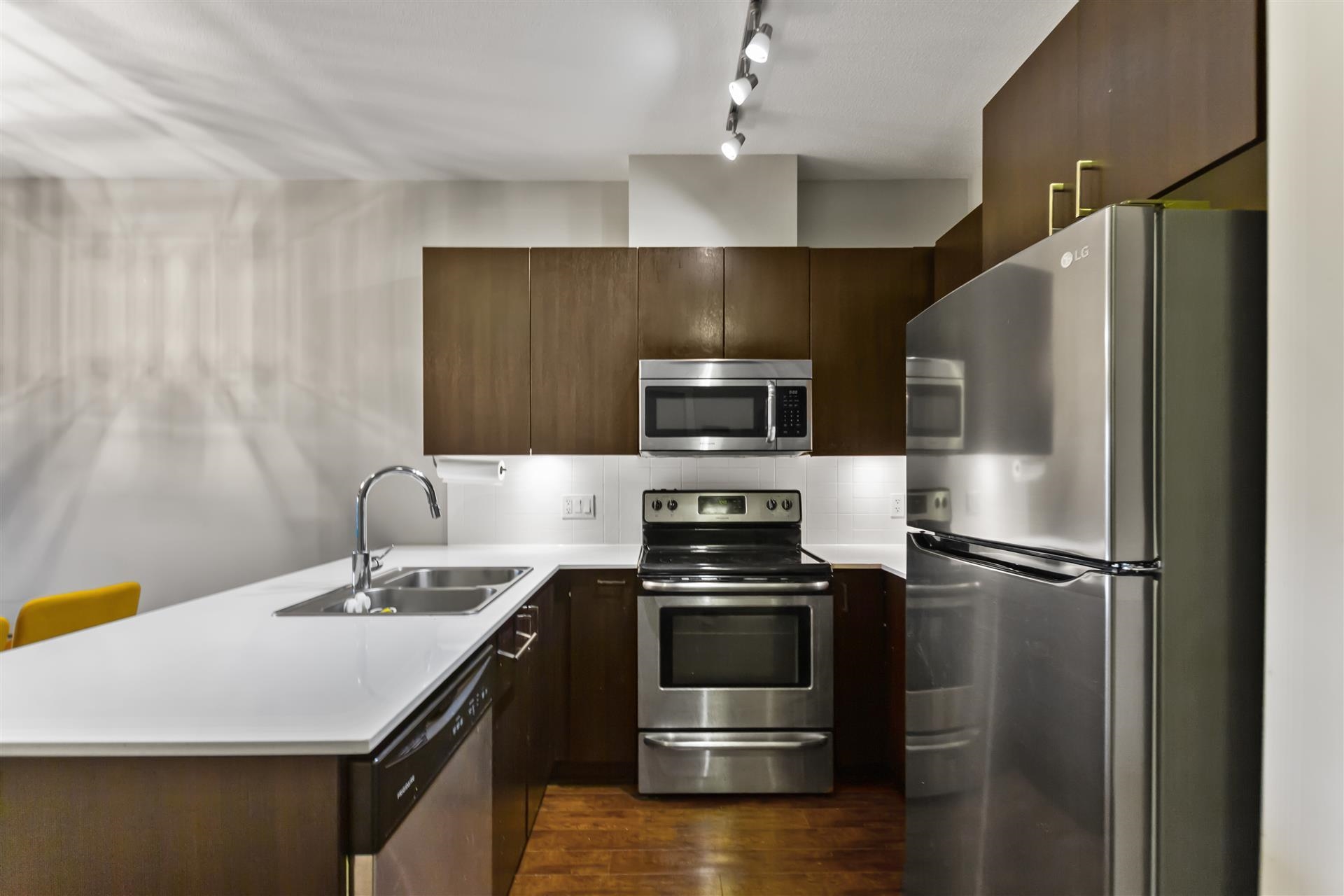 Spacious 1 bedroom, 1 bathroom condo in the heart of Langley City Centre, located beside Douglas Park and just two blocks from the future SkyTrain station. Functional open layout with great natural light, private balcony, and AIR CONDITIONING. Pets allowed (with owner approval), 1 parking stall included and optional storage locker available for extra cost. Well-managed complex offering amenities including a fitness centre, party room, and landscaped courtyard. Walk to groceries, restaurants, cafés, and dail...