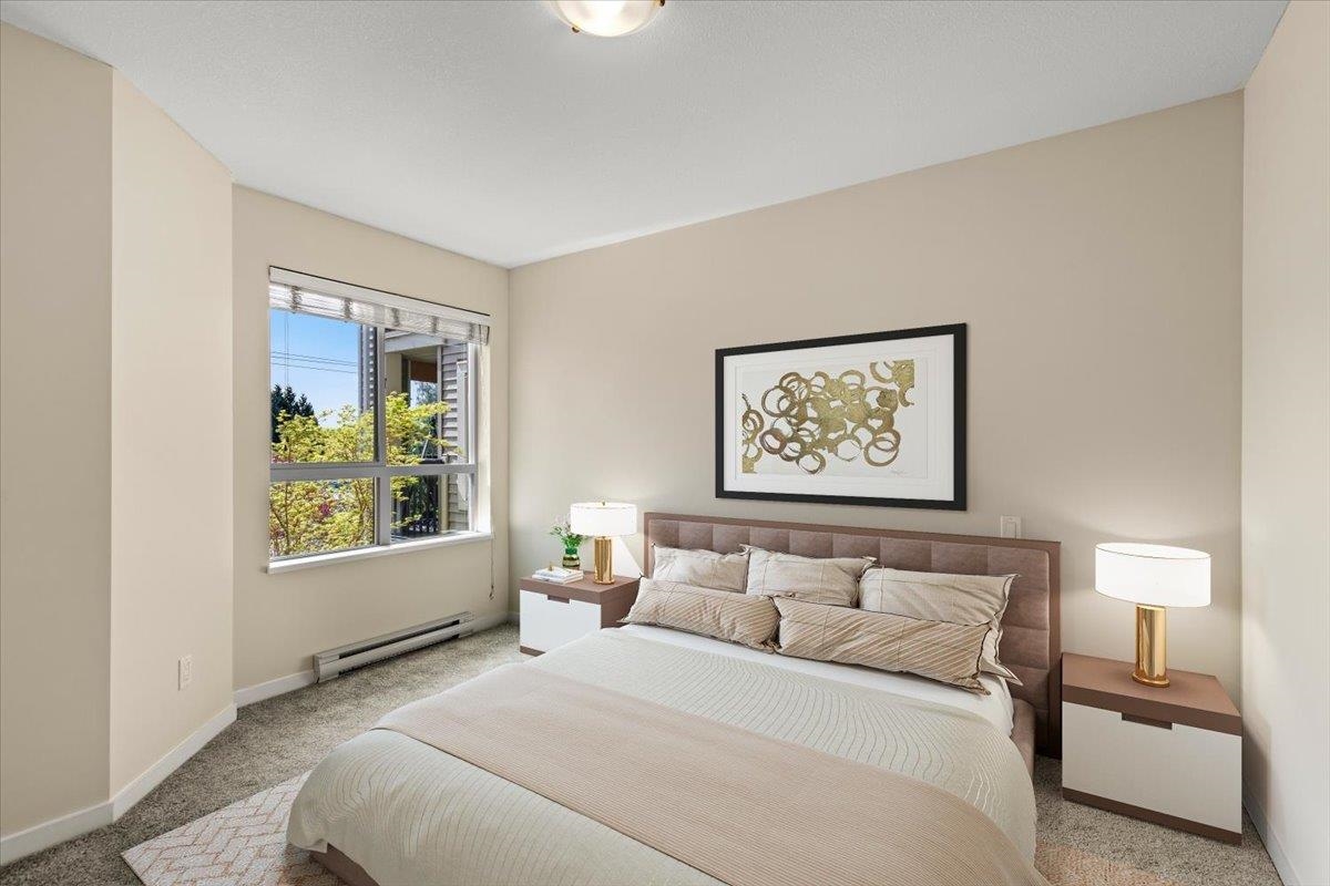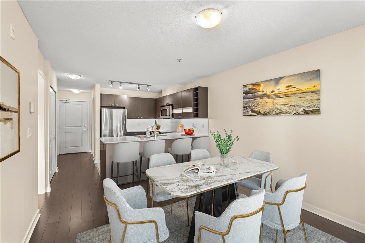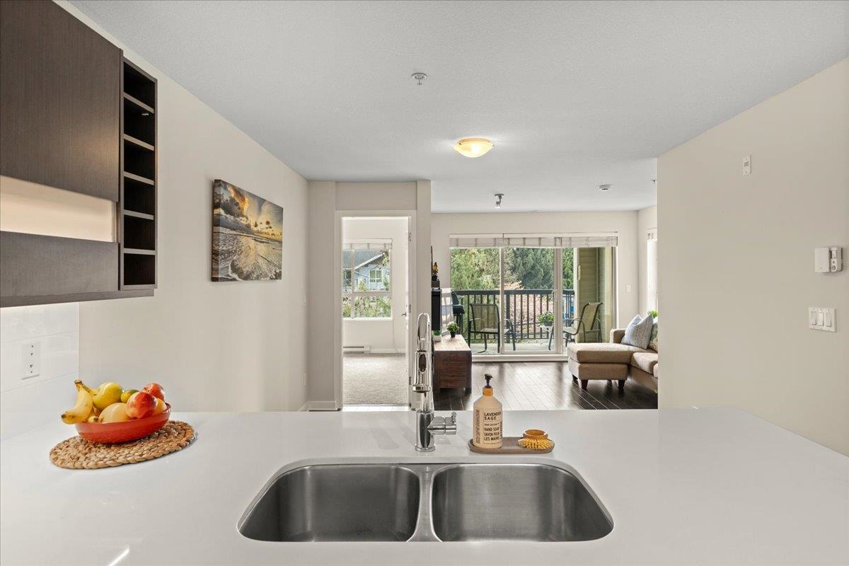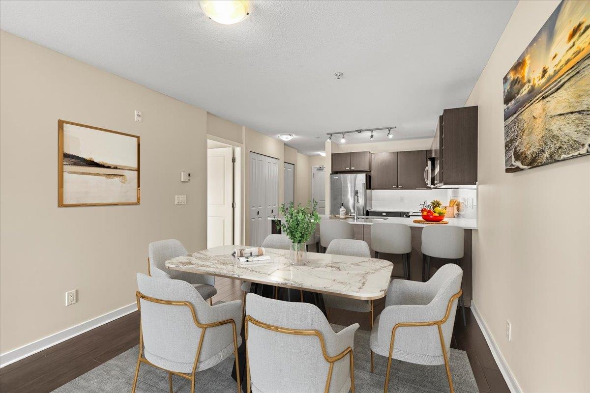Quality built, MARCON "Cornerstone" upper unit. Marcon's experience and attention to detail shines through in all the details. Everything makes sense and works well. Open concept, lots of natural light, SS appliances, quartz C/T, huge primary with a large walk in closet and ensuite. This well cared for unit is south facing, with a large covered balcony, brand new carpets & fresh paint. A laundry closet that actually has room for laundry soap! The large balcony is large enough for several people, chairs, pl...