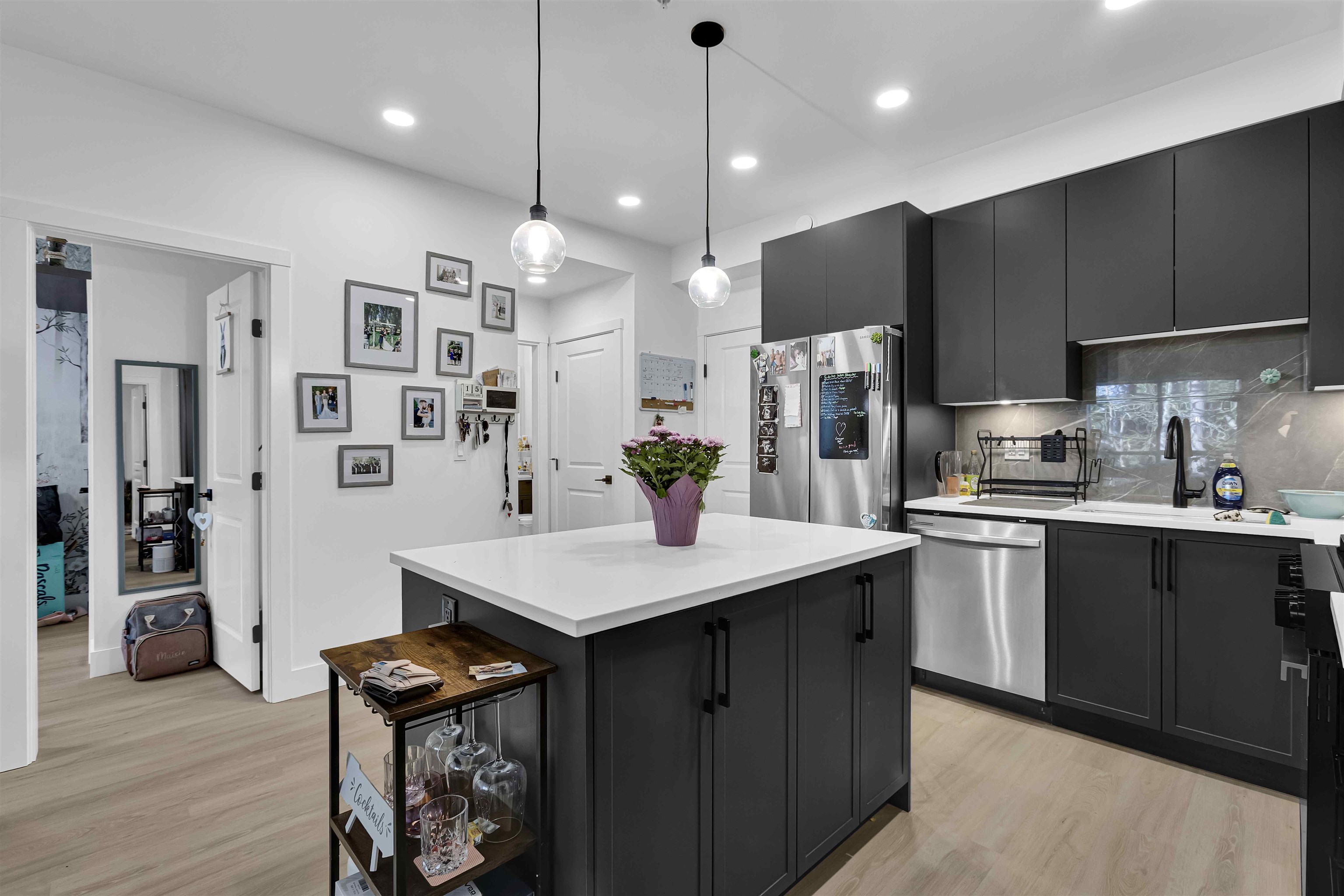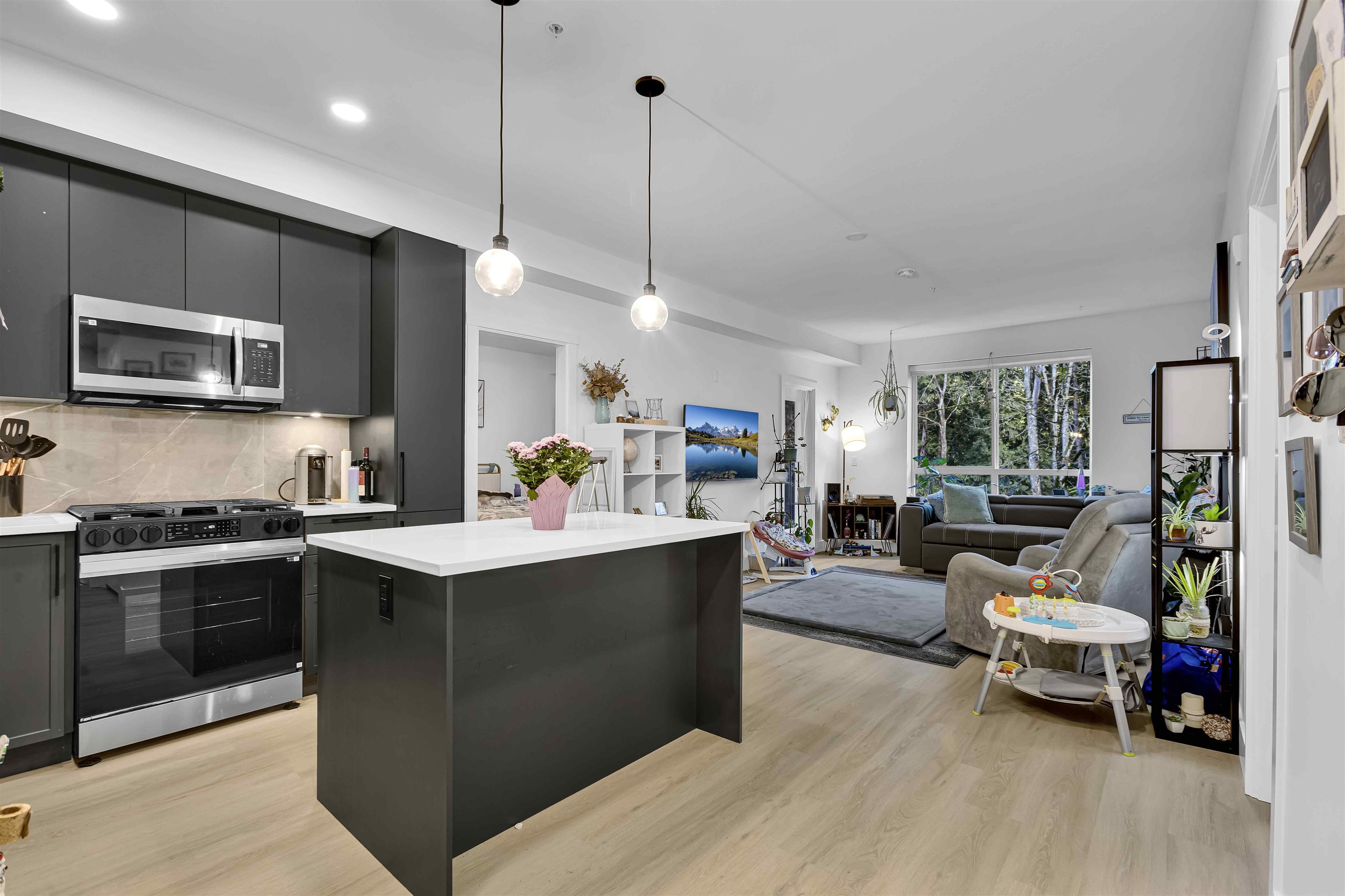 INVESTORS AND FIRST-TIME HOME BUYERS ALERT! Welcome to King + Crescent by Zenterra Developments. This 2 BED, 2 BATH home offers 884 SQ FT of OPEN-CONCEPT living with the Stone colour scheme, upgraded VINYL FLOORING, 9’ CEILINGS and oversized windows. The kitchen features QUARTZ COUNTERS, soft-close cabinetry and S/S APPLIANCES. Thoughtfully designed with a spacious PRIMARY BEDROOM and WALK-IN CLOSET. Enjoy a covered patio with NATURAL GAS hookup. Amenities include a FULL GYM, yoga room and spin studio. PRIM...
