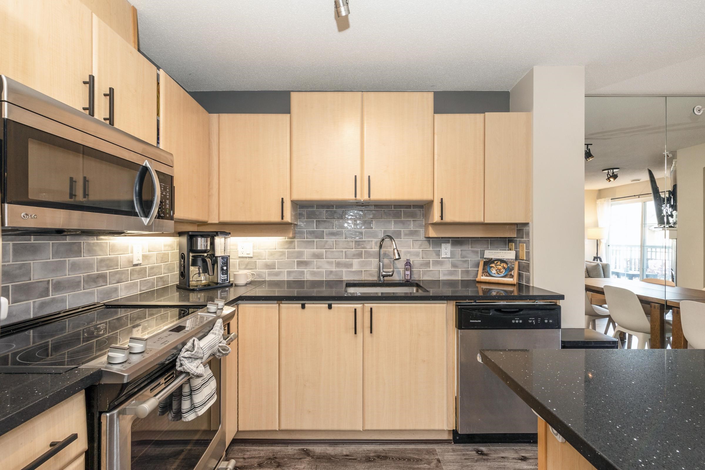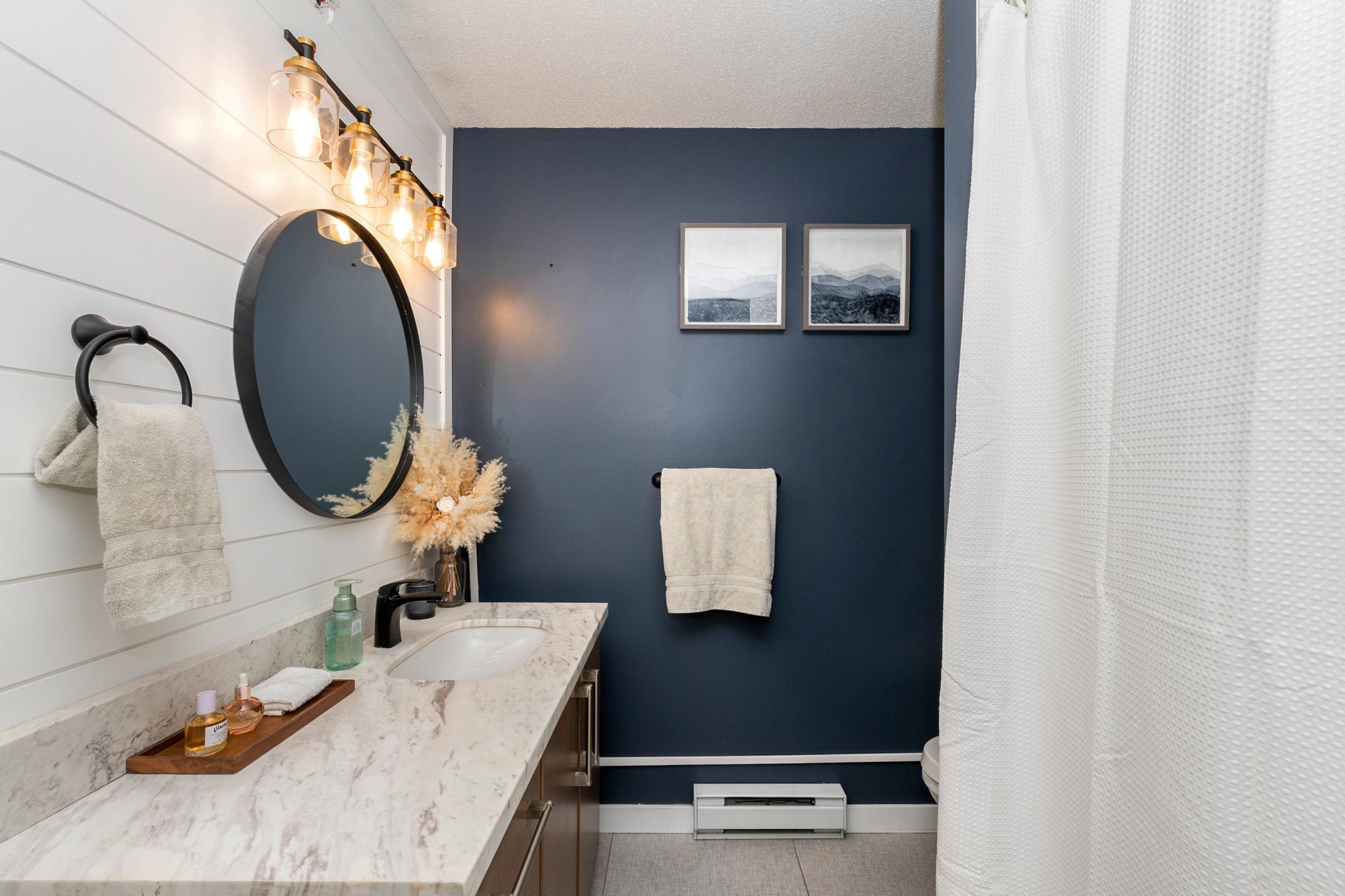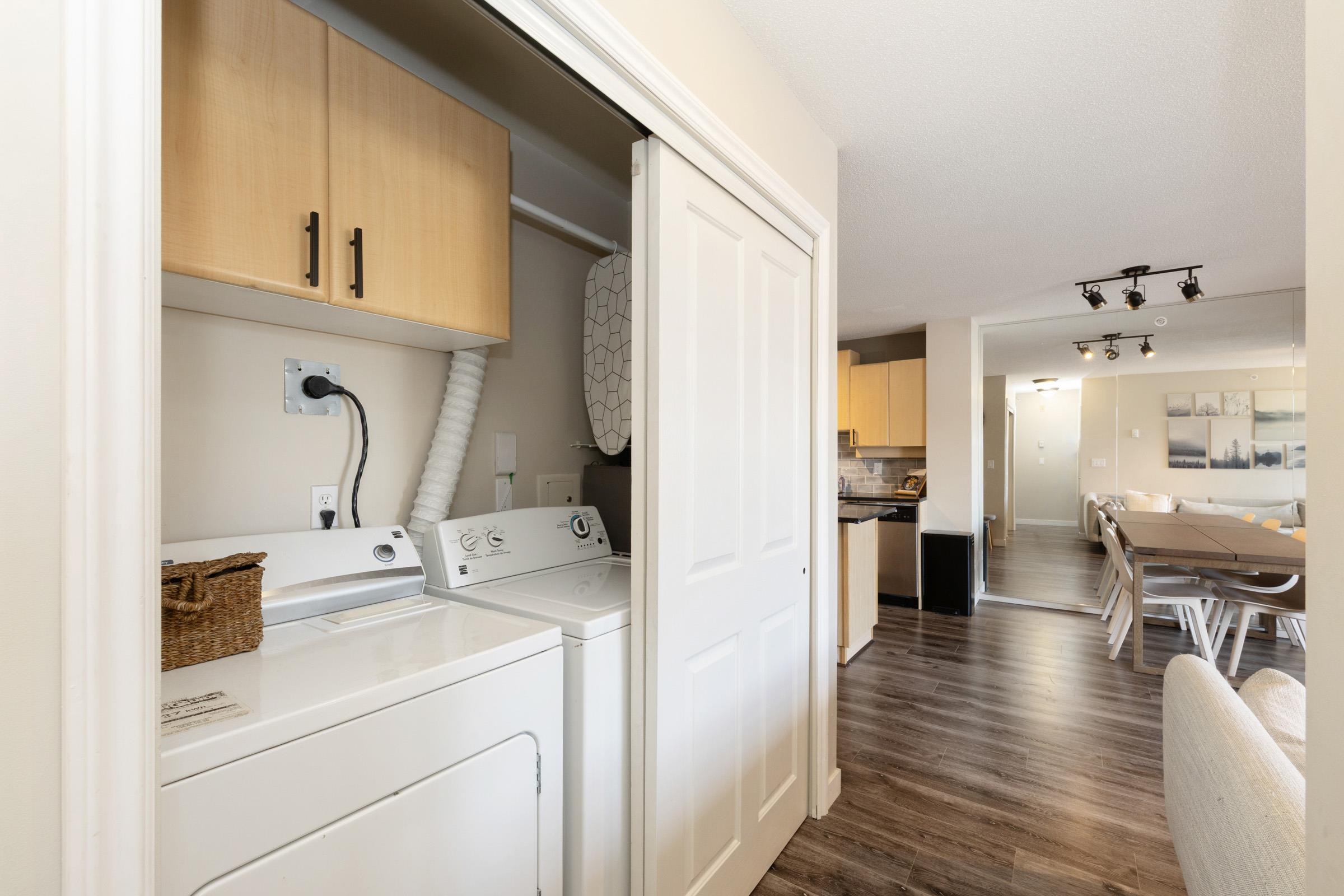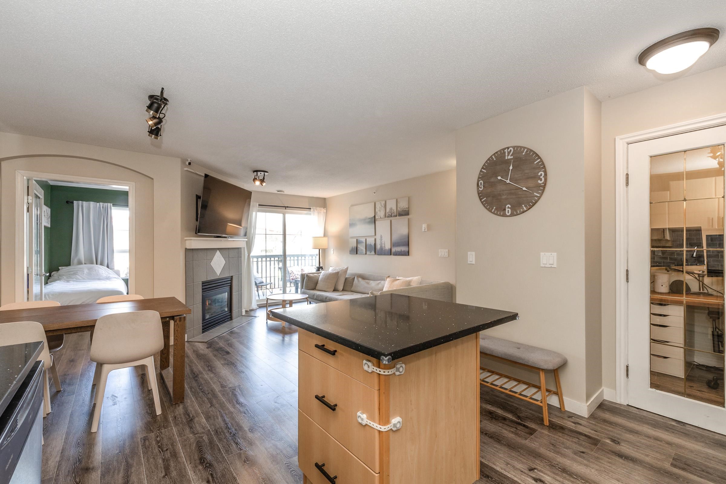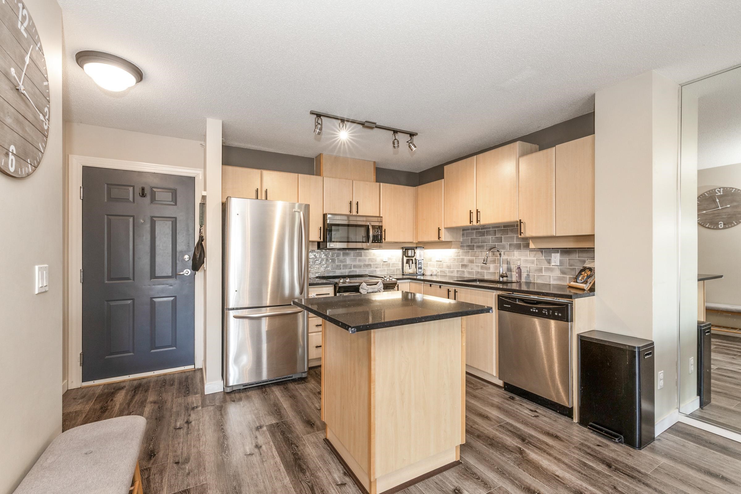 Stunning top-floor 2 bed + den condo blending modern style & comfort. Fully renovated with a sleek kitchen featuring stainless steel appliances, quartz counters, large island, stylish backsplash, fresh laminate floors & new paint. Bright, open living/dining area with cozy gas fireplace (included in fees) flows to a generous balcony offering beautiful mountain views—ideal for coffee or gatherings. Sunny primary suite has walk-in closet, large picture window & custom accent wall. Spa-like bathroom boasts new ...