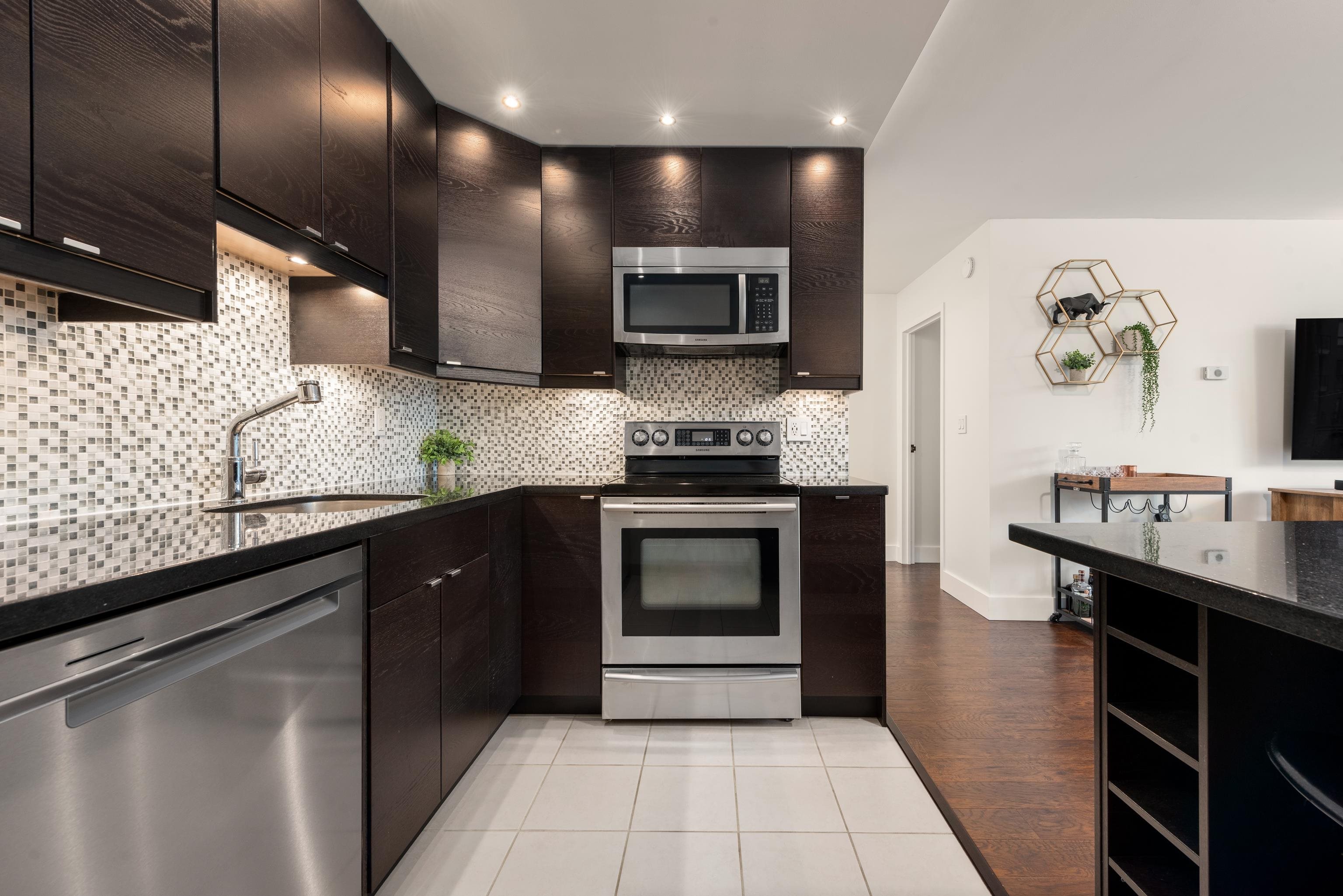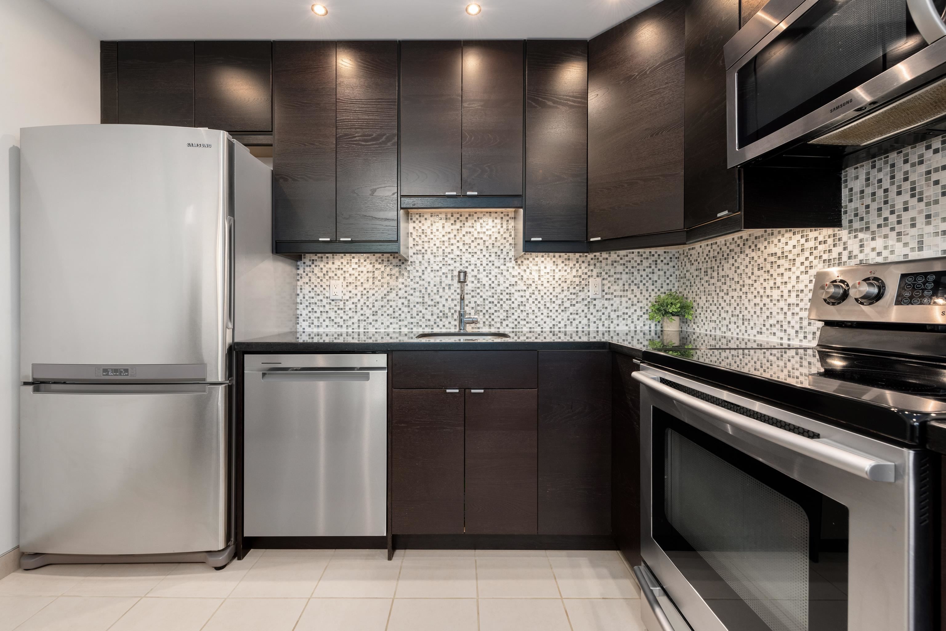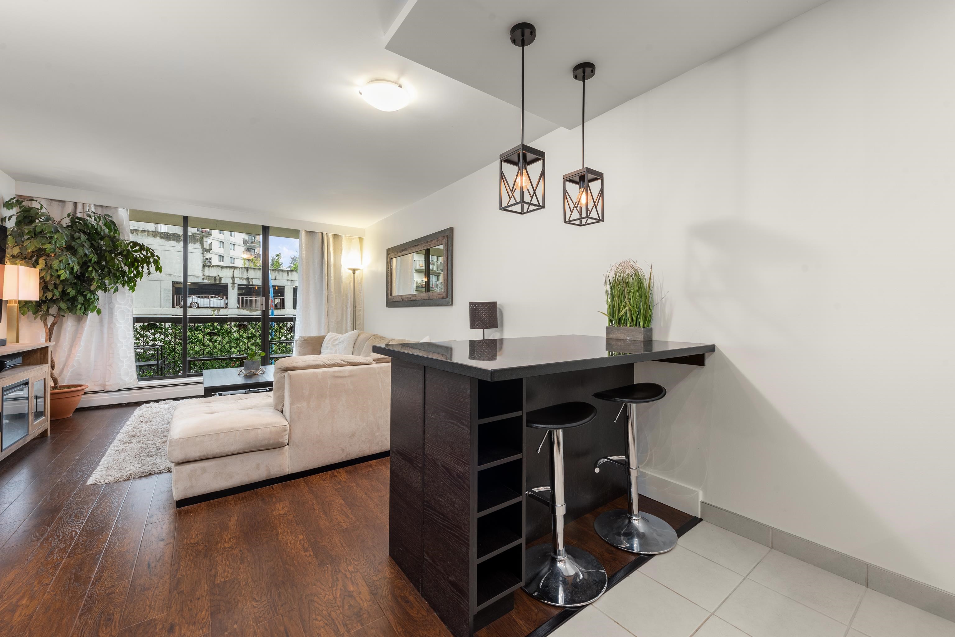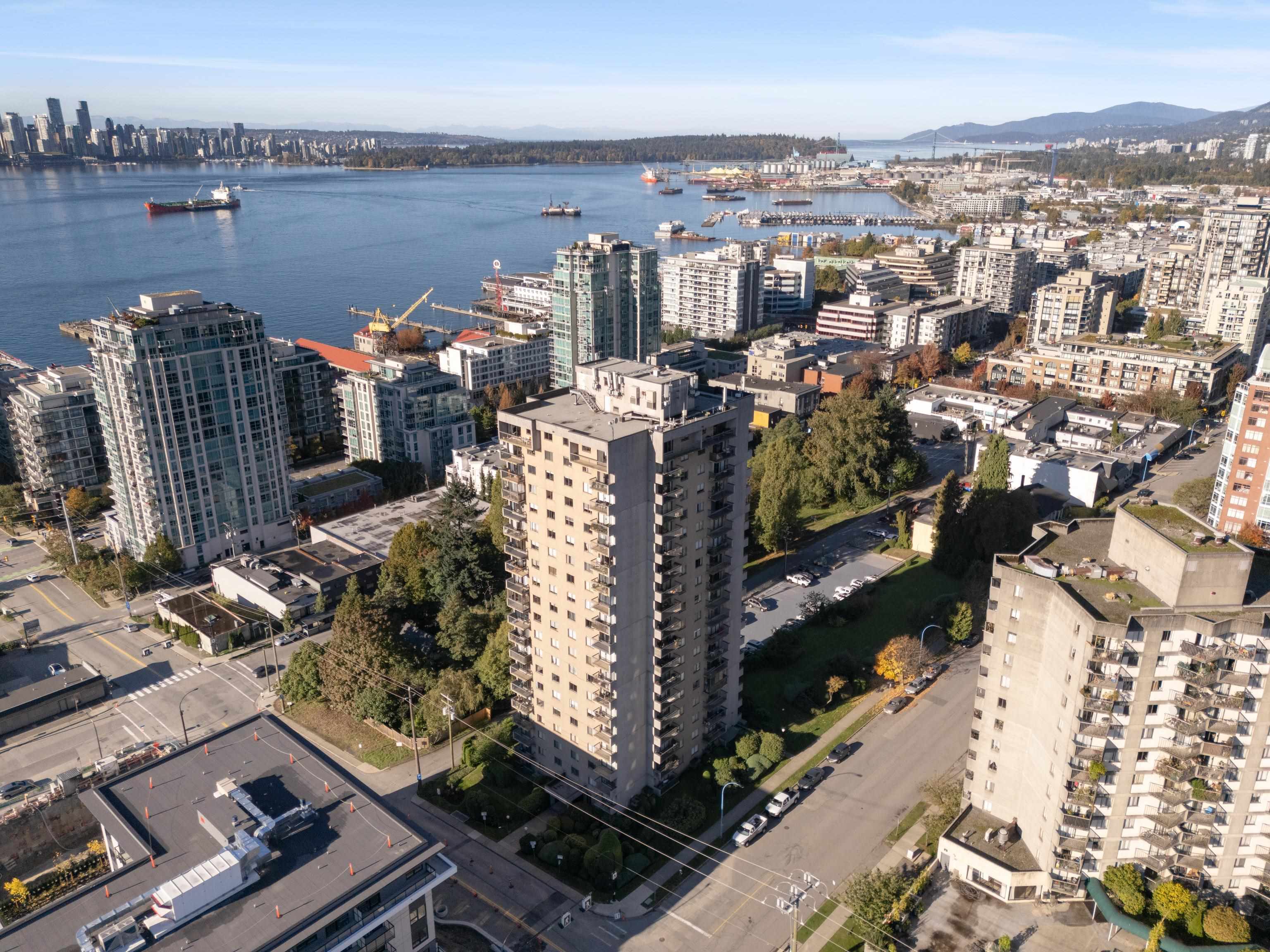 Discover urban living at its finest in Talisman Tower, perfectly positioned in the heart of lively Lower Lonsdale. This beautifully designed 1-bedroom, 1-bathroom residence offers 580 sq. ft. of efficient living within a solid concrete building, featuring a smart layout, modern renovations including custom kitchen island, cabinets, new appliances and upgraded lighting. The bright living area boasts floor-to-ceiling windows and a covered balcony, ideal for morning coffee or evening wind-downs. Includes 1 par...