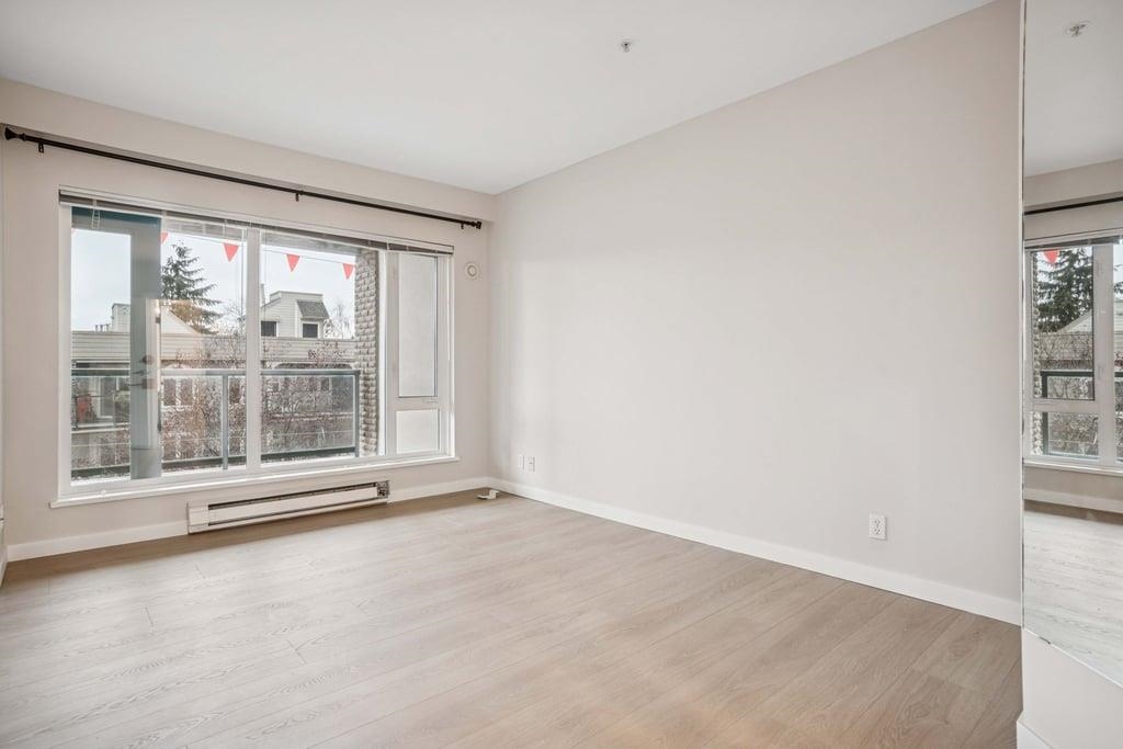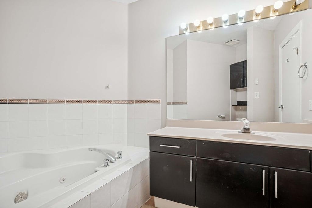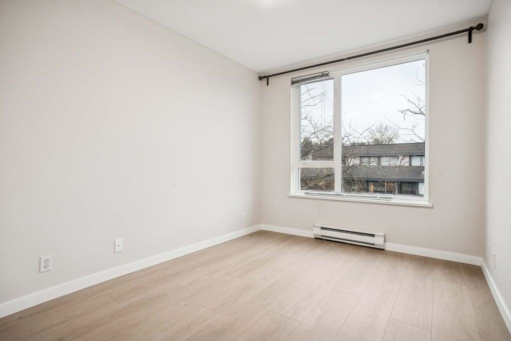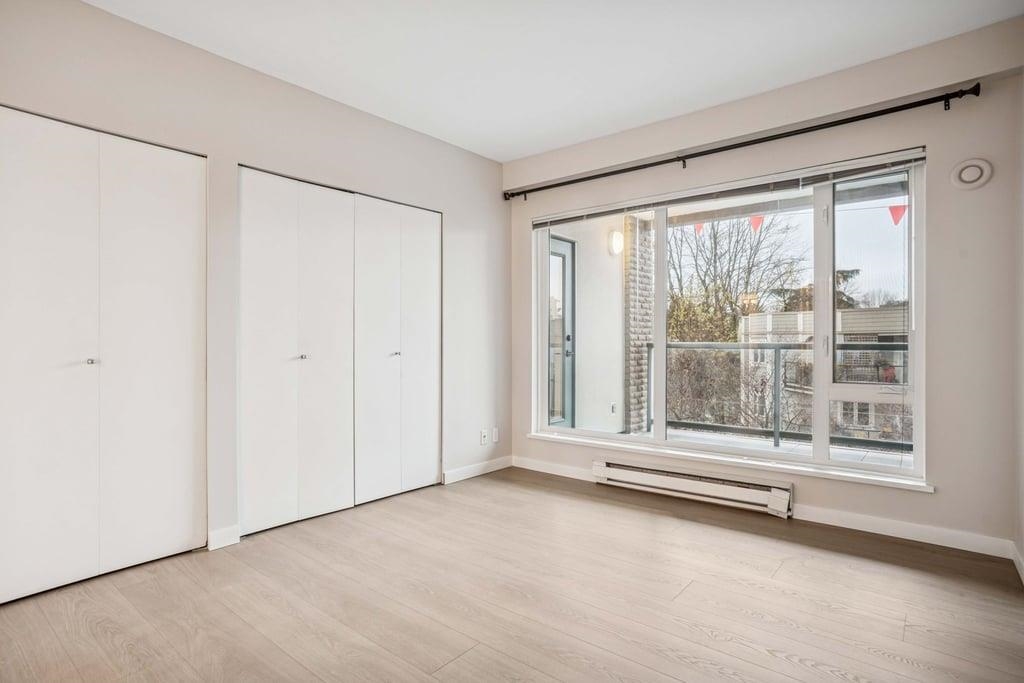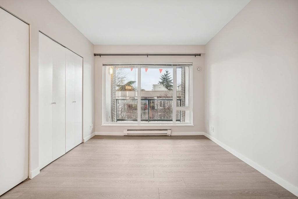 This bright 1,076 sq ft corner unit at Yorkville South features two bedrooms, two bathrooms, and laminate flooring throughout. The foyer offers a large insuite storage room and several closets. The open living room has a circular windowed corner that brings in all-day sunlight, a granite gas fireplace, and access to a large balcony. The dining area connects to a kitchen with a big center island, long breakfast bar, granite counters, maple cabinets, tile floors, and stainless steel appliances. The spacious p...