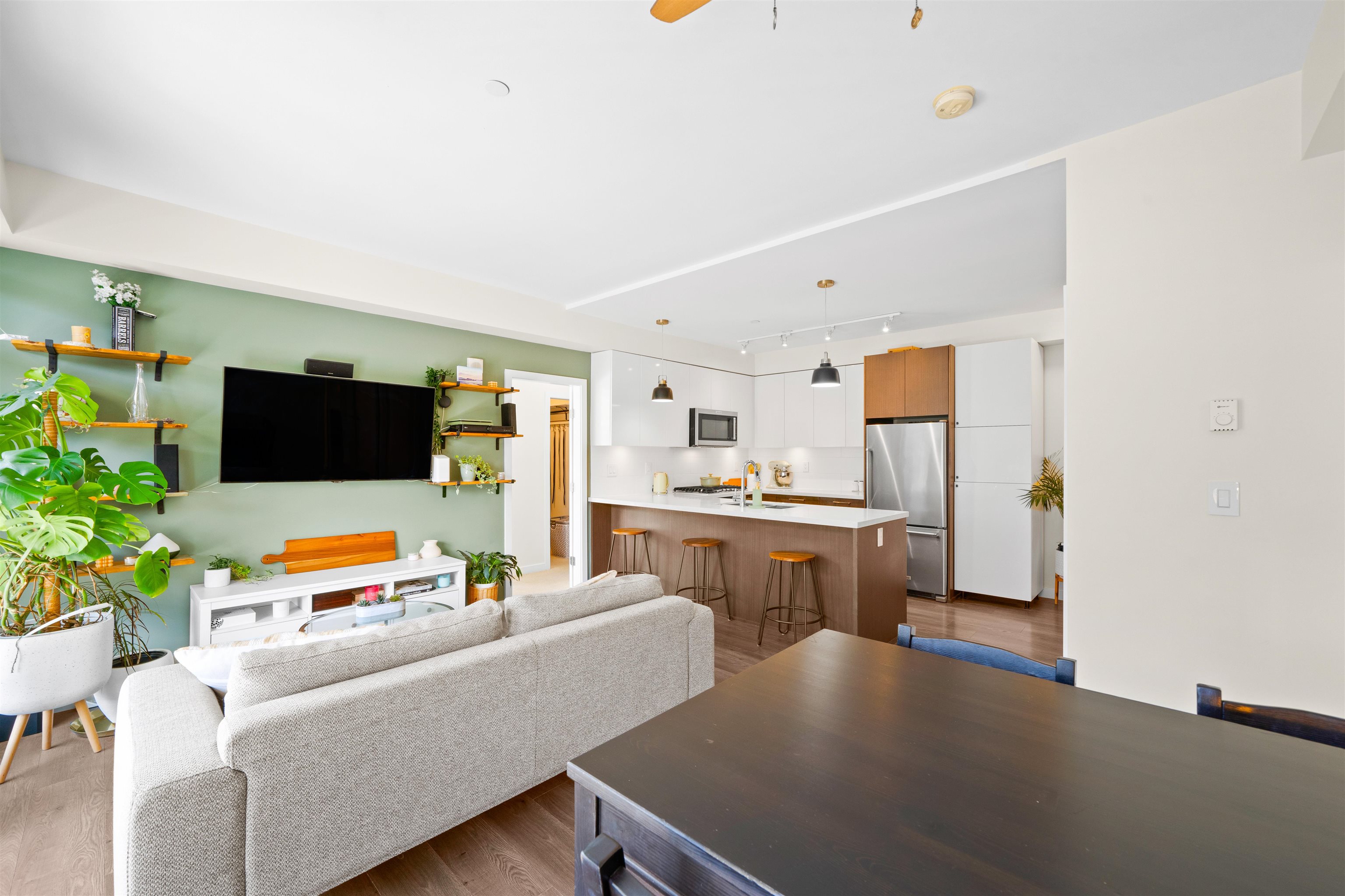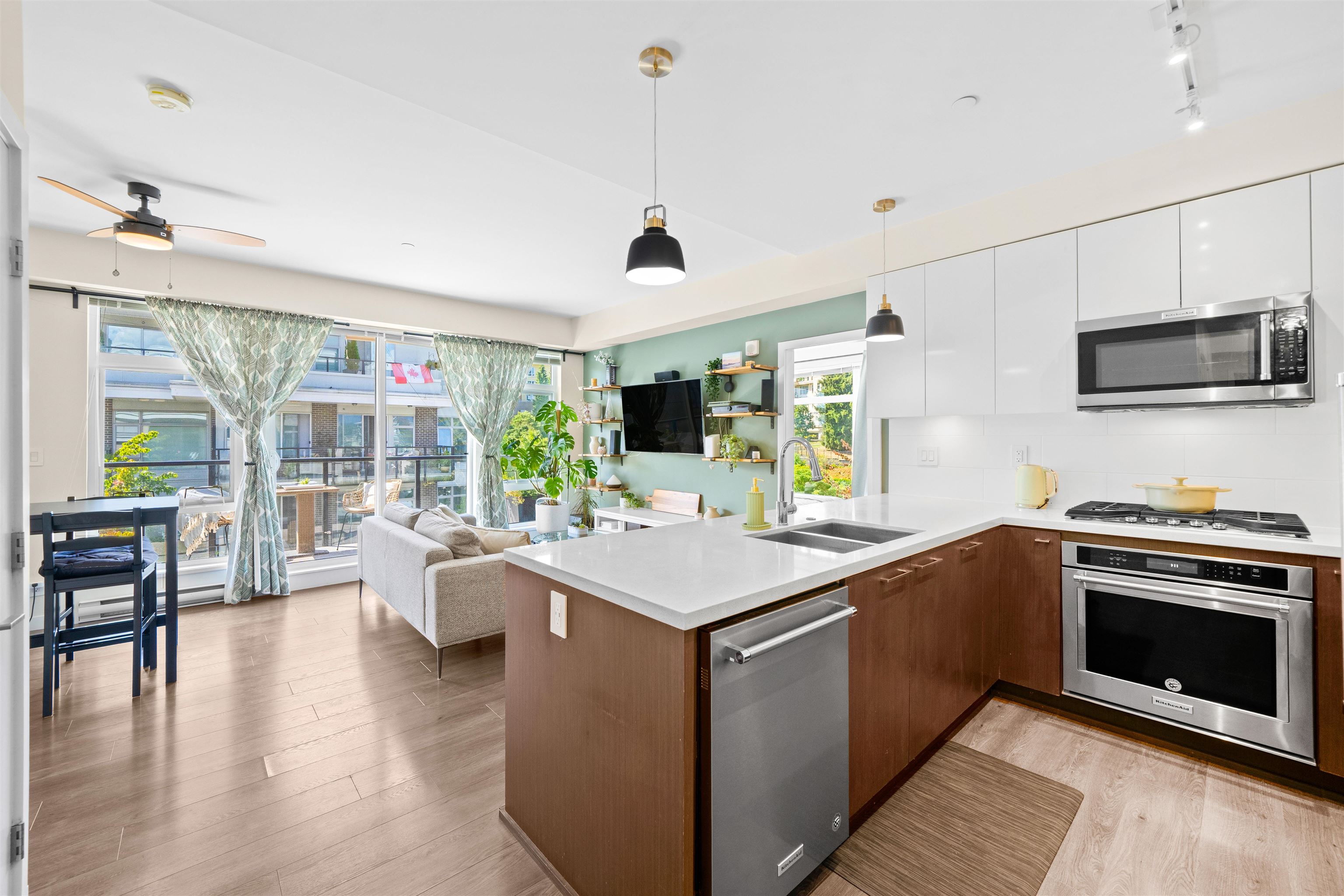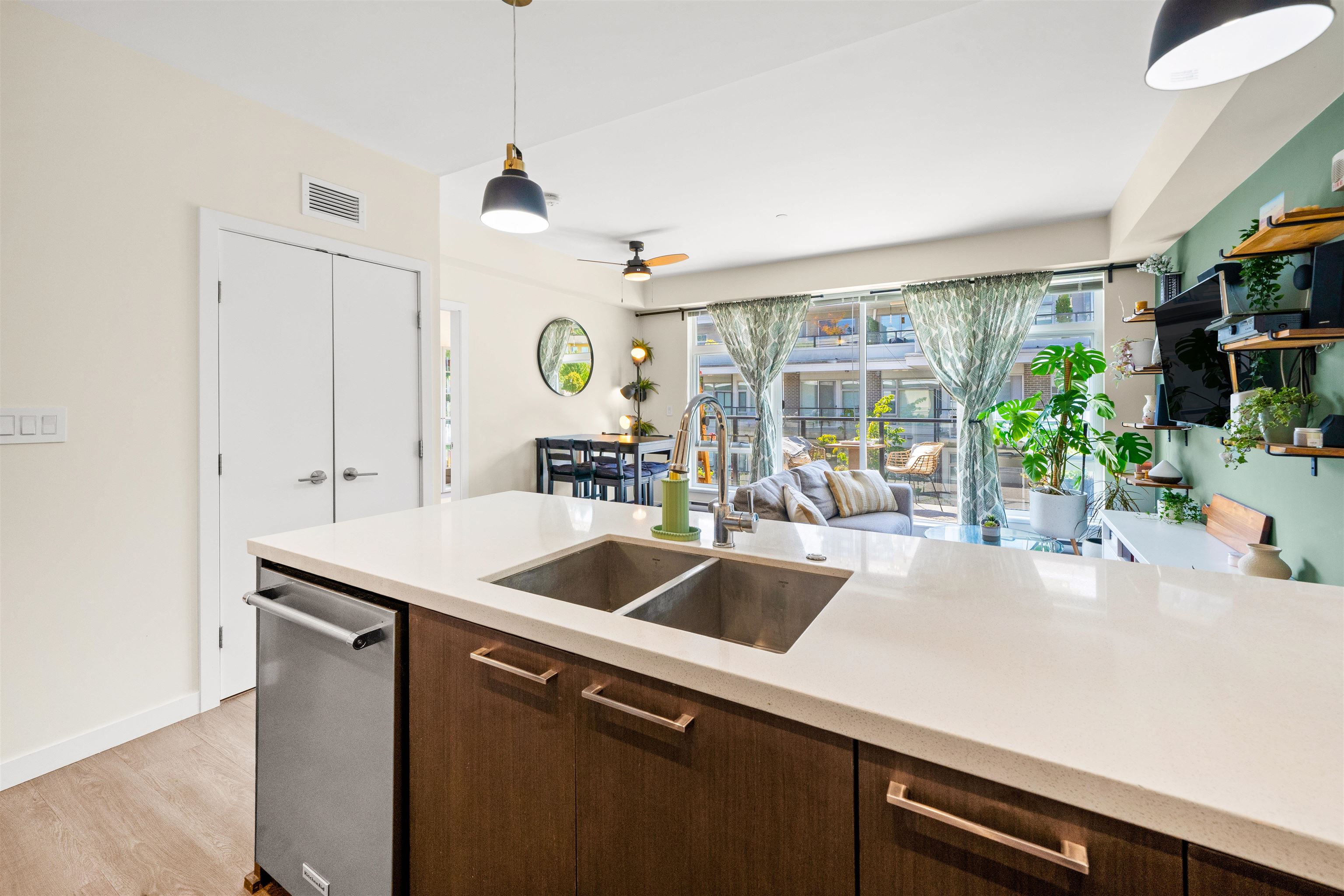 Bright and modern 2 bedroom, 2 bathroom, 855 sf corner home at The Royal in Victoria Hill. This well-designed layout features an open living and dining area with a spacious kitchen offering quartz counters, full-size appliances, gas range, and a large breakfast bar. Bedrooms are separated for added privacy, and the primary includes a walk-in closet and spa-inspired ensuite with dual vanity, glass shower, and heated floors. Enjoy year-round use of the covered balcony with peaceful park and courtyard views. S...
