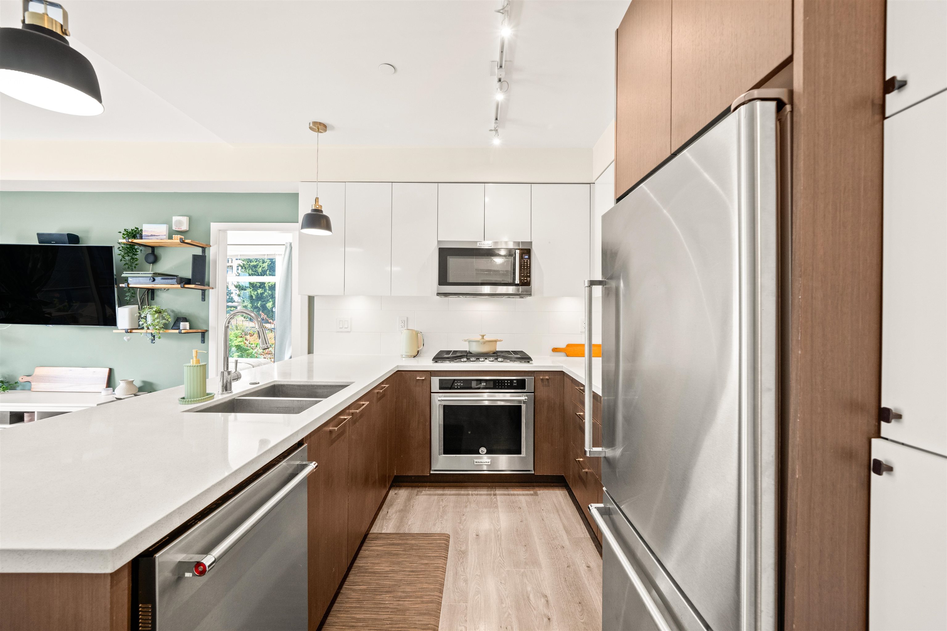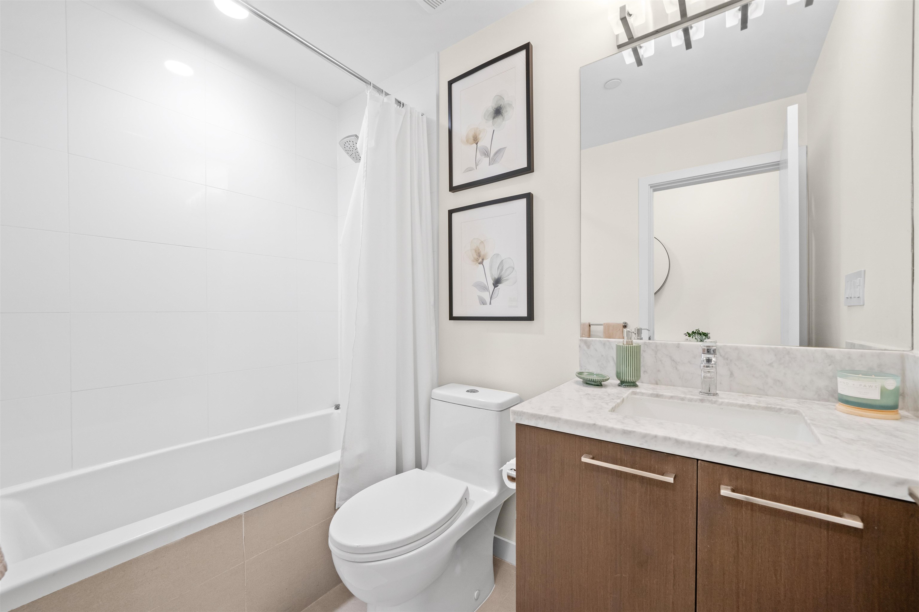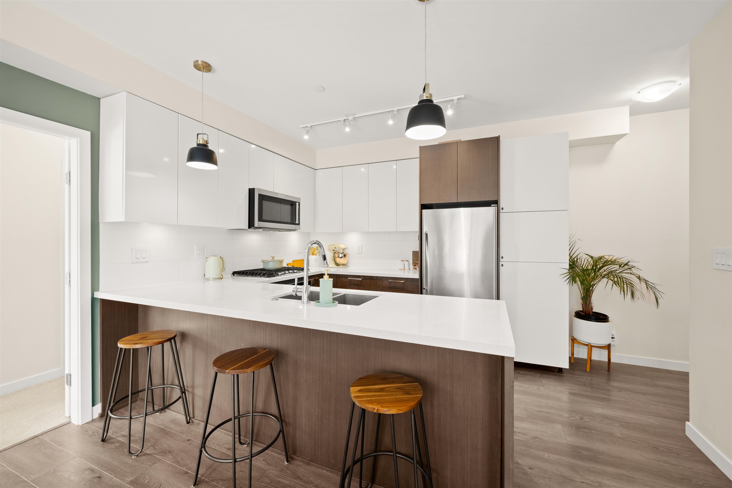 Bright and modern 2 bedroom, 2 bathroom, 855 sf corner home at The Royal in Victoria Hill. This well-designed layout features an open living and dining area with a spacious kitchen offering quartz counters, full-size appliances, gas range, and a large breakfast bar. Bedrooms are separated for added privacy, and the primary includes a walk-in closet and spa-inspired ensuite with dual vanity, glass shower, and heated floors. Enjoy year-round use of the covered balcony with peaceful park and courtyard views. S...