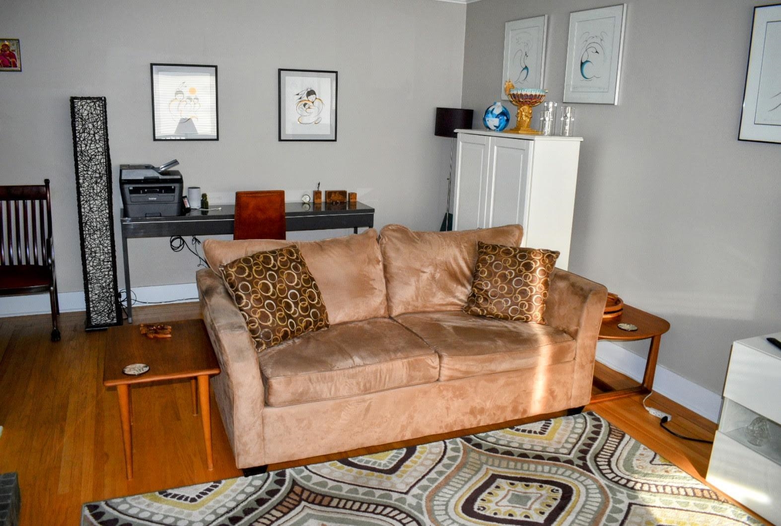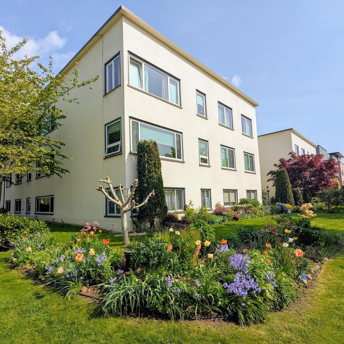 Cambie Village!!Steps to shopping, parks, eateries, a theatre & the King Edward Skytrain (Canada Line - 9 min to DT). This tastefully decorated 1 bedroom, 1 bath character suite has 741 Sq.ft. Beautifully updated in 2024, mahogany inlaid hardwood flooring, a lovely electric FP & large, double paned windows. This spacious, top-floor unit faces a quiet, eastern side of the complex. The oversized bedroom will showcase your furniture. The large living space has numerous custom built-ins & an updated galley kitc...