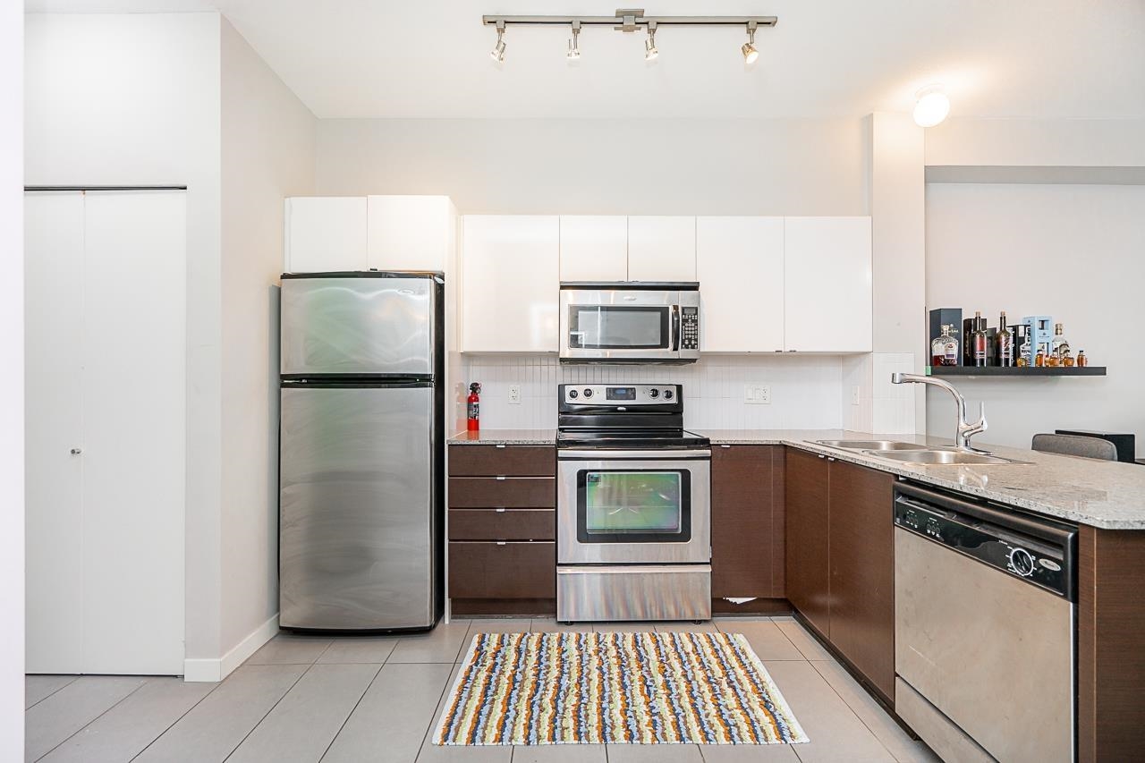 This bright 1 bedroom unit features functional living space, granite kitchen counters and stainless steel appliances. Also included is a secured parking spot and 1 storage locker. Just minutes away from the campus of SFU as well as Central City Mall where you will find local amenities such as groceries, banks, restaurant and services. Parks, schools, and North Surrey Recreation Center are also within steps from this Quattro condo. Plus, the Skytrain station is only a short walk away!