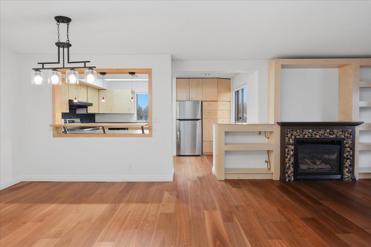 Ideal for investors, first-time buyers, downsizers, or young families, this bright corner 2-bedroom end unit offers generous space and functional living. Features include a cozy gas fireplace, covered deck, and modern flooring throughout. The primary bedroom boasts a walk-in closet and private ensuite. Ample in-suite storage with built-ins plus a separate locker. The well-maintained building has key upgrades, including a new roof and updated plumbing. Includes two parking stalls. Conveniently located just 2...