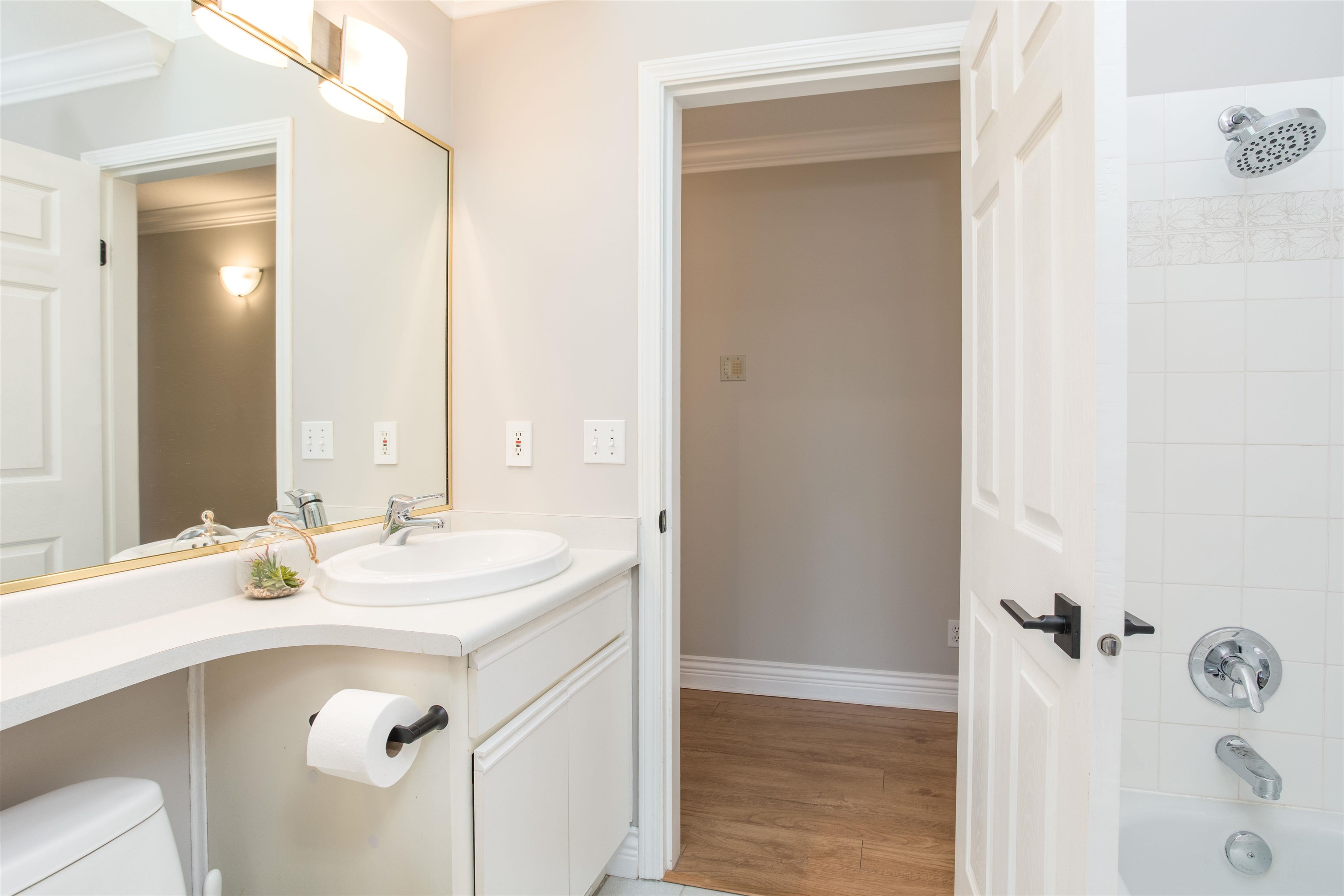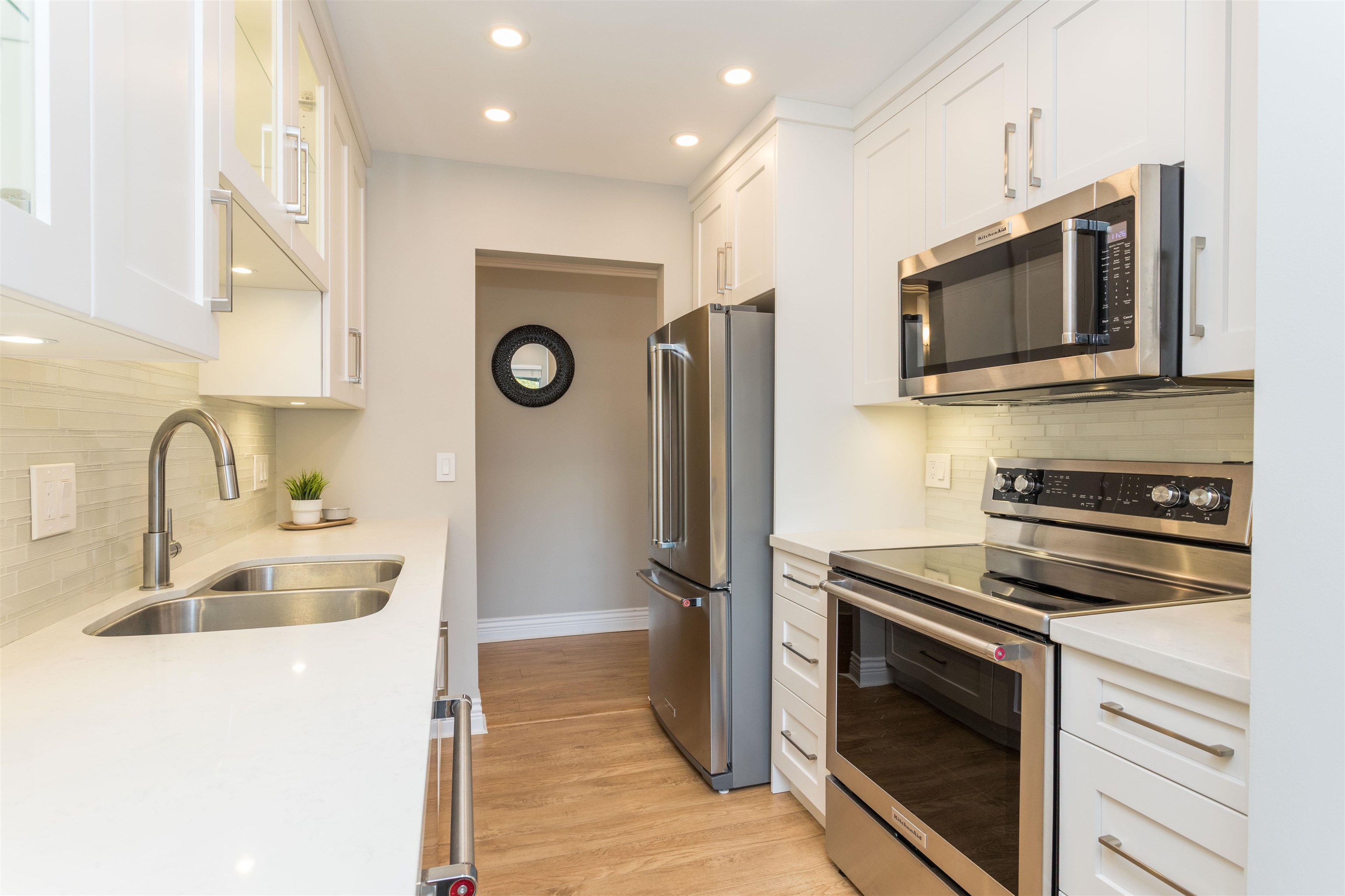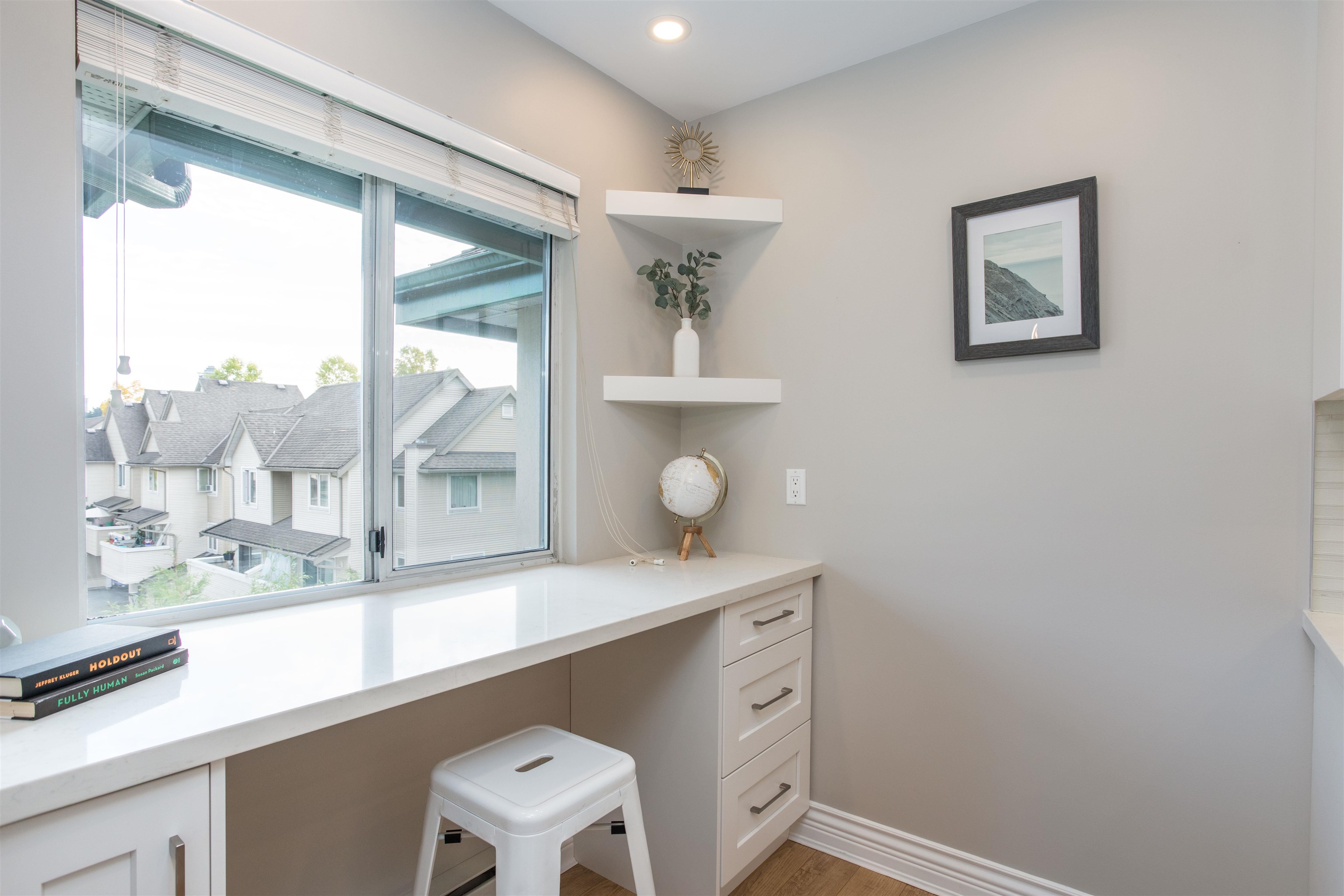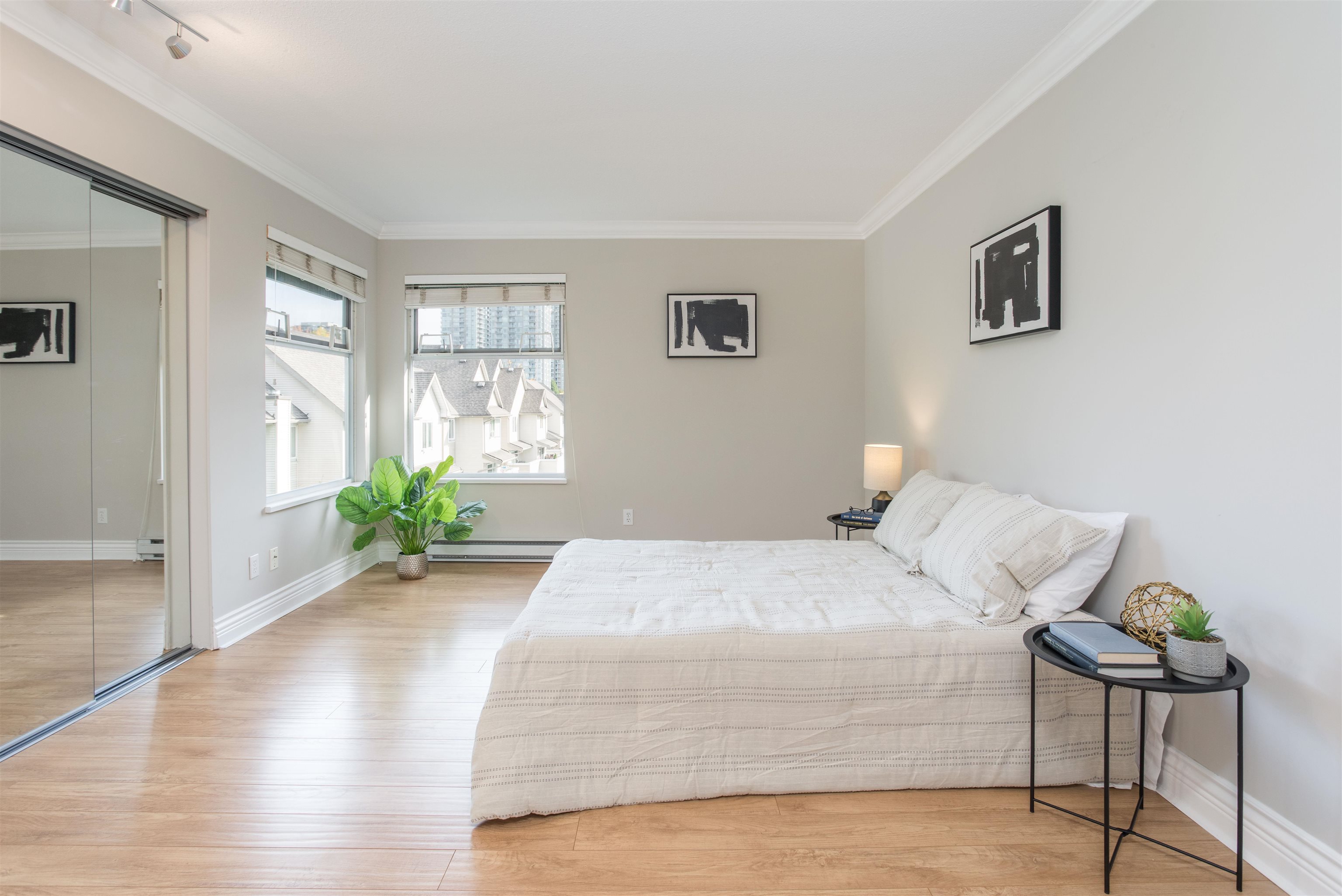 TOP FLOOR CORNER UNIT! Lots of natural daylight! Stunning 1 bed & 1 bath is perfectly situated in the heart of Coquitlam on a quiet cul-de-sac, just steps from Coquitlam Centre, Lafarge Lake & the Aquatic Centre. Recently updated! Kitchen w/ white shaker cabinets & built in lighting, quartz counters, stainless-steel appliances, glass tile backsplash, pot lights, new fixtures w/ a built-in desk-ideal for working from home. The unit boasts laminate floors, crown mouldings, thick baseboards & a spacious patio ...