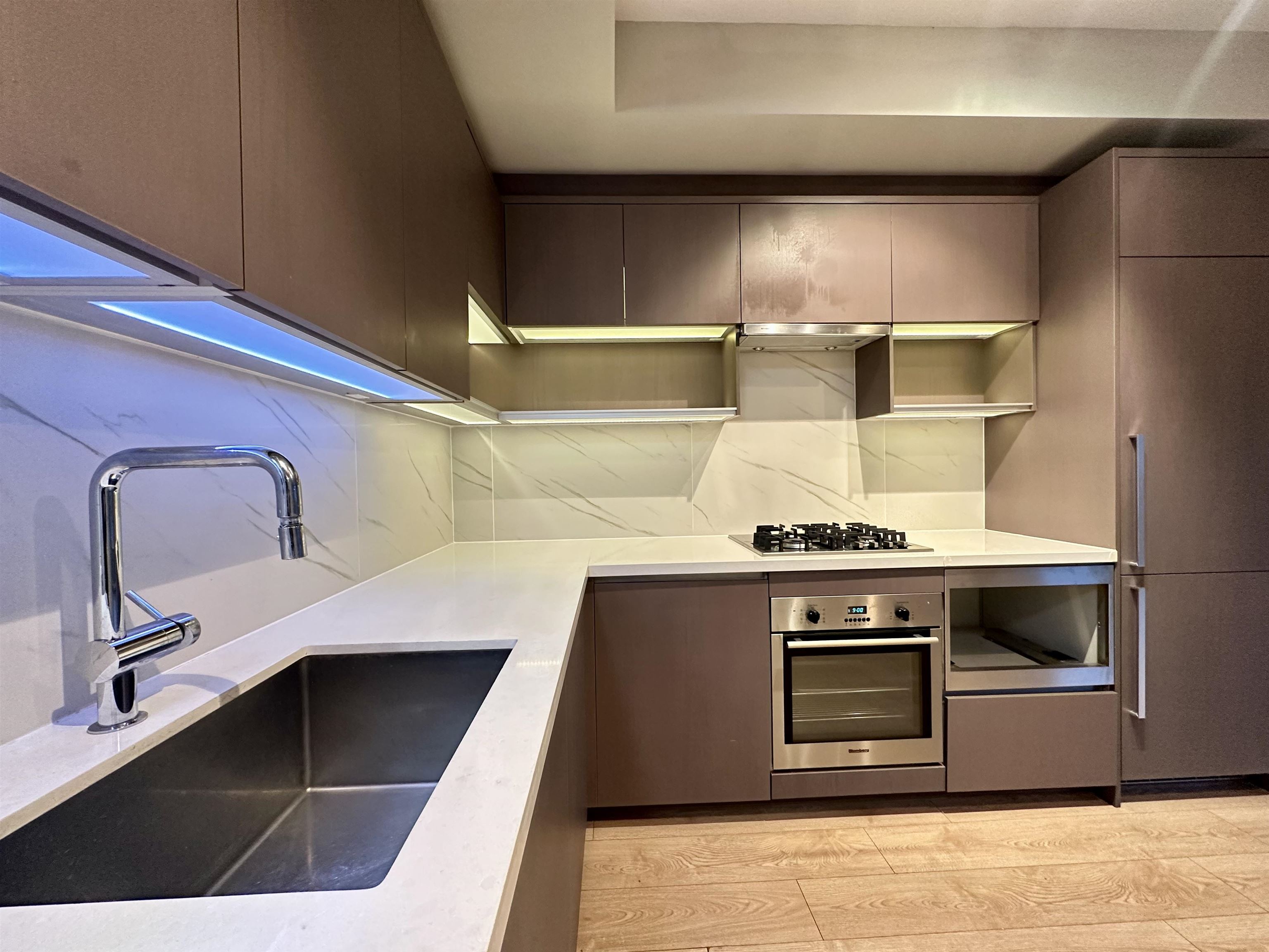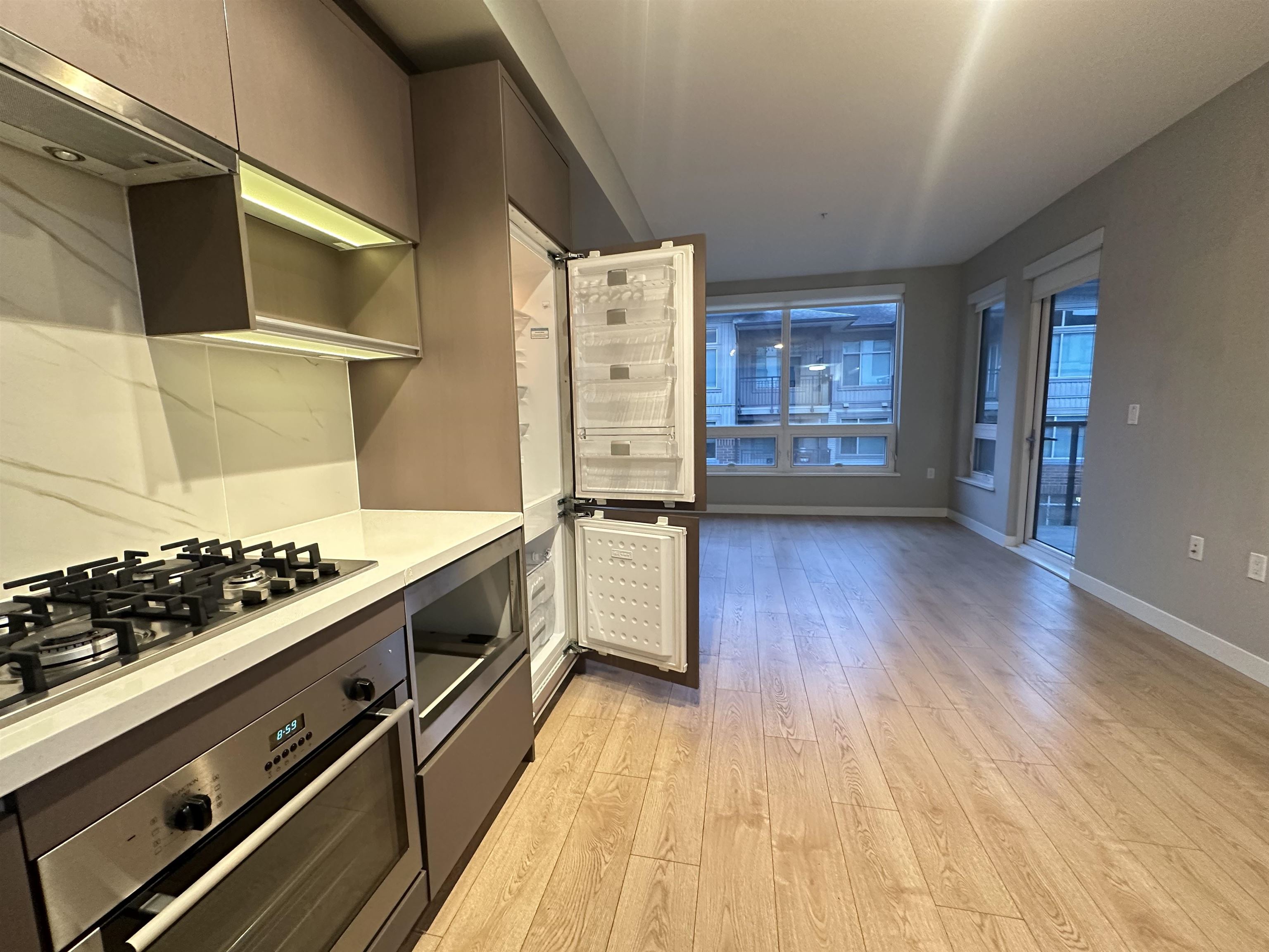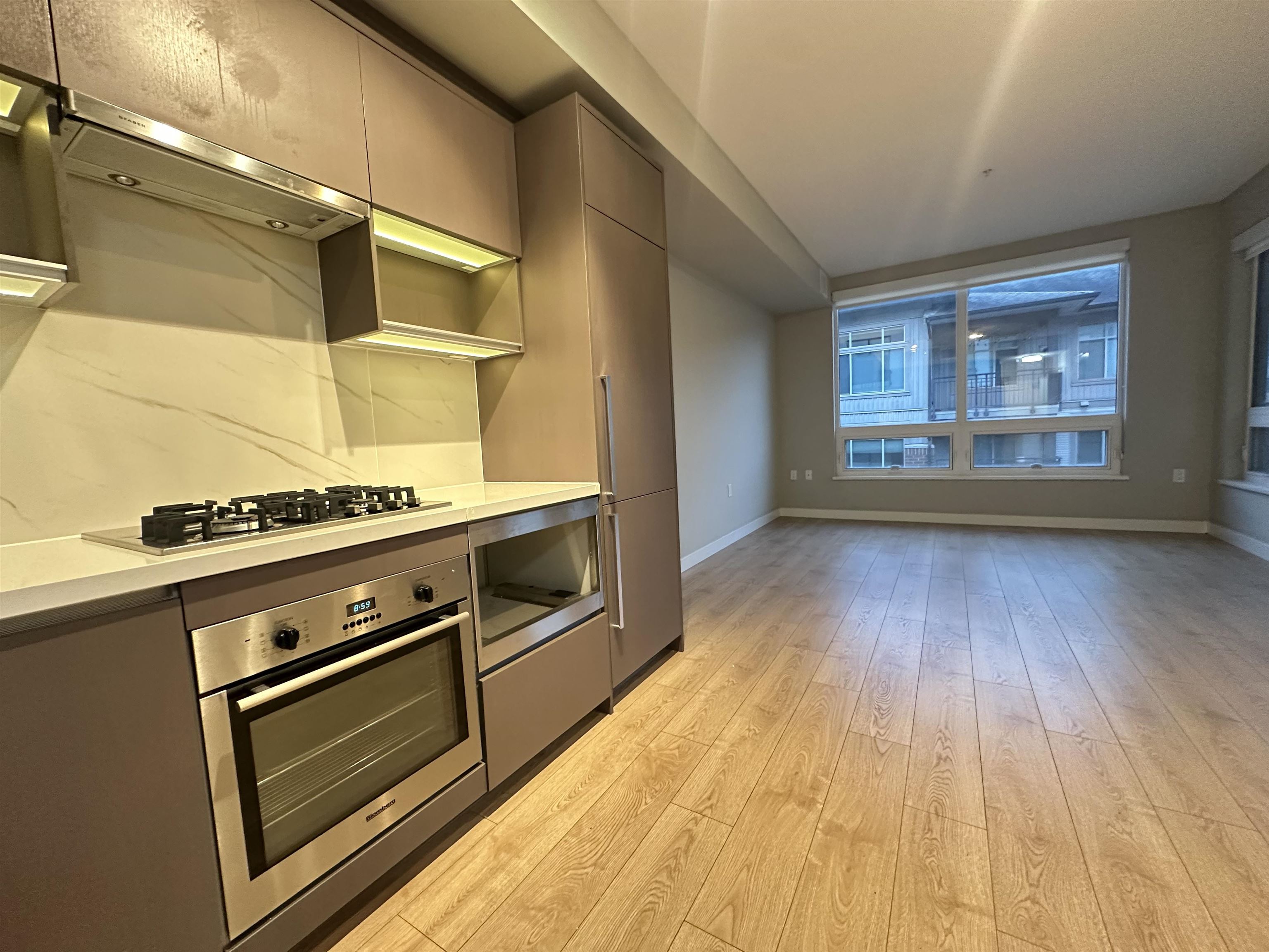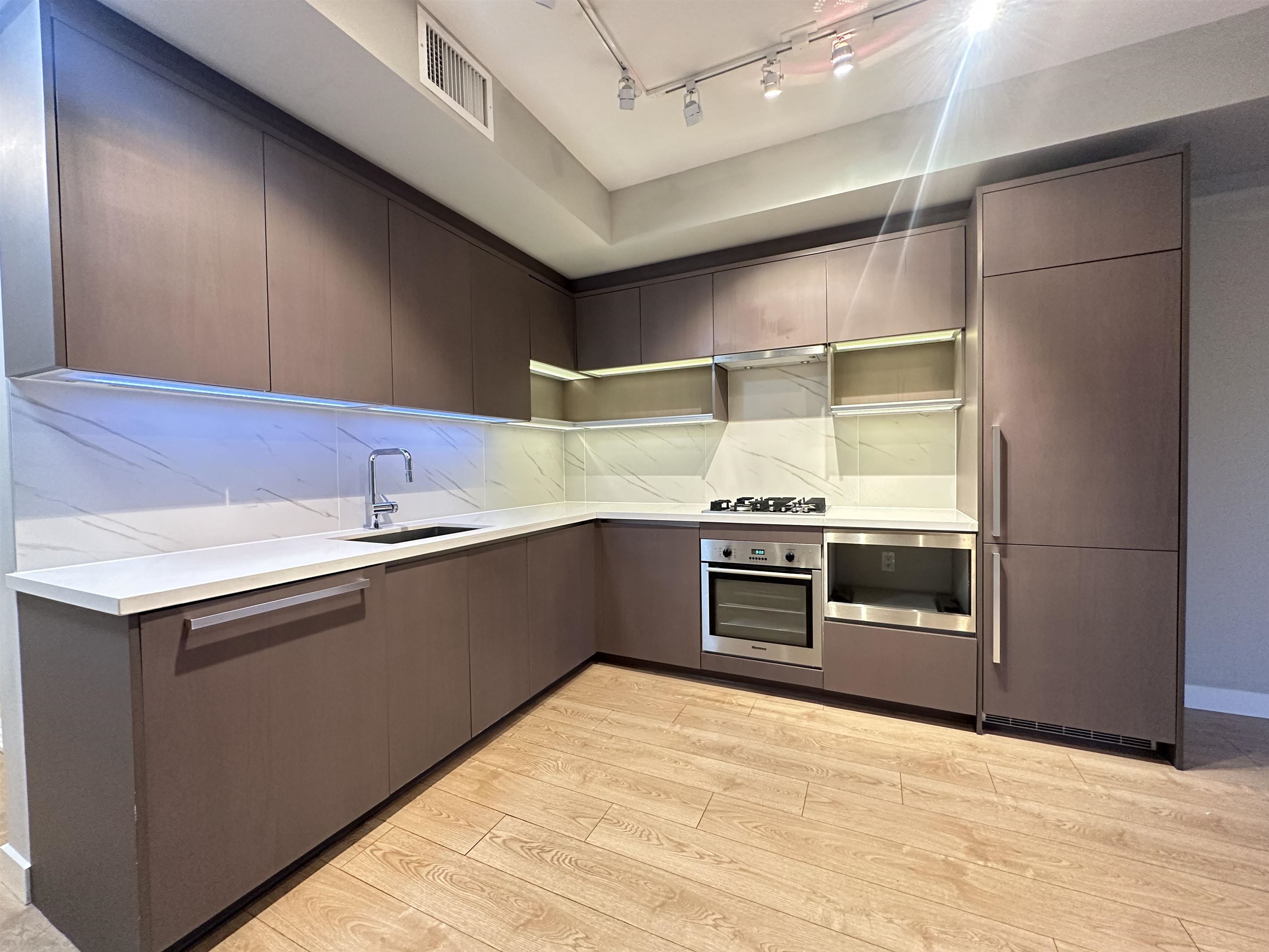 Omega by Concord Pacific. Bright and spacious 1 bed and a good size den ( shows 2 bedrooms in BC assessment) , 9' ceiling with functional floor plan, contemporary kitchen with integrated appliances, engineered quartz stone counter top and under cabinet lighting, wide plank laminated flooring throughout main living area. Geothermal heating and air cooling A/C. First class amenities including a clubhouse, gym. 1 parking and visitor parking. Close to public transit, and Walmart, shopping ( Garden City Mall, La...