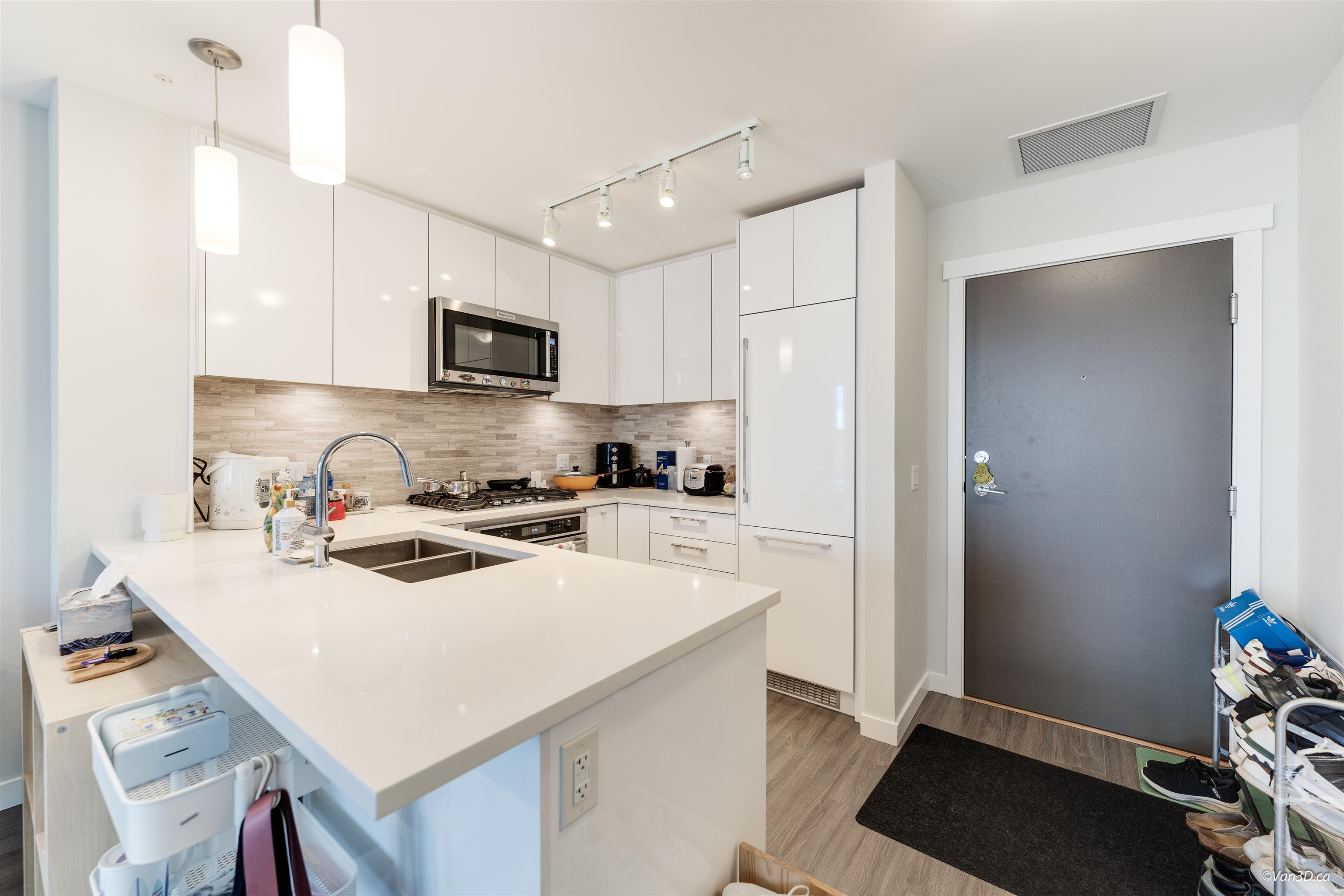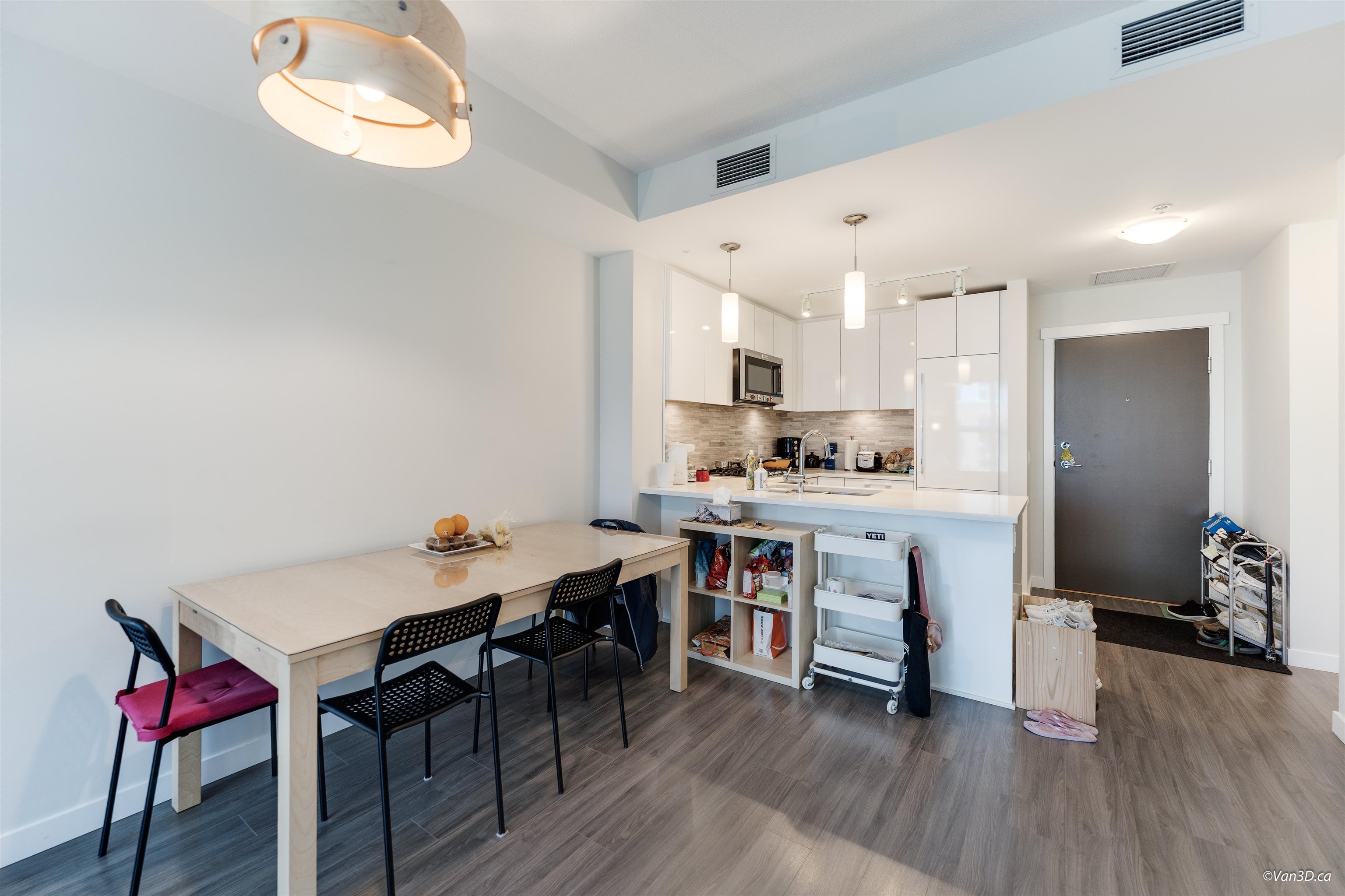 Trafalgar Square II by Polygon. Bright and spacious floor plan with 9' ceiling. 2 cross hall bedrooms and 1 shared ensuite bathroom. Equipped with high end appliances including a full size 5 burner gas cooktop and oven. Master bedroom has walk-in closet. Maintenance fee includes A/C, heat, gas and excellent amenities including gym, music room, yoga room and party room. Pictures taken when it was tenant occupied. Walking distance to Walmart, T&T, Lansdowne Mall & transportation. Call for your appt. today!