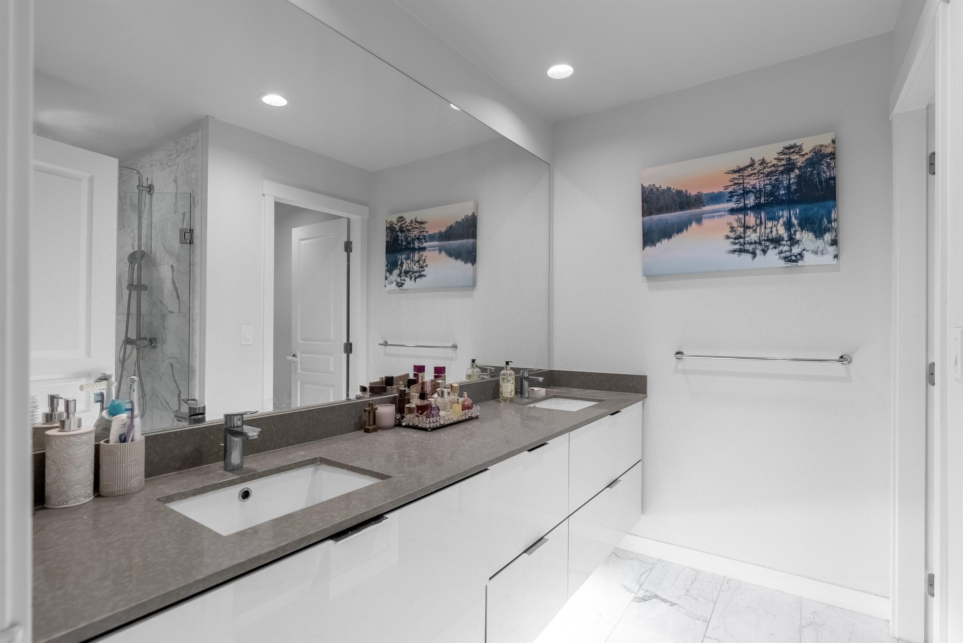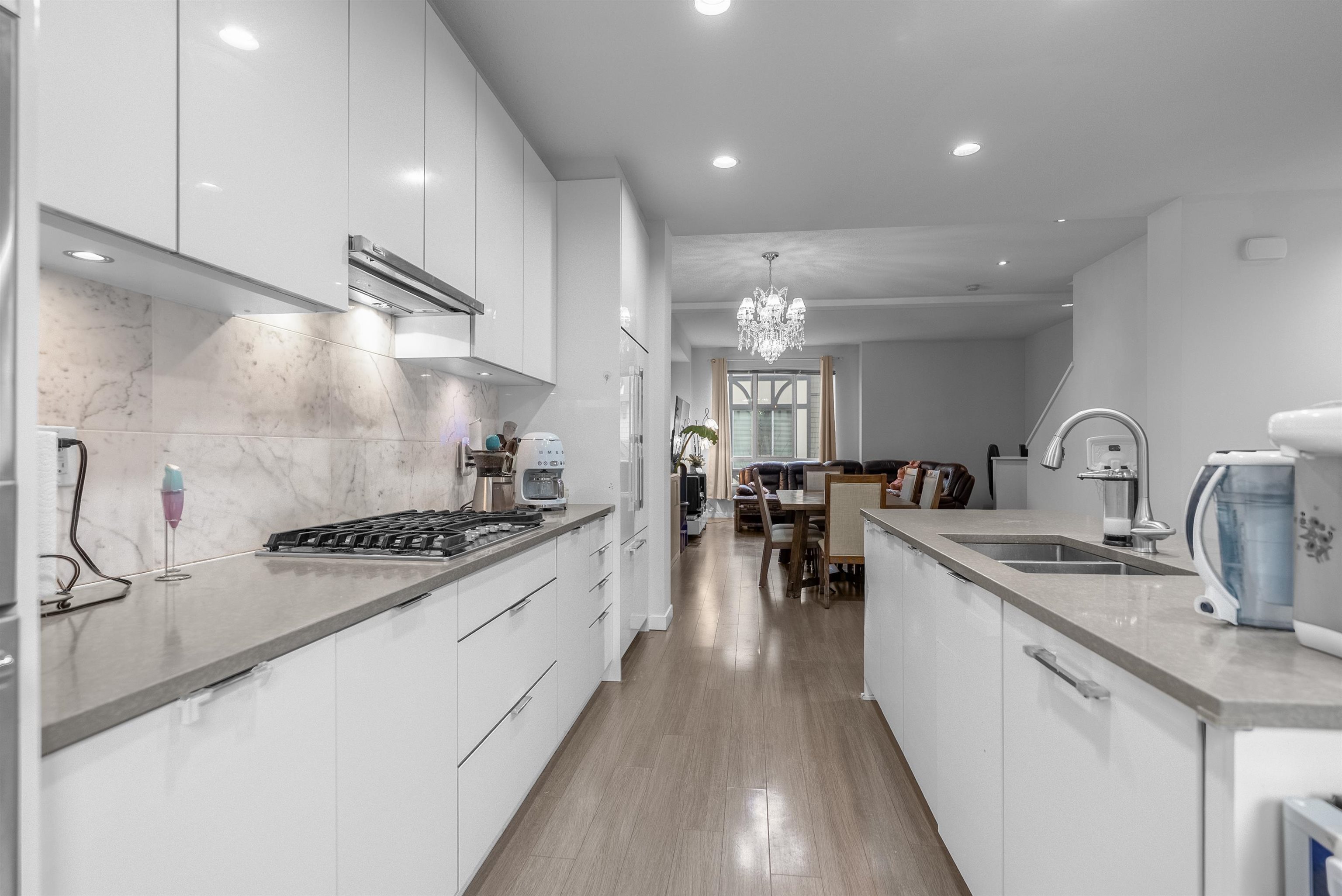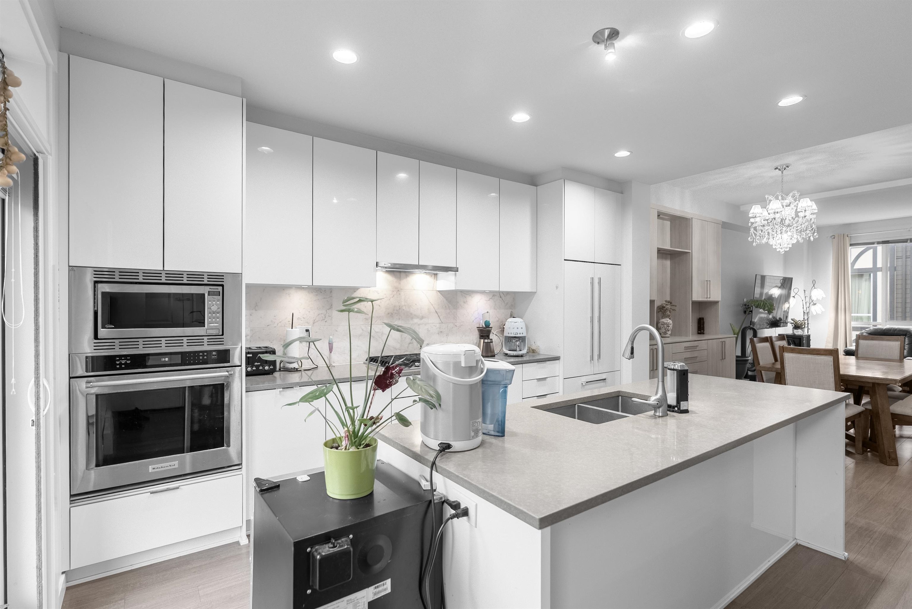 Popular Kingsley Estates by Polygon offers 4 bedrooms, 4.5 bathrooms, double SxS garage and an extra-long driveway for 2 additional cars! Features almost 2000 SF of spacious living, an amazing dream kitchen, huge island, dramatic 10’ ceilings on the main, SS appliances, quartz countertops, laminate floors, smart doorbell, built in cabinets in dining room, large balcony & luxurious master ensuite w/ heated floors. Downstairs 4th bedroom has it's own full bathroom. Great well-run complex with clubhouse, gy...