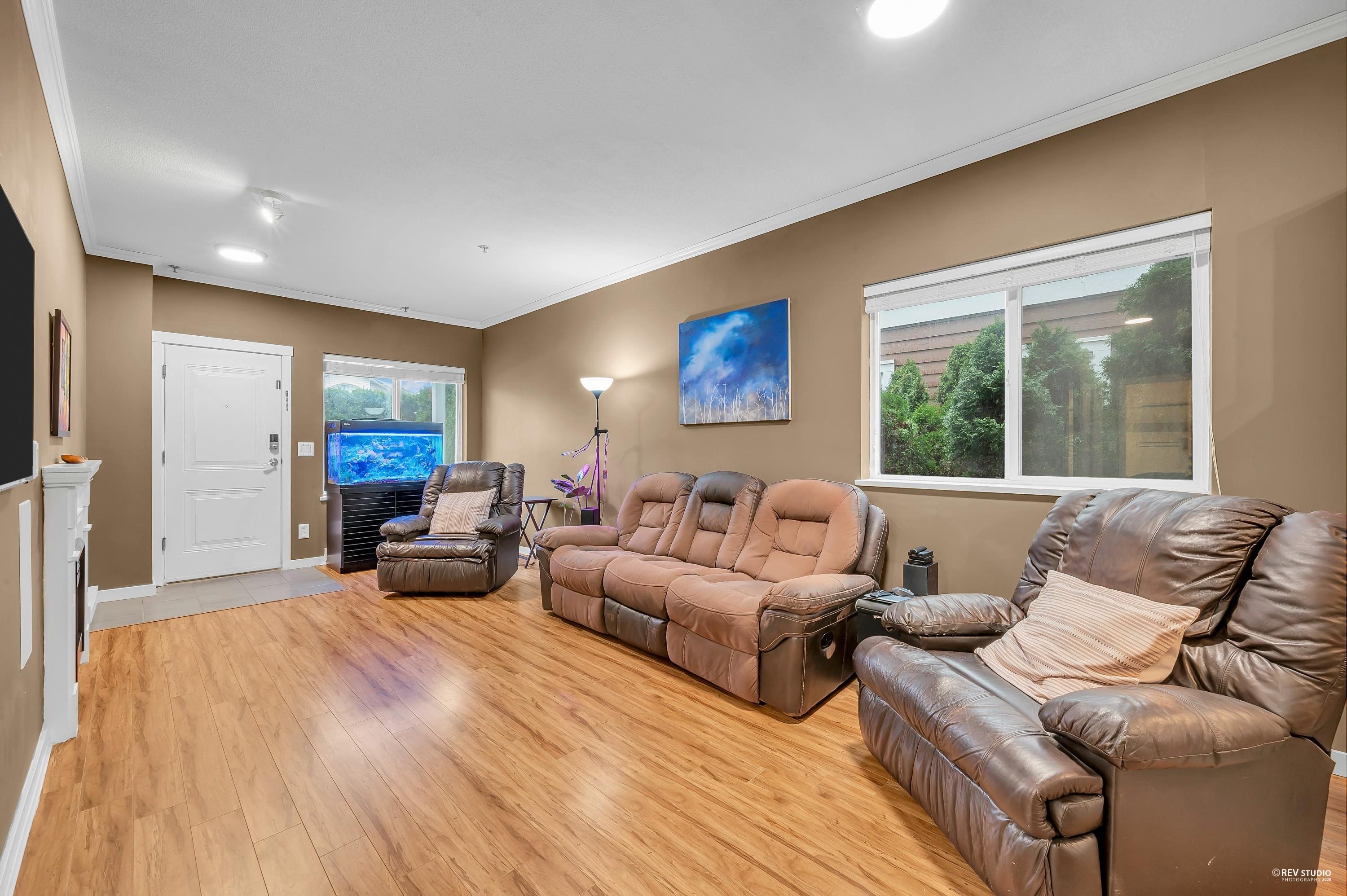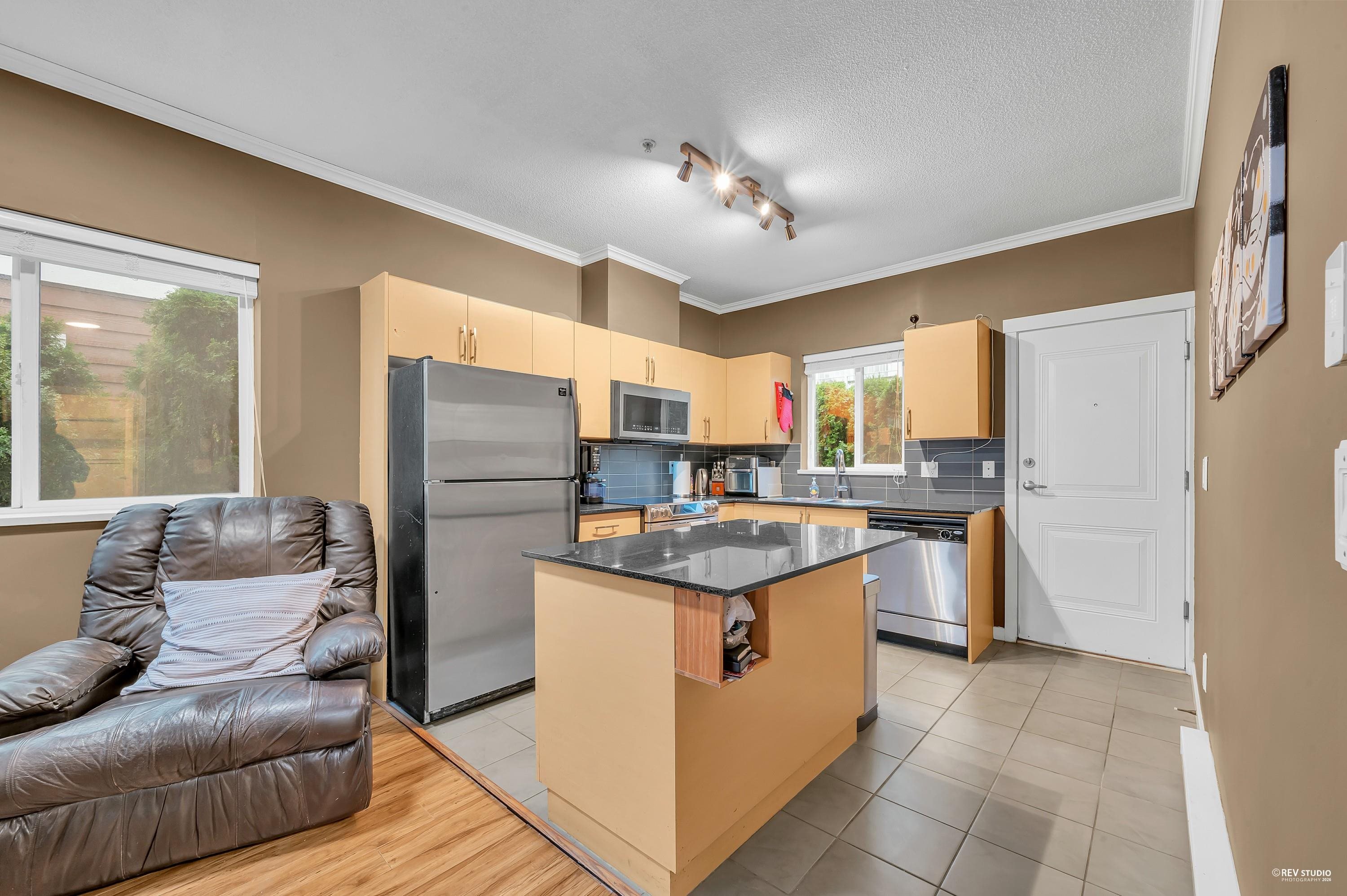 Welcome to Brimley Mews by Amacon. This well-maintained stacked townhome offers 3 bedrooms and 2 full bathrooms, all on one level, along with one underground parking stall and a storage locker. Located in Port Coquitlam’s desirable Glenwood neighbourhood, the home features a bright open-concept layout with 9-foot ceilings, a spacious living and dining area, and a modern kitchen with an island, granite countertops, and upgraded stainless steel appliances. Additional highlights include a built-in sound system...