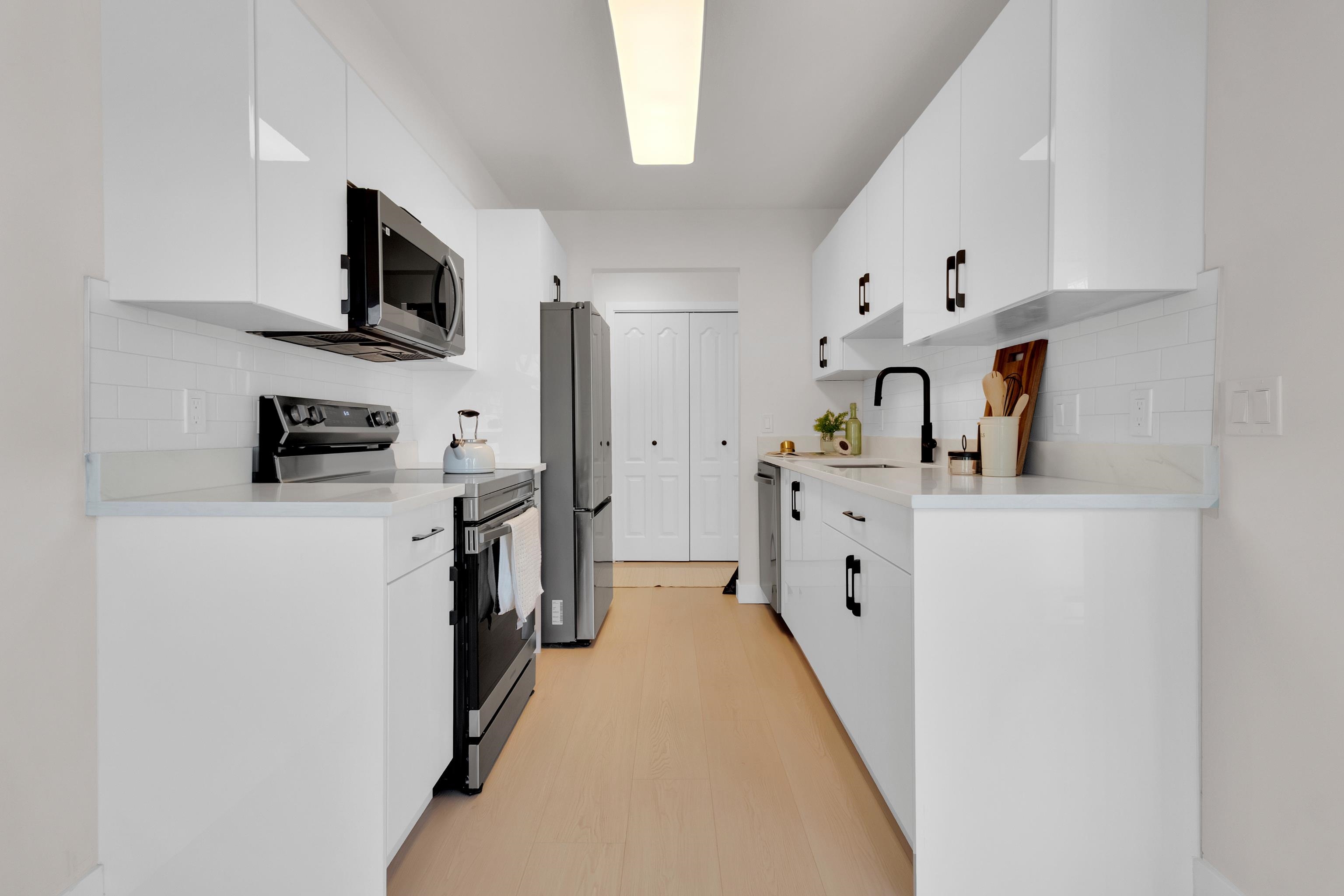 Fully renovated and bright, this corner 2 bed, 2 bath condo feels spacious the moment you walk in. Natural light fills the open living and dining areas, giving you room to host or unwind. Step out to one of two balconies, including an impressive 19 ft wide outdoor space with plenty of room for seating and summer evenings. The primary bedroom offers two closets and great space, while the second bedroom sits on the opposite side for added privacy. All kitchen and laundry appliances are brand new, and two park...