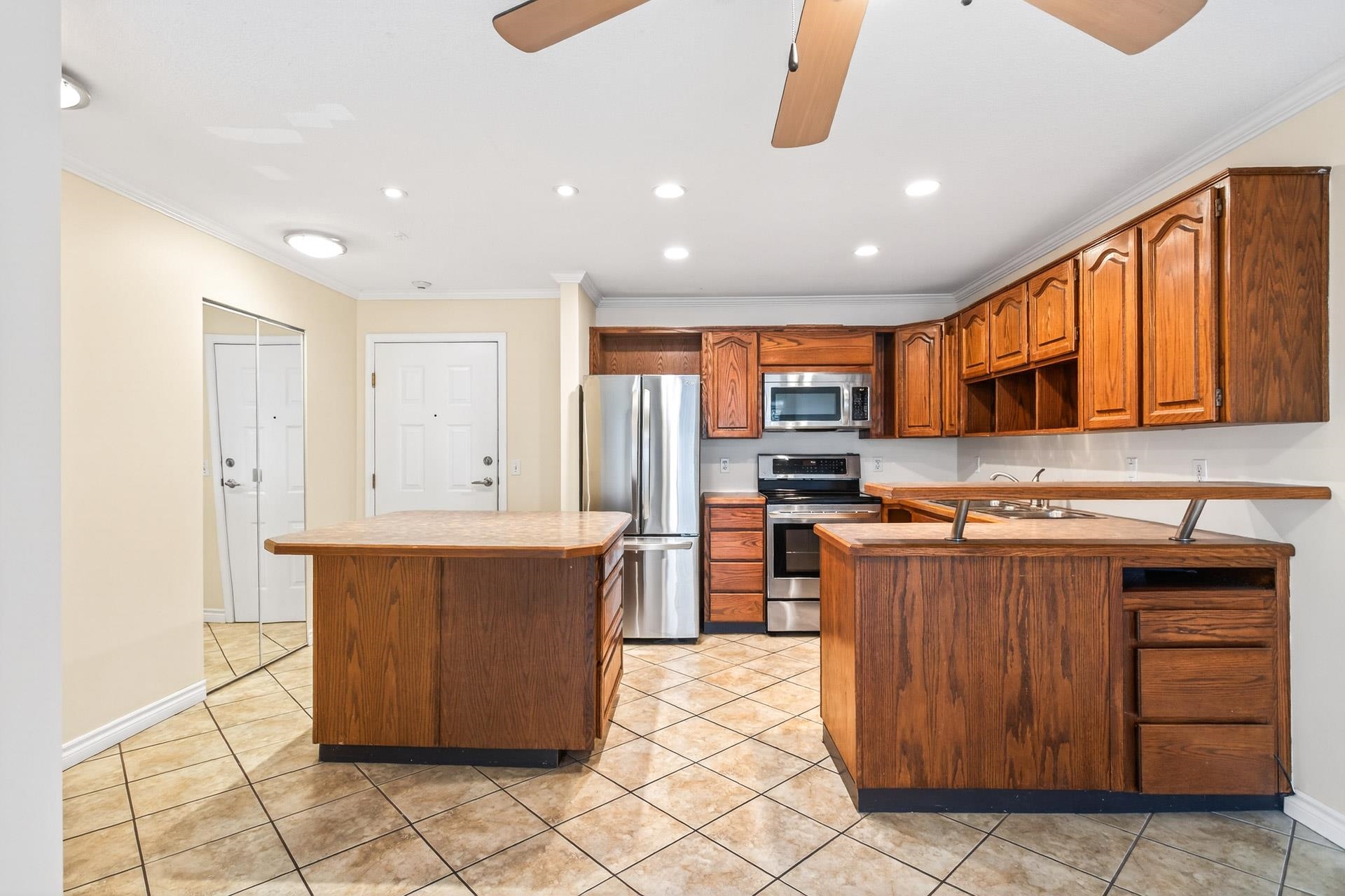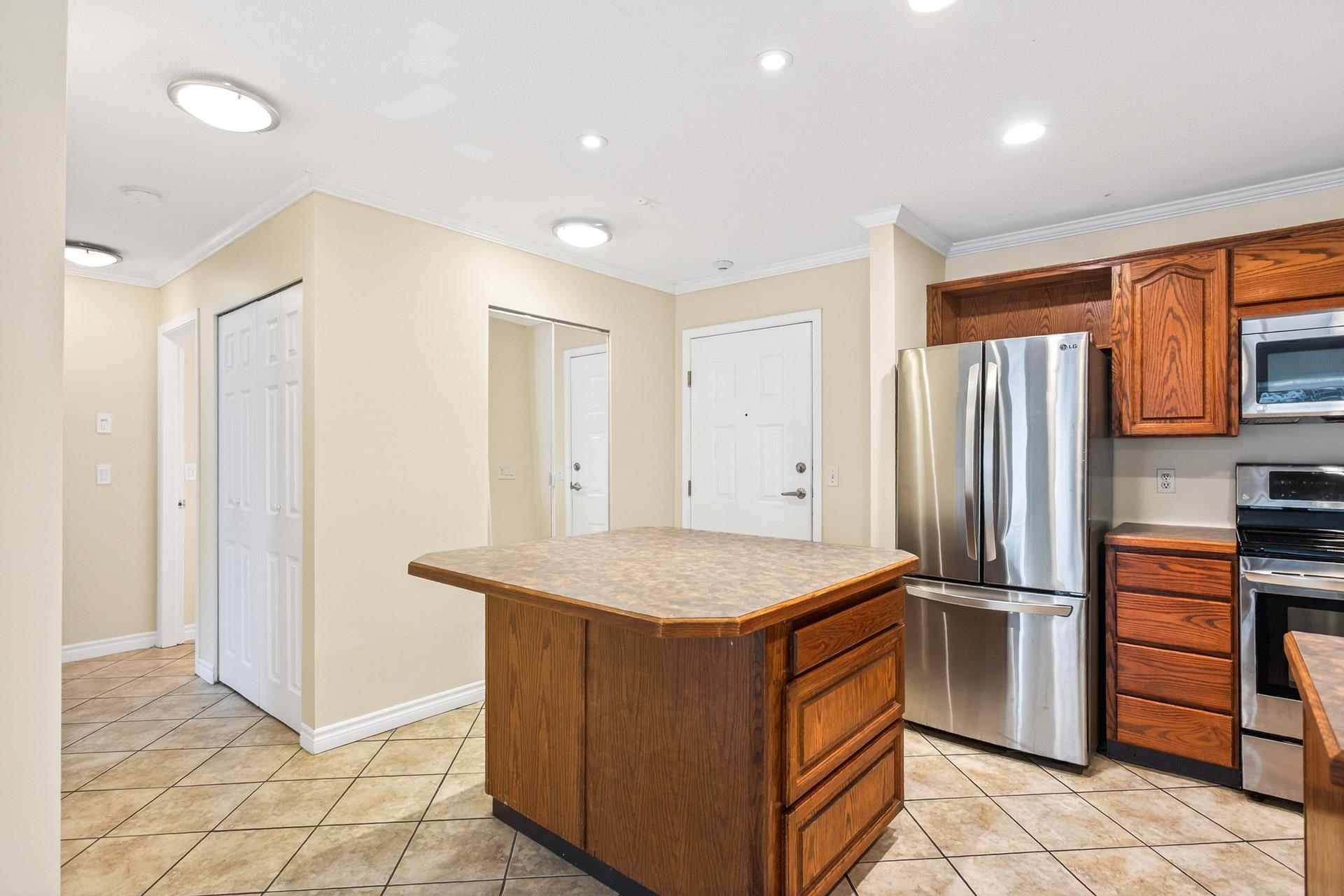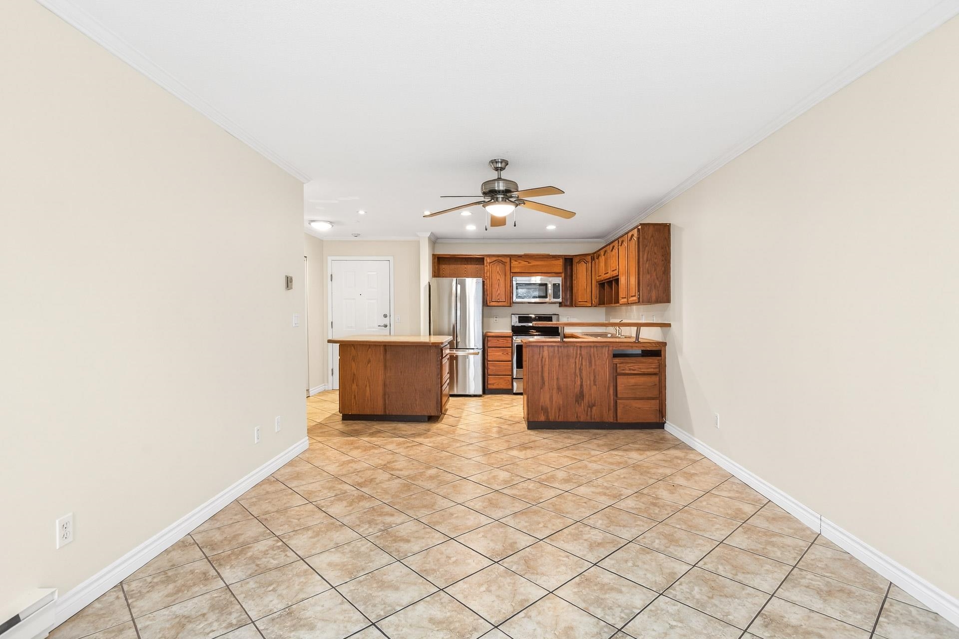 Welcome to this bright, South East facing 2-bedroom, 2-bathroom Condo located in the desirable Coquitlam East area. This home is located in a well-maintained building, featuring a large kitchen with oak cabinets, an island, tile flooring, and crown molding. The home is recently painted available immediately. The location is brilliant, walking distance to shopping, schools, transit, and Mundy Park Trails. Convenient and easy access to highway 1, and highway 7. Book your private showing today.