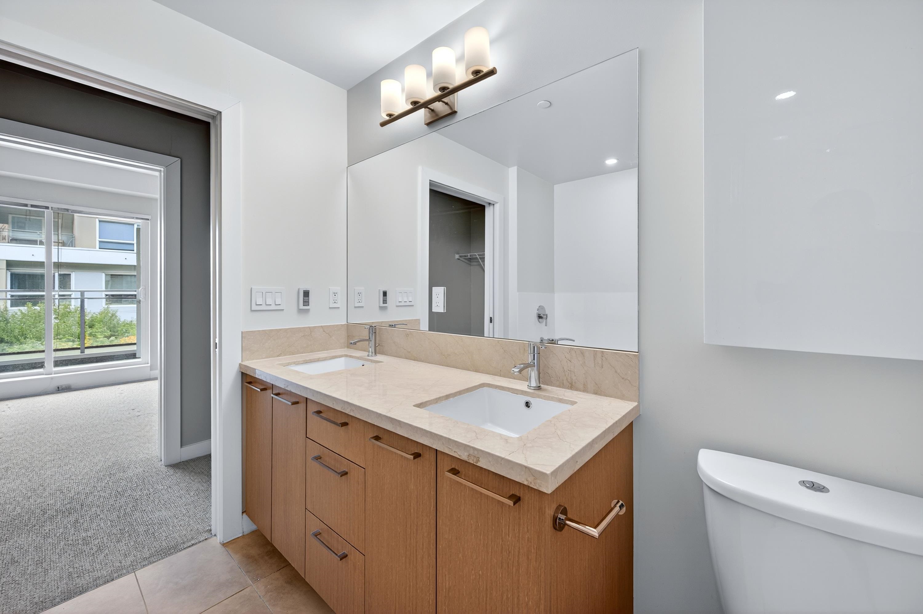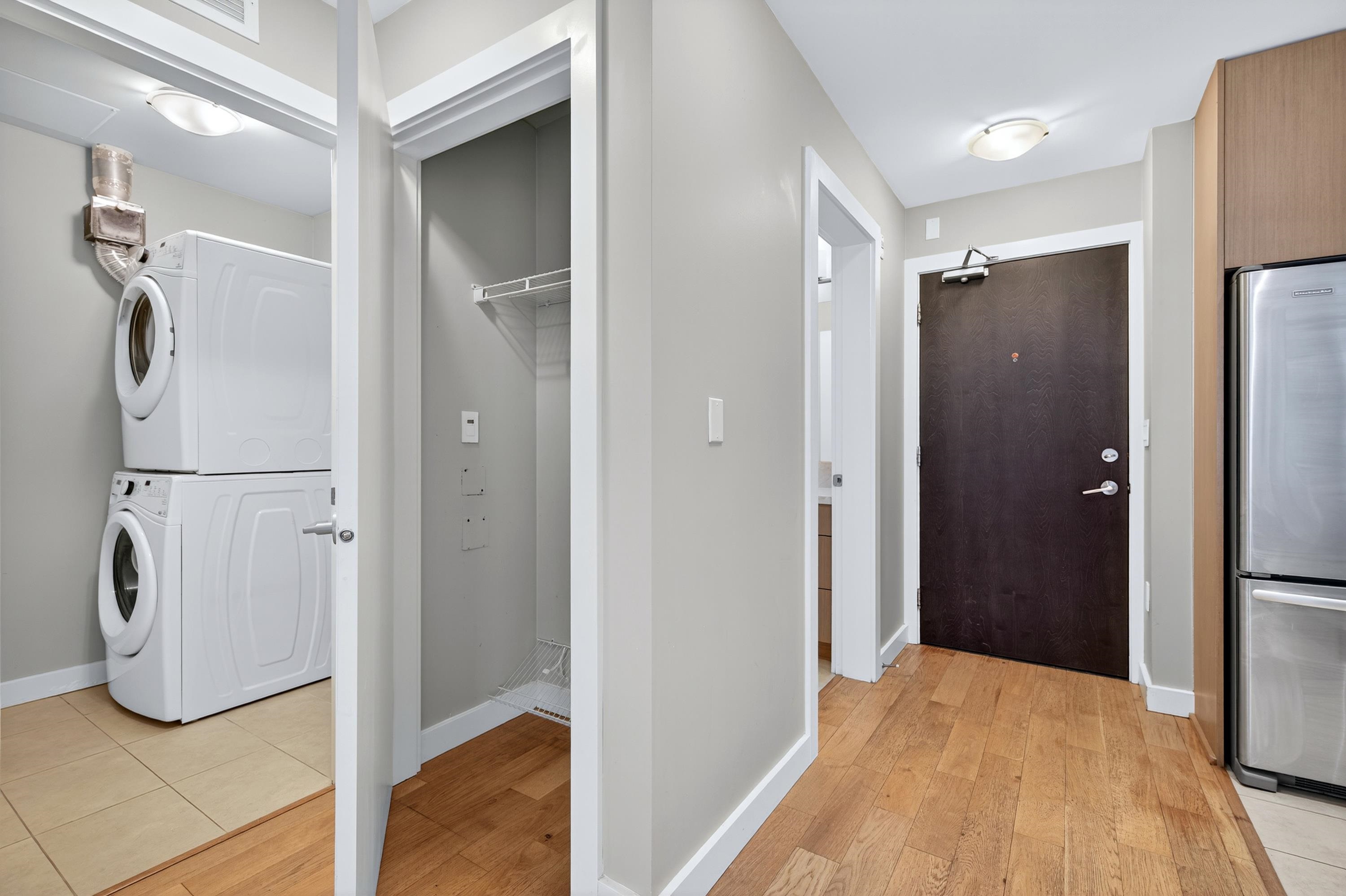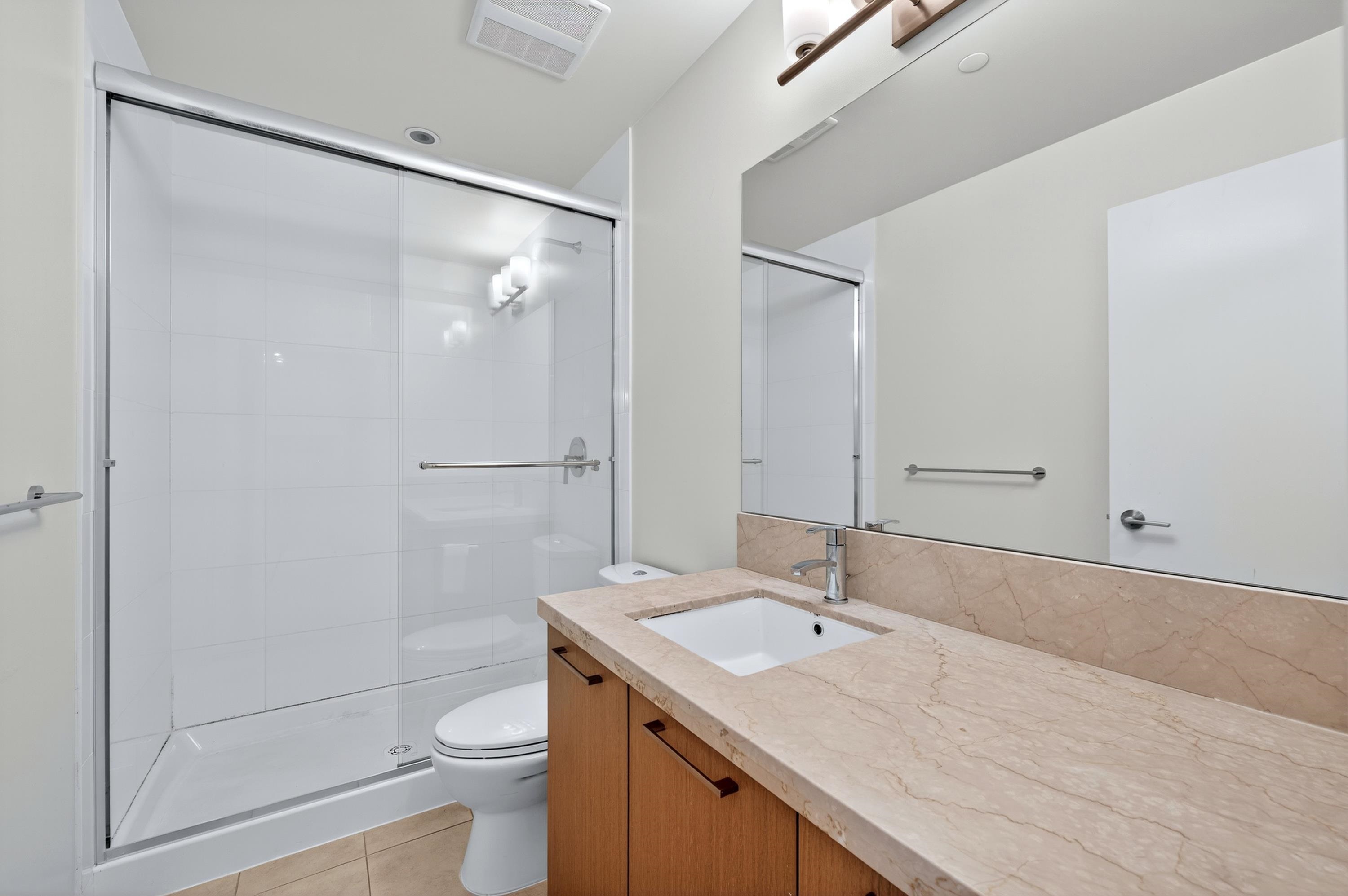 RIVA in Richmond. This quiet 2-bedroom, 2-bathroom unit offers air conditioning, 9-foot ceilings, KitchenAid appliances, and radiant heating in the main bathroom. It includes 1 storage locker and 1 parking spot. Conveniently located within walking distance to the Richmond Olympic Oval, T&T Supermarket, dining, and shopping. Access to Club Riva's 12,000 sqft wellness center with a fitness center, indoor pool, hot tub, sauna, and children’s play area. Pet-friendly building. School catchment: Brighouse Element...
