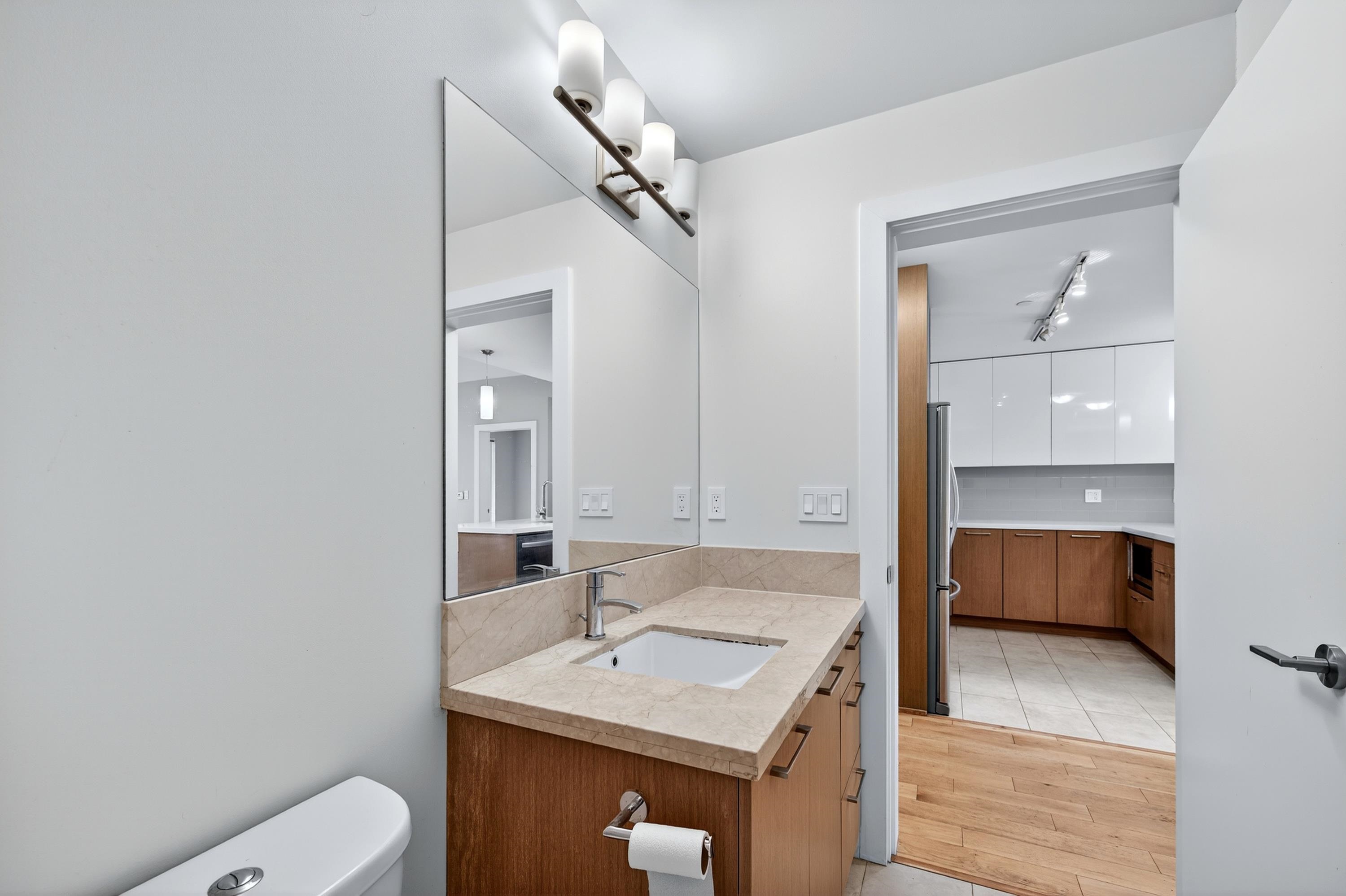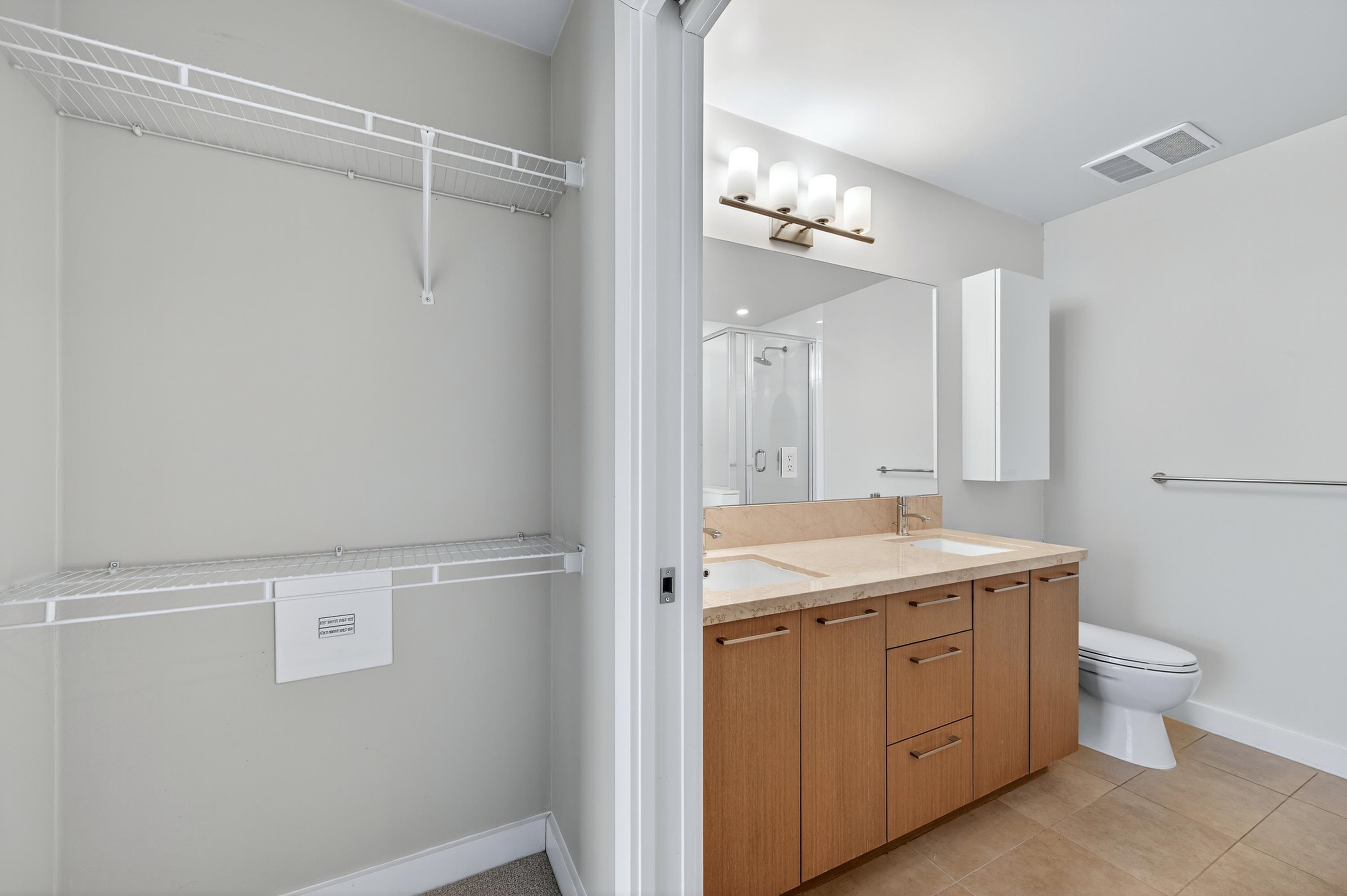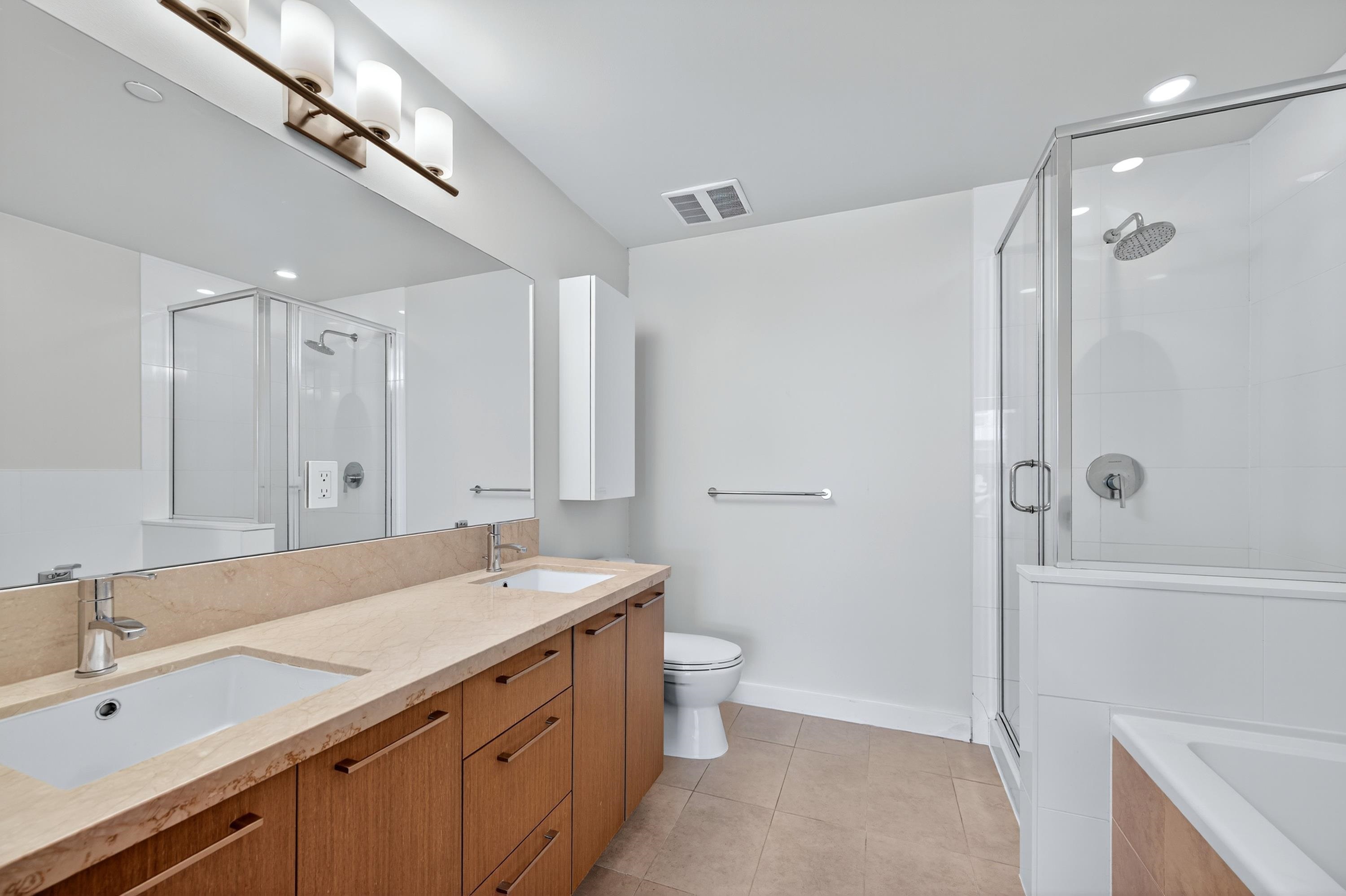 RIVA in Richmond. This quiet 2-bedroom, 2-bathroom unit offers air conditioning, 9-foot ceilings, KitchenAid appliances, and radiant heating in the main bathroom. It includes 1 storage locker and 1 parking spot. Conveniently located within walking distance to the Richmond Olympic Oval, T&T Supermarket, dining, and shopping. Access to Club Riva's 12,000 sqft wellness center with a fitness center, indoor pool, hot tub, sauna, and children’s play area. Pet-friendly building. School catchment: Brighouse Element...