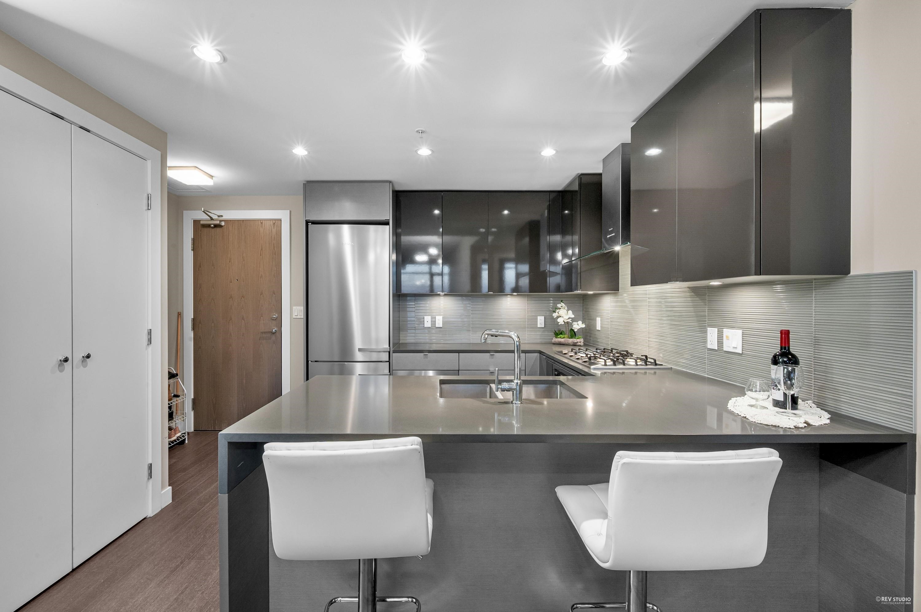 Live Above It All! Wake up to breathtaking sunsets & panoramic city views from every window at the prestigious SOVEREIGN by Bosa.This luxurious 900+SF residence features an open,stylish layout, soaring 9' ceilings & a gourmet kitchen with premium Miele appliances & a spacious island perfect for entertaining. Relax in the generous primary suite with an expansive walk-in closet and enjoy the convenience of full-size laundry. Resort-style amenities include an indoor pool & gym. Ideally located just steps from ...