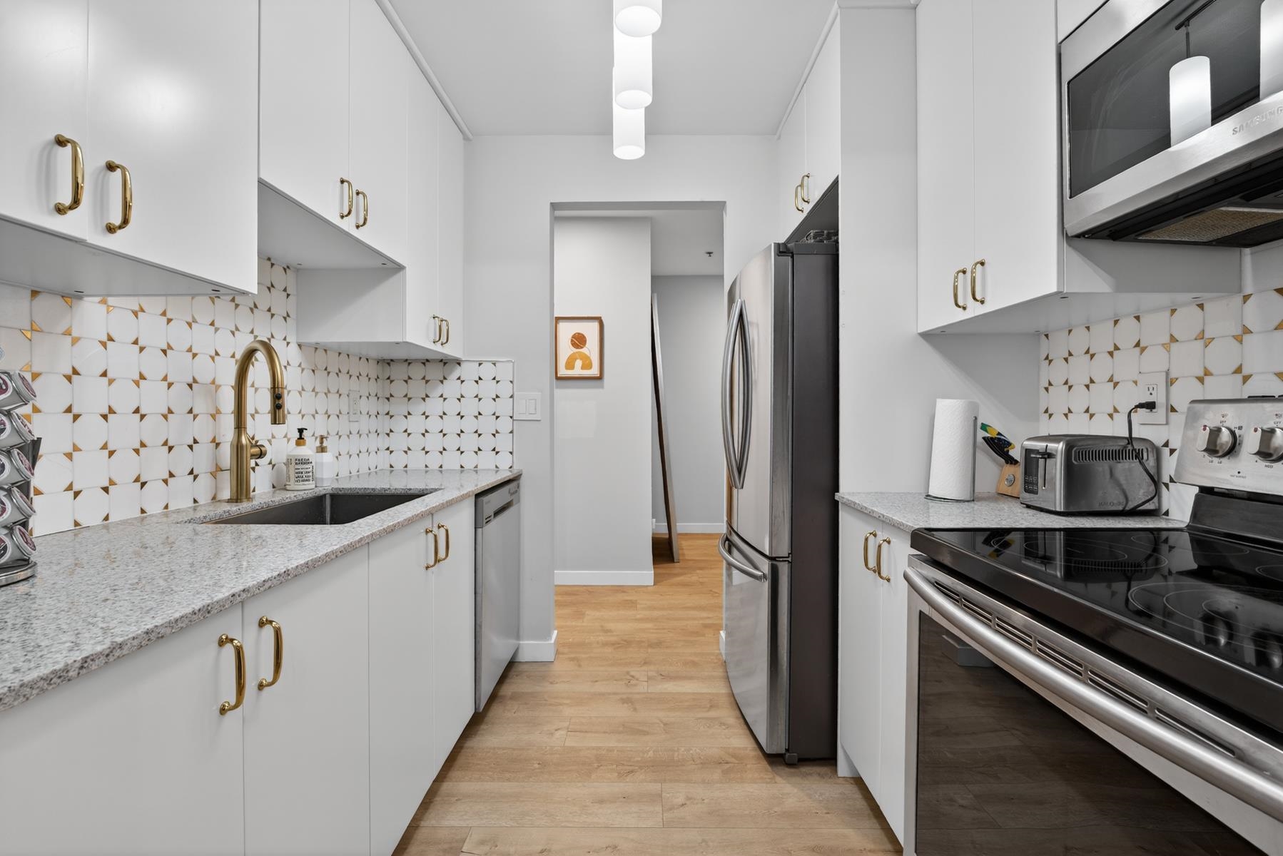 Bright corner 1-bedroom home featuring over-height ceilings and wall-to-wall windows that fill the space with natural light. Recently updated with new flooring throughout and offered fully furnished for a true turn-key opportunity. Efficient layout makes the home feel open and spacious year-round. Located in Downtown Vancouver’s Fortune House, steps to Robson & Alberni shopping, Yaletown dining, and SkyTrain access. Well-maintained building in a prime central location. No rental restrictions and Airbnb allo...