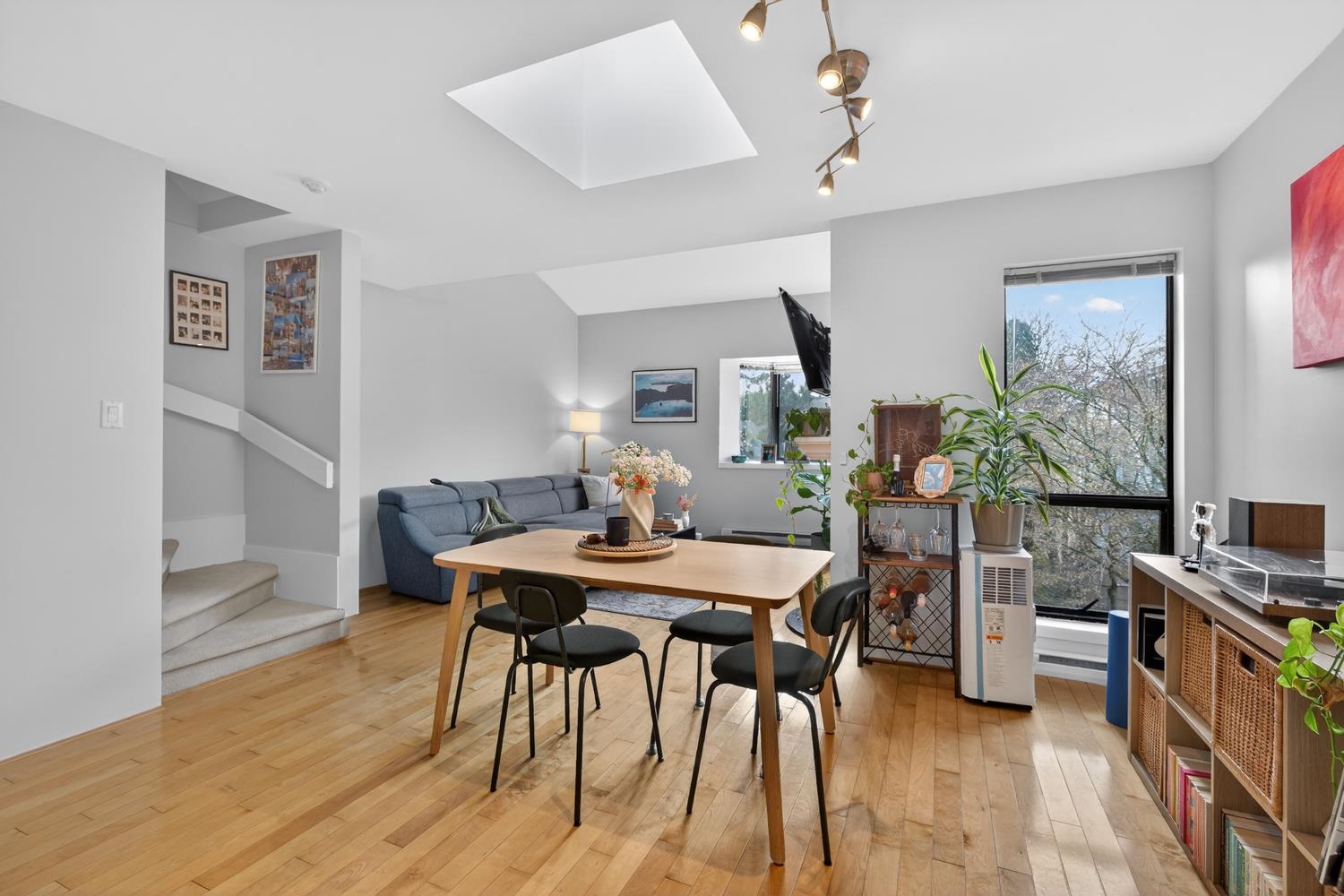 Live in the heart of Kitsilano! Welcome to this stunning two level, 2 bedroom Penthouse featuring an expansive 371 sqft. rooftop patio with city and mountain views! This home radiates character and light, boasting vaulted ceilings, refreshed skylight, and a cozy wood burning fireplace. The main level offers an open floorplan w/recently updated kitchen appliances and smart home climate controls. The lower level showcases two spacious bedrooms with custom millwork and updated flooring. Your private rooftop ha...