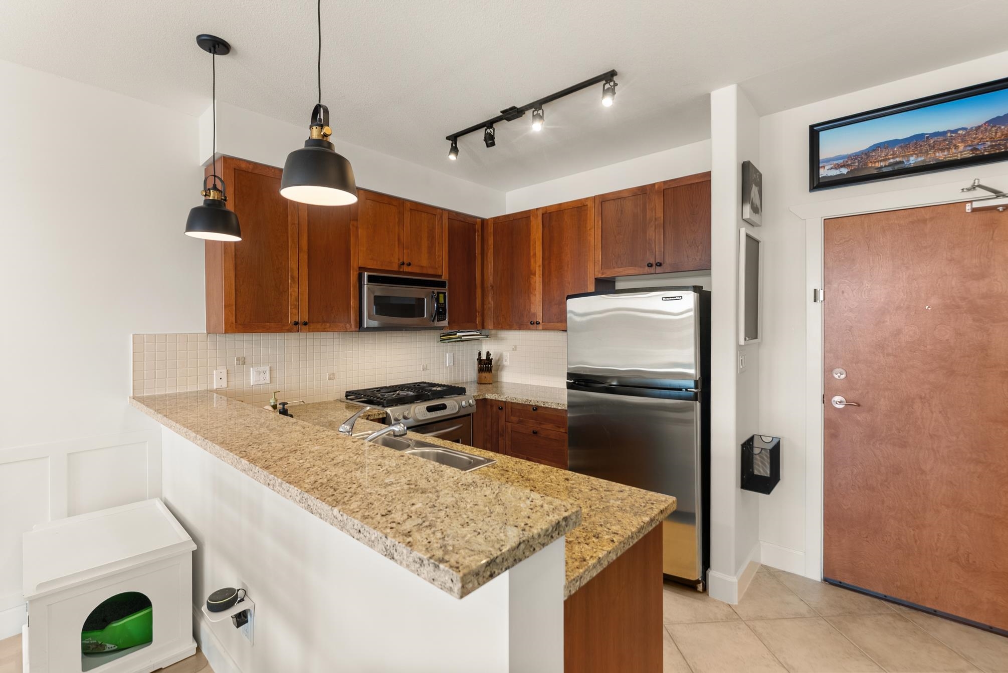 This beautifully updated 1 bdrm in the heart of Steveston Village is move in ready with an unbeatable location. A quiet unit w/ private sunset & peek a boo water views, it features open-concept living, granite counters, maple shaker cabinets, gas range, s/s appl & a cozy f/p. Large sunny private covered deck — perfect for entertaining & year round BBQing. Features new DW, W/D, hot water tank, fresh paint, sunshade, wainscoting, custom built-ins, new lighting & hardware thru-out. The well-managed, rainscree...