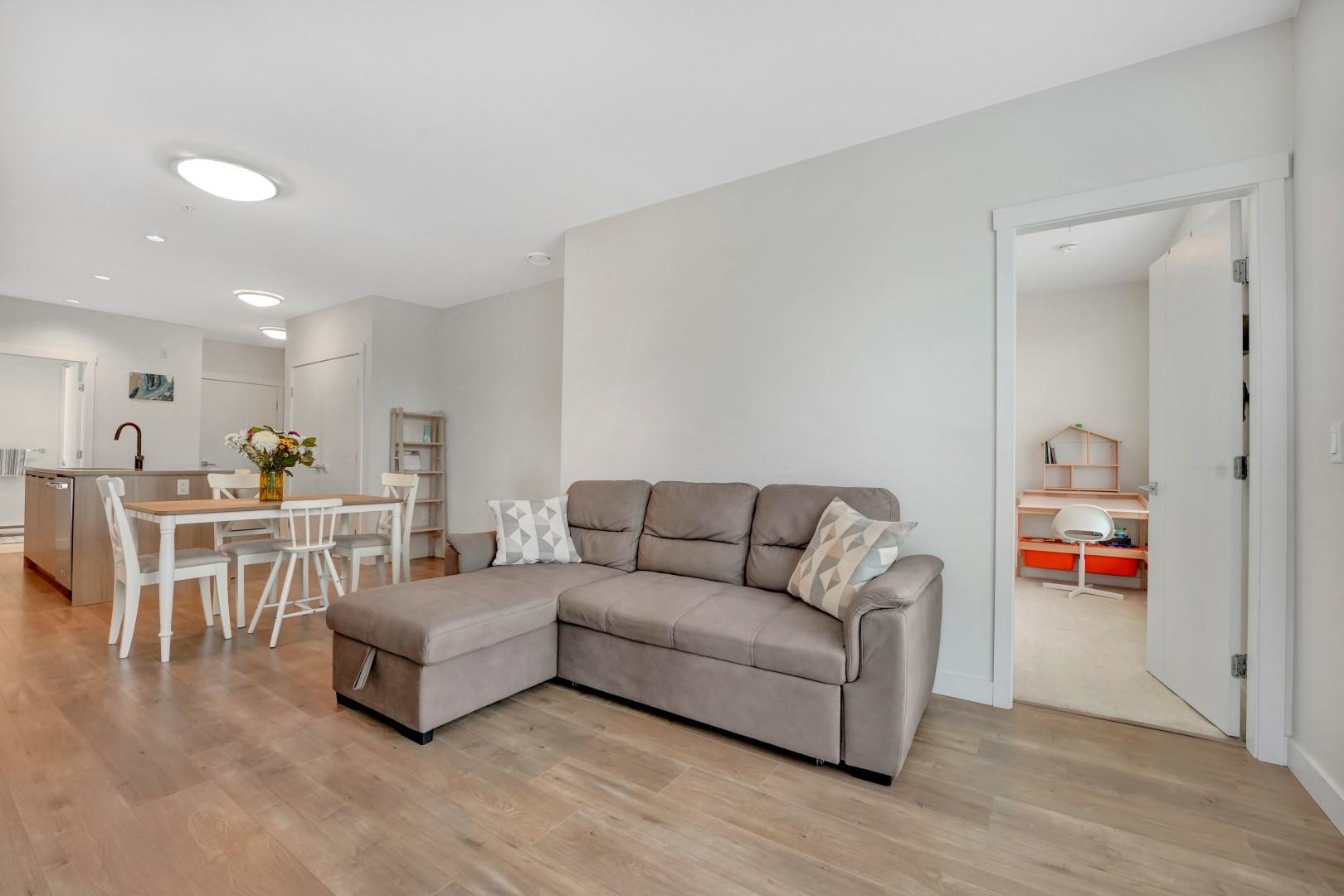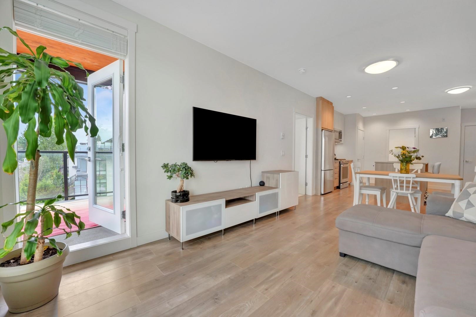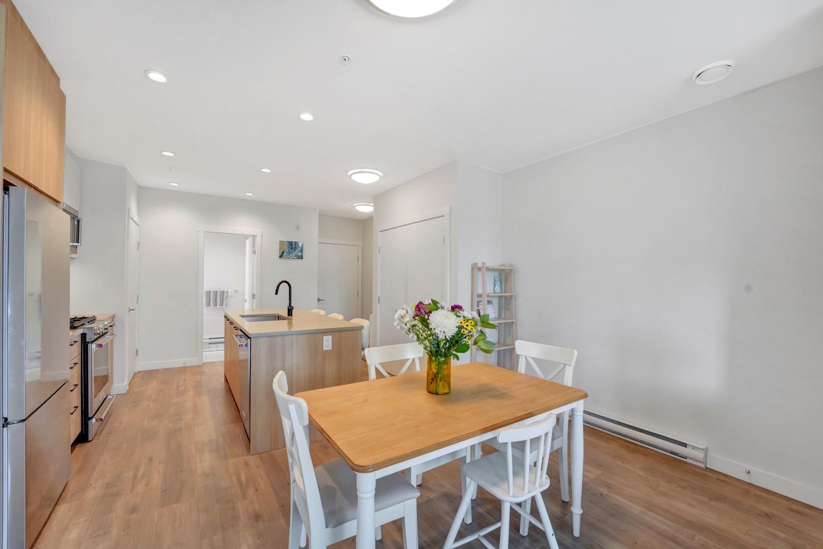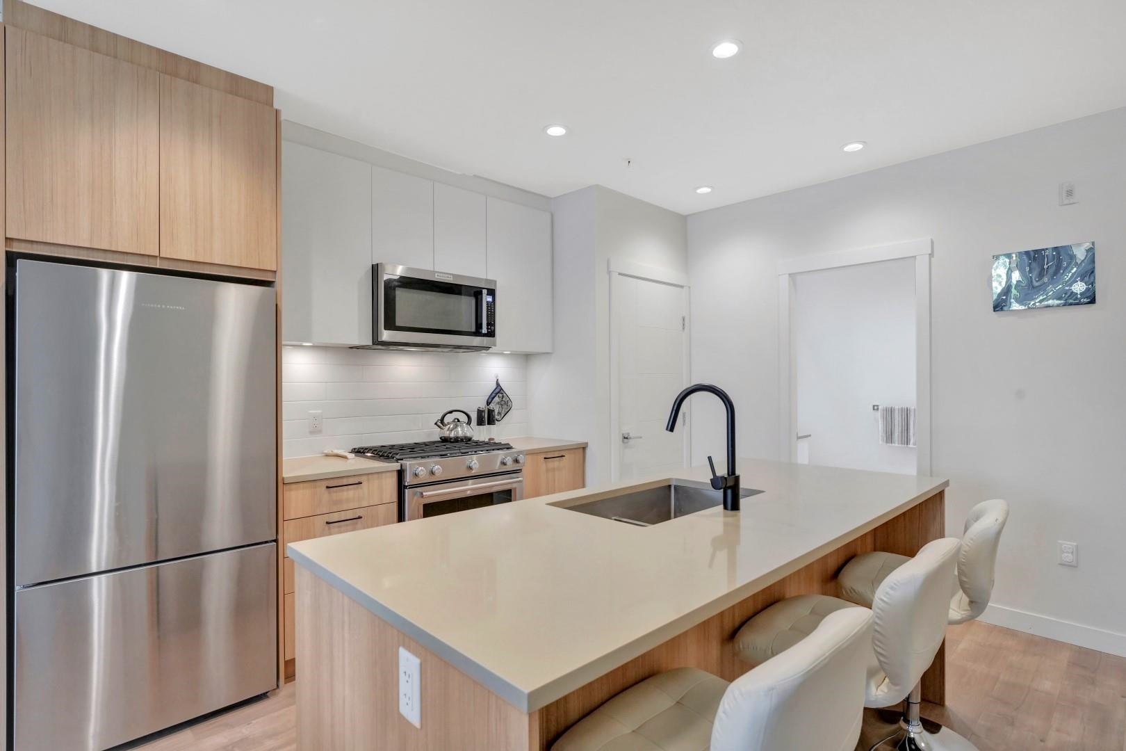 Bright corner unit at DUET by ADERA – modern living in a prime West Coquitlam location! This 2-bedroom, 2-bathroom home offers open-concept layout with CLT construction for enhanced comfort and sustainability. The sleek kitchen features quartz countertops, an island, premium KitchenAid S/S appliances, ample cabinetry, and a pantry for added storage. The spacious primary bedroom includes a walk-through closet leading to a well-appointed ensuite. Enjoy indoor-outdoor living with a large private patio, ideal f...