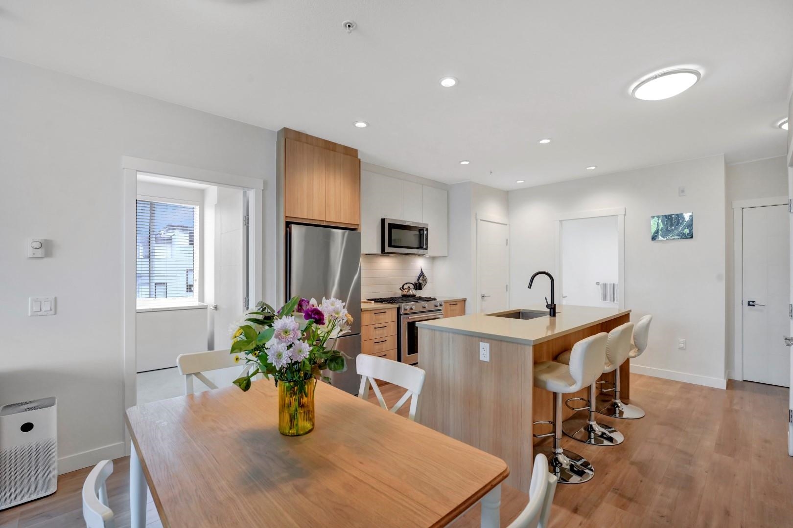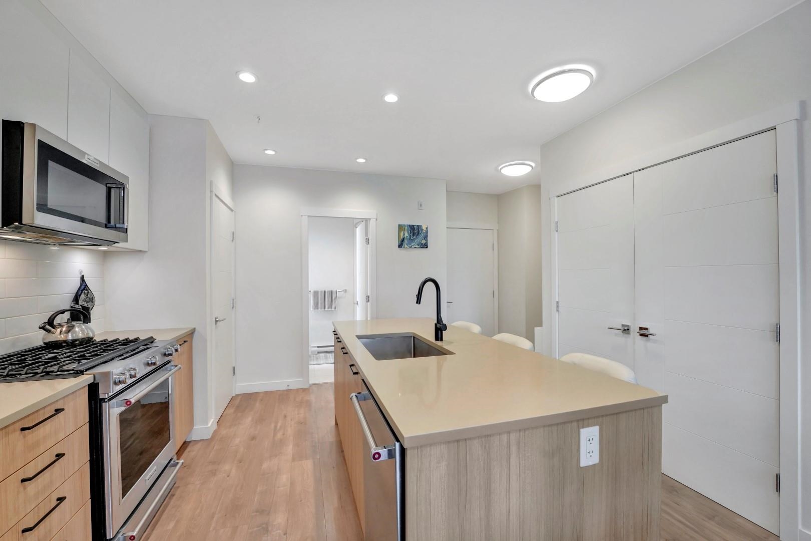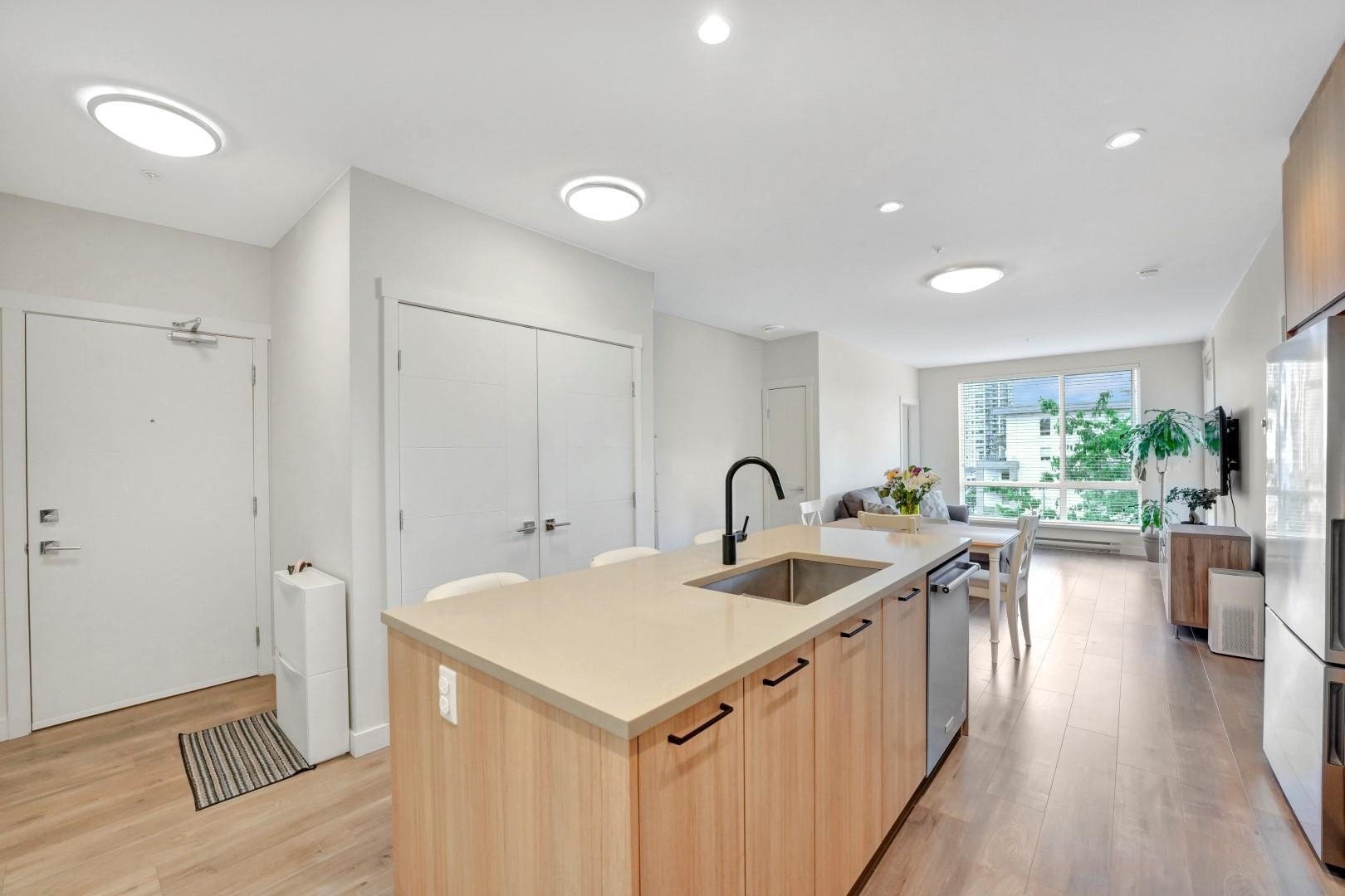 Bright CORNER unit at Duet by Adera, a modern mid-rise in the heart of Burquitlam. This 2-bedroom, 2-bath home features extra windows for abundant natural light, enhanced privacy, and an airy open-concept layout—a great home for upsizers or first-time buyers. Built with innovative CLT construction for improved comfort and sustainability. The sleek kitchen offers quartz countertops, island, premium KitchenAid stainless steel appliances, ample cabinetry, and pantry. Spacious primary bedroom with walk-through ...