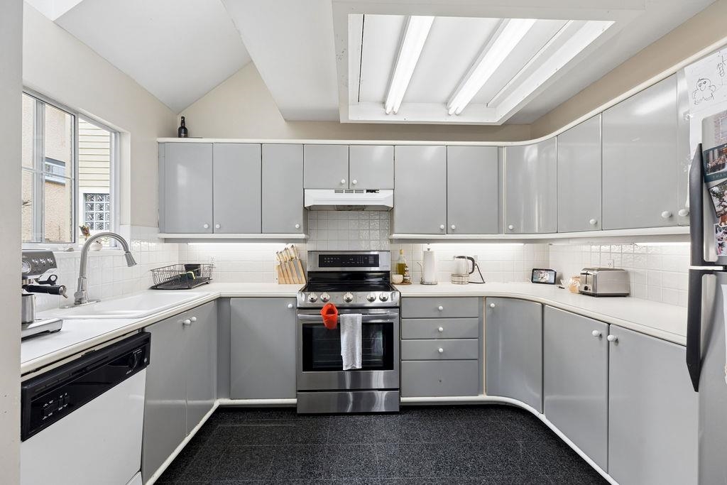 Literal steps from the Pacific. Not Avenue, The Ocean. This is Kitsilano at its most liveable, and this south-facing back duplex is its perfect expression. The large bay window and french doors don't just invite the sun in, they choreograph it, drawing warmth across the generous subtly sunken living area and thus elevated dining area; both overlooking and seemingly connected to the sun soaked backyard. The scale feels rare for a duplex, the kind of space that surprises you on the way in,inviting you to stay...