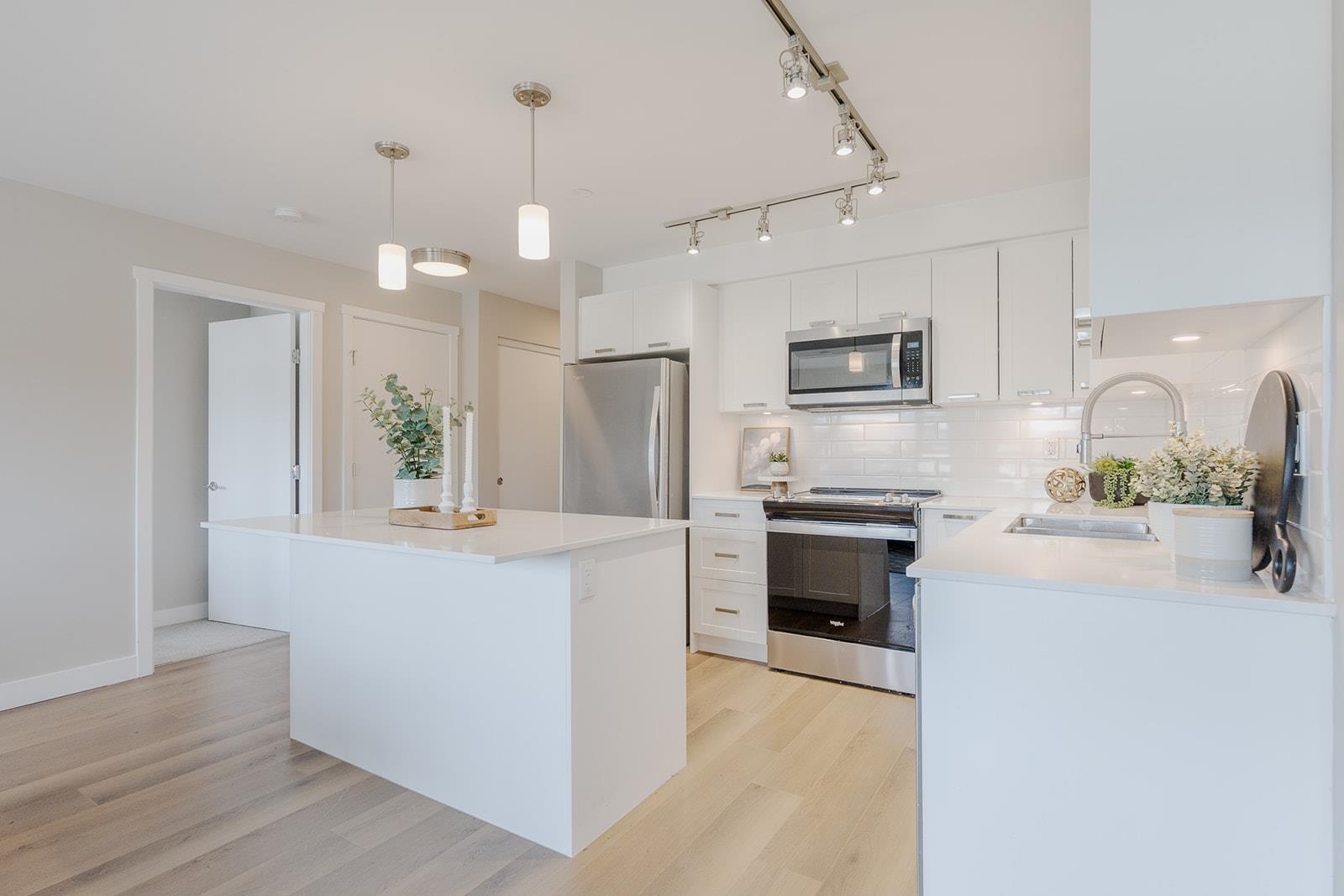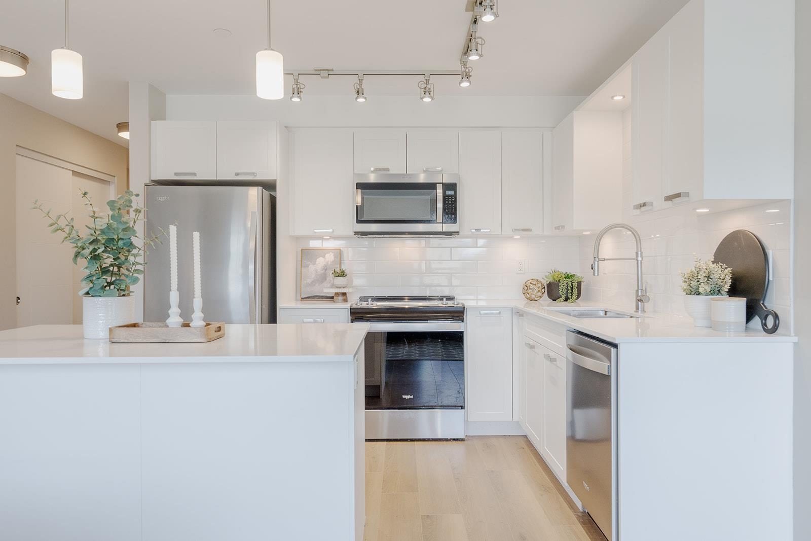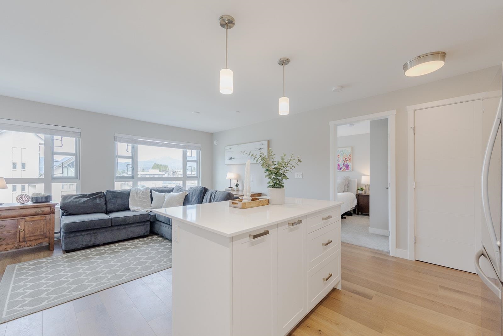 Versatile 2 bedroom plus den Northwest corner unit featuring mountain views in highly acclaimed "Edge on Edge 2" by award winning MacLean Homes. Gleaming white shaker cabinets, stone counters and Stainless appliances in the generous sized and open concept island kitchen. Massive covered deck provides additional year round living space. Both bedrooms are generous in size with the primary bedroom offering his and hers closets plus a well appointed en-suite bathroom with oversized shower. There's a second full...