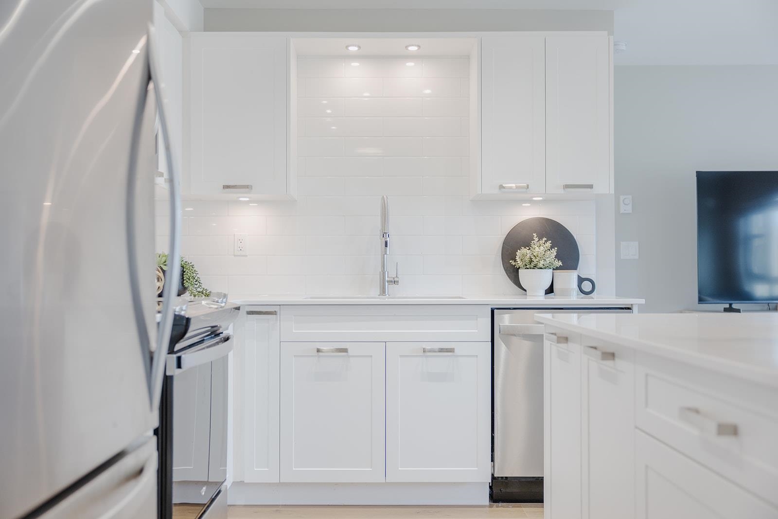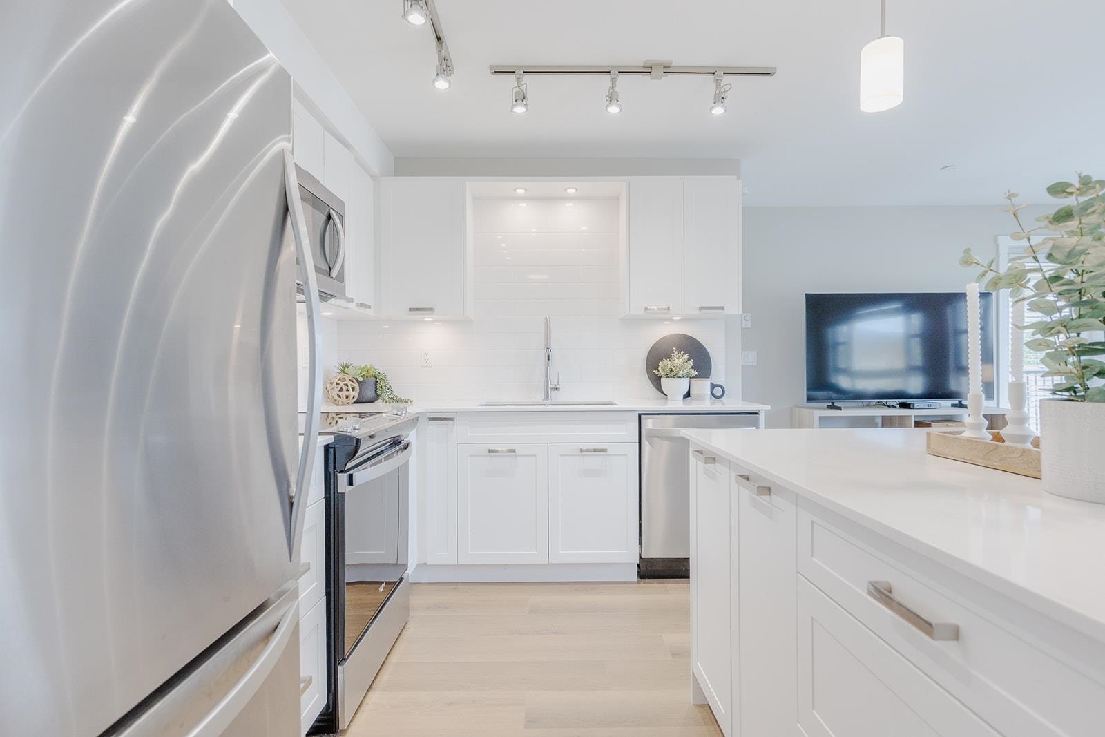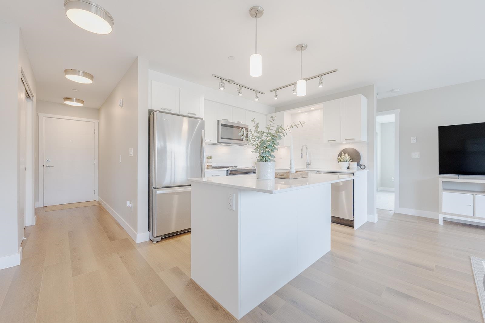 Versatile 2 bedroom plus den Northwest corner unit featuring mountain views in highly acclaimed "Edge on Edge 2" by award winning MacLean Homes. Gleaming white shaker cabinets, stone counters and Stainless appliances in the generous sized and open concept island kitchen. Massive covered deck provides additional year round living space. Both bedrooms are generous in size with the primary bedroom offering his and hers closets plus a well appointed en-suite bathroom with oversized shower. There's a second full...