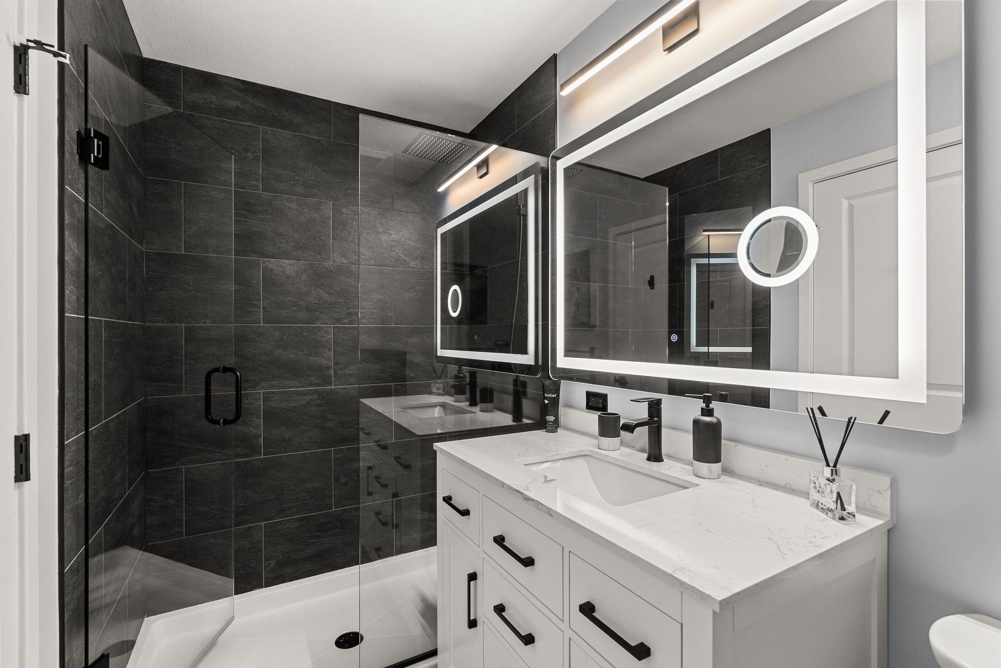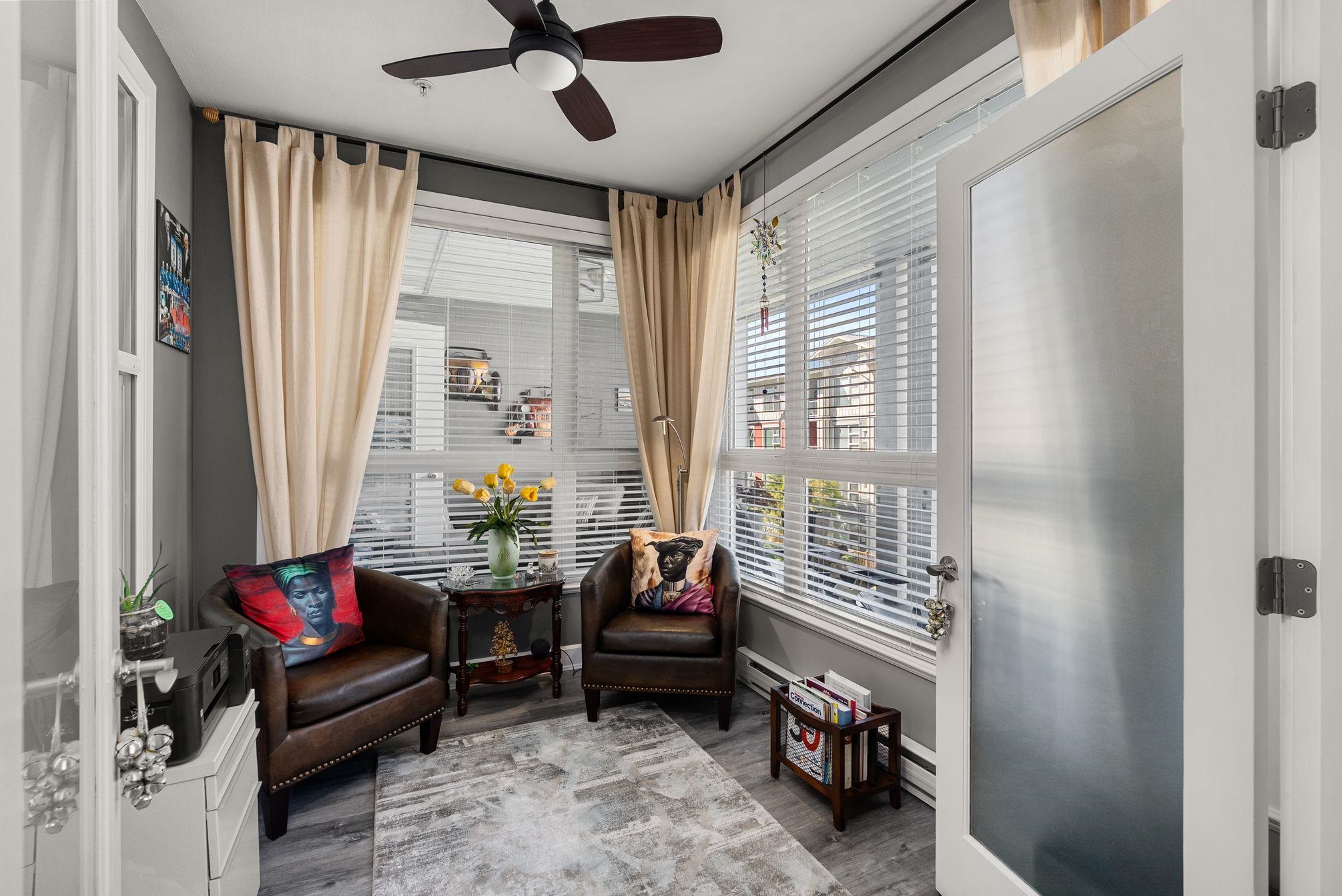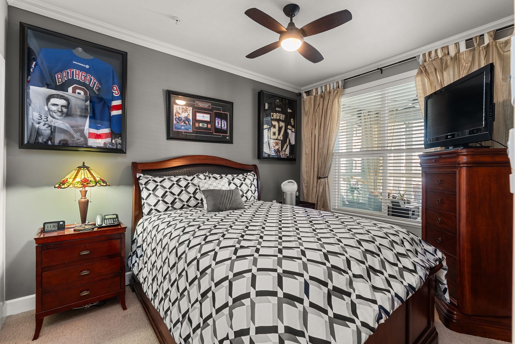 Stunning Coppery Sky Apartment! This gorgeous & spotless 2 bed, 2 bath, den & separate laundry/pantry room has 1,088 sq ft unit w/ updates throughout – BONUS 3 PARKING STALLS! Both bathrooms updated: new floors (heated in ensuite w/ heated mirror & towel rack), tub & shower tile, vanities & fixtures. Step into an open kitchen w/ quartz waterfall counter & matching backsplash, S/S appliances incl French door fridge & gas stove & under cabinet lighting and enjoy engineered flooring throughout w/ carpet in the...