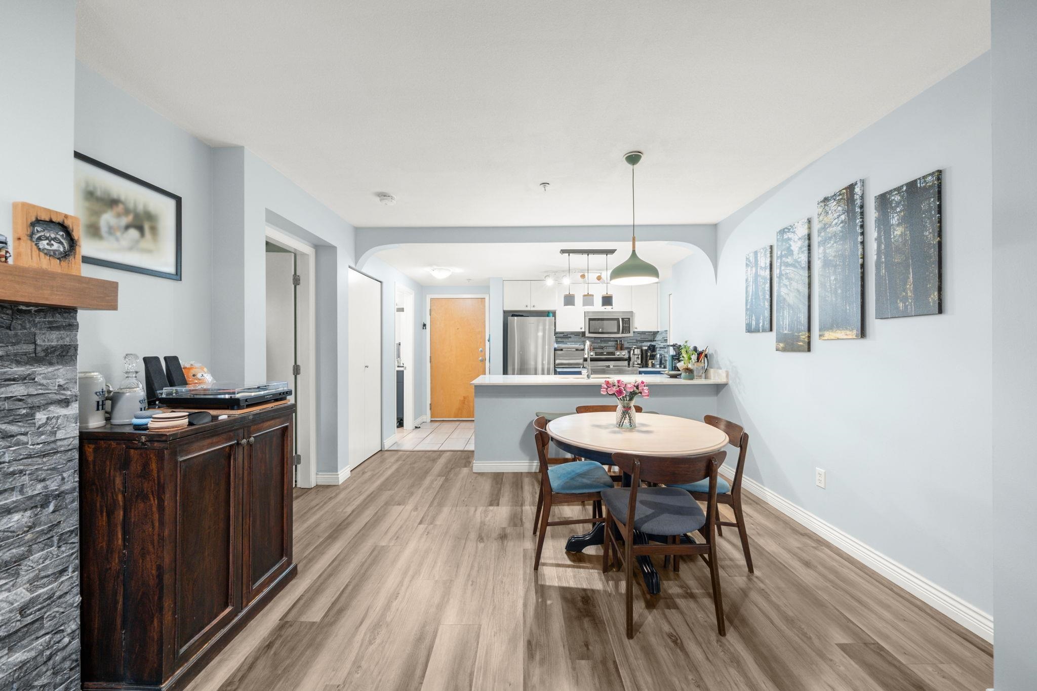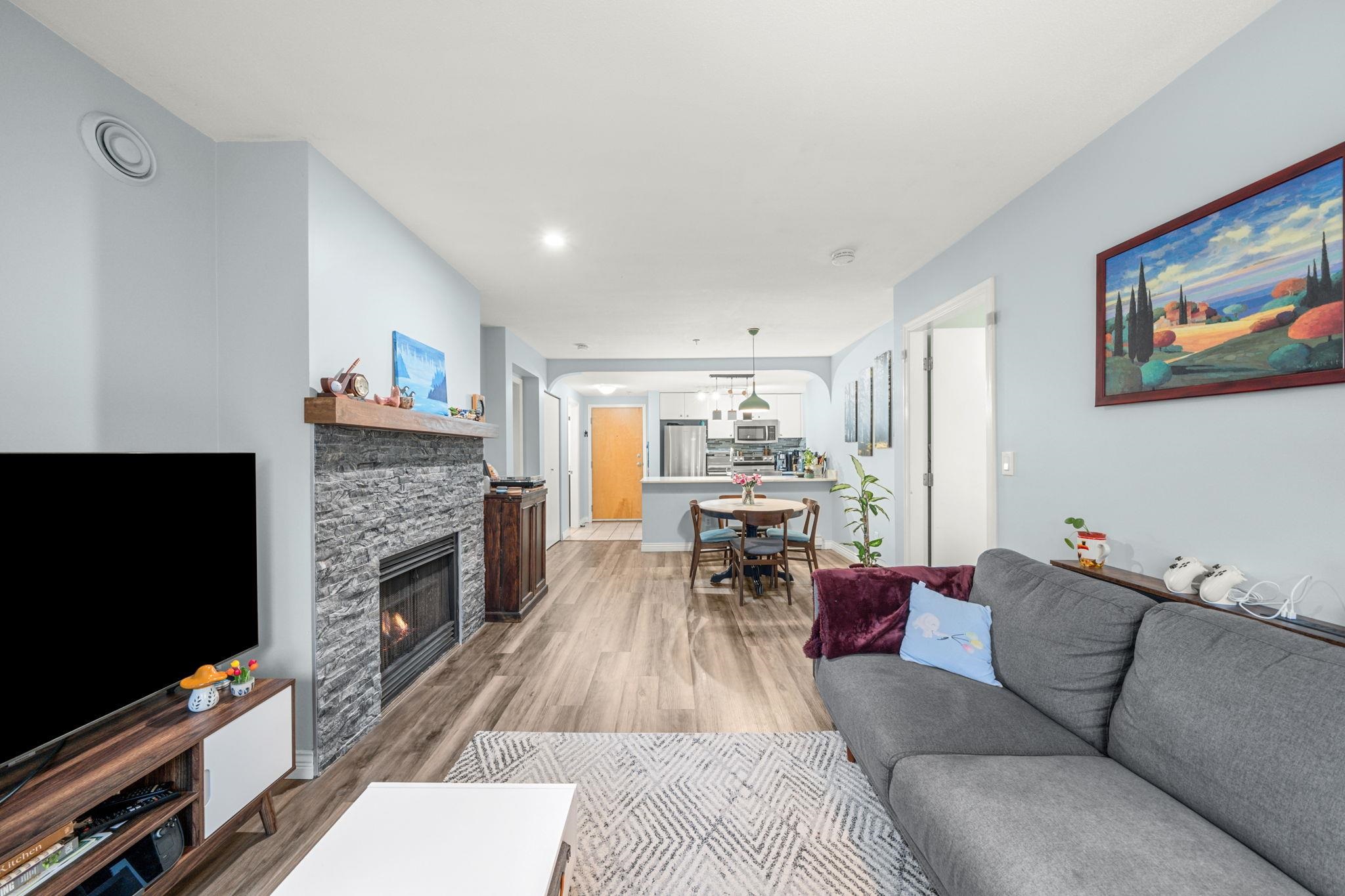 Nestled in a quiet tree-lined Street in the heart of Highgate Village is this beautifully maintained 778 SF 2 bed, 1 bath home offering thoughtfully designed, open concept living with no wasted space at the award winning CARMEL by Adera. The ideal layout offering added privacy with bedrooms on opposite sides. The spacious living & dining area features cozy gas fireplace with updated fireplace mount and charming bay window seating area. Extensively updated in 2021 to include new kitchen counter, s/s applianc...