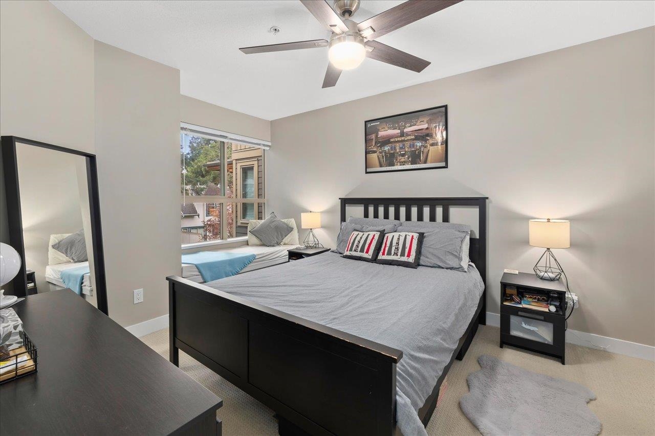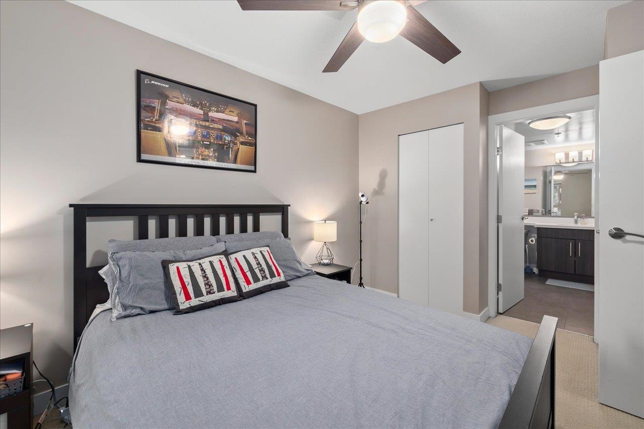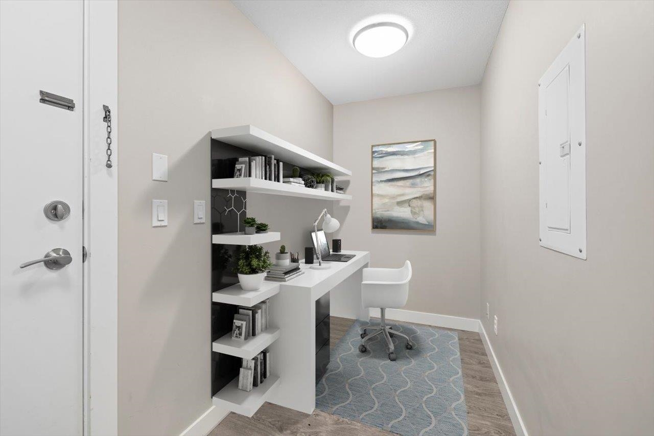 Storybrook by renowned Ledingham McAllister is a quality building awarded best low-rise by UDI in 2014! Spacious ~700 sqft 1 bed + den unit features open concept living: a gourmet kitchen w/ stone counters & S/S appliances that opens to your dining & living areas. Primary bedroom with cozy carpets & reading nook make for a perfect morning, plus easy cheater ensuite access. Open den is a perfect home office or extra storage space. Serene treed exposure is private w/ no one looking in - on quiet side of the b...