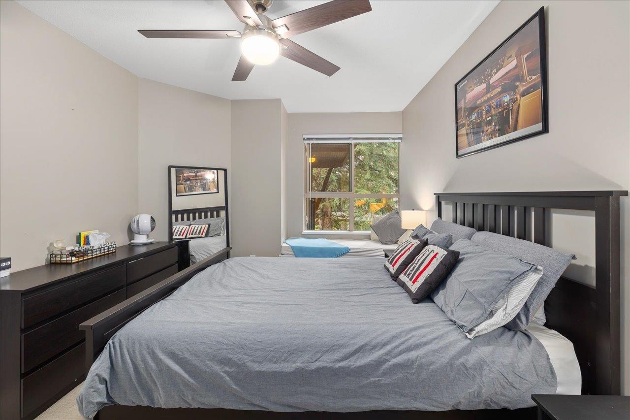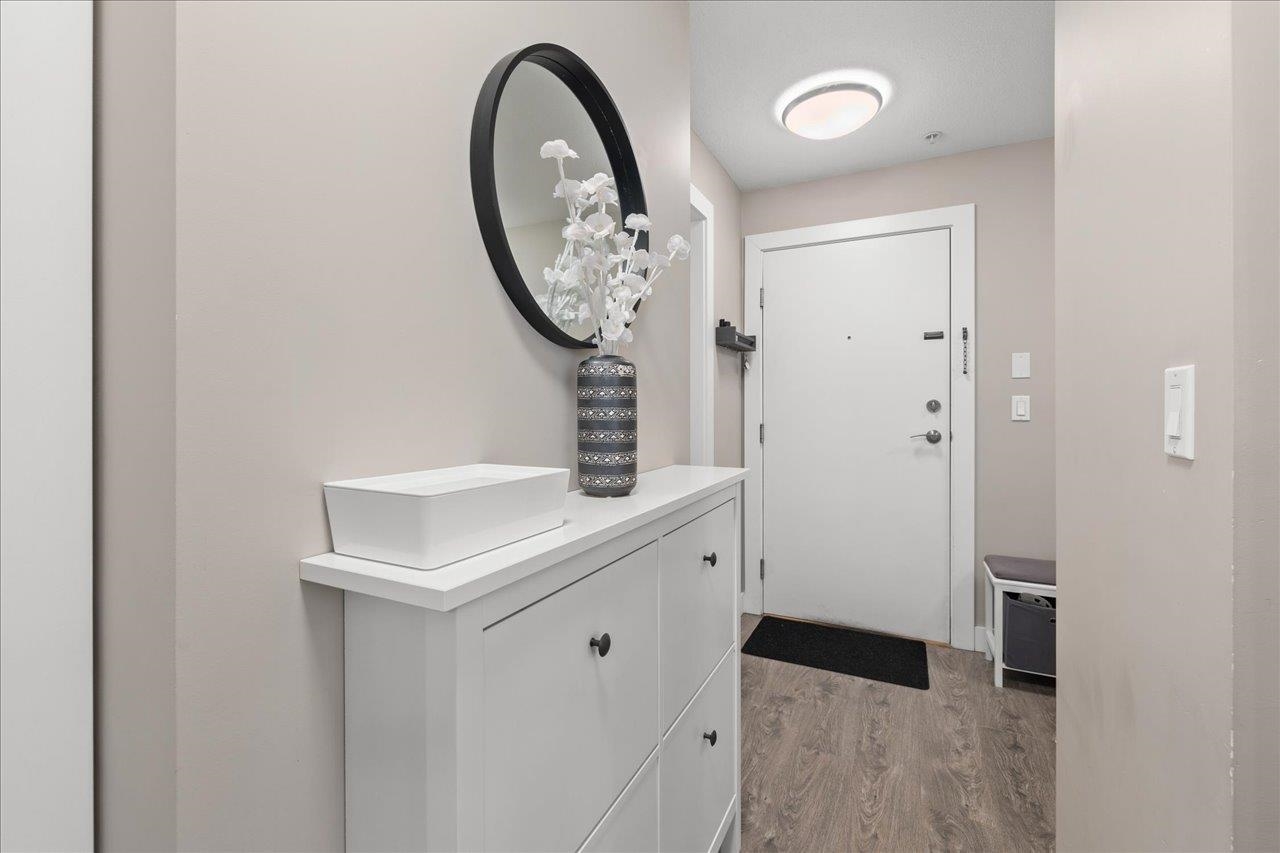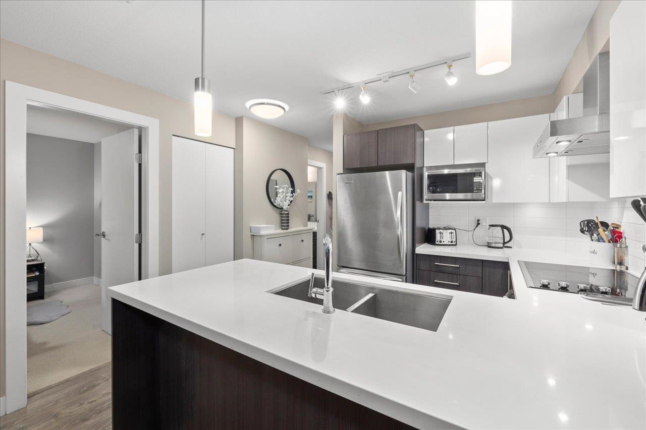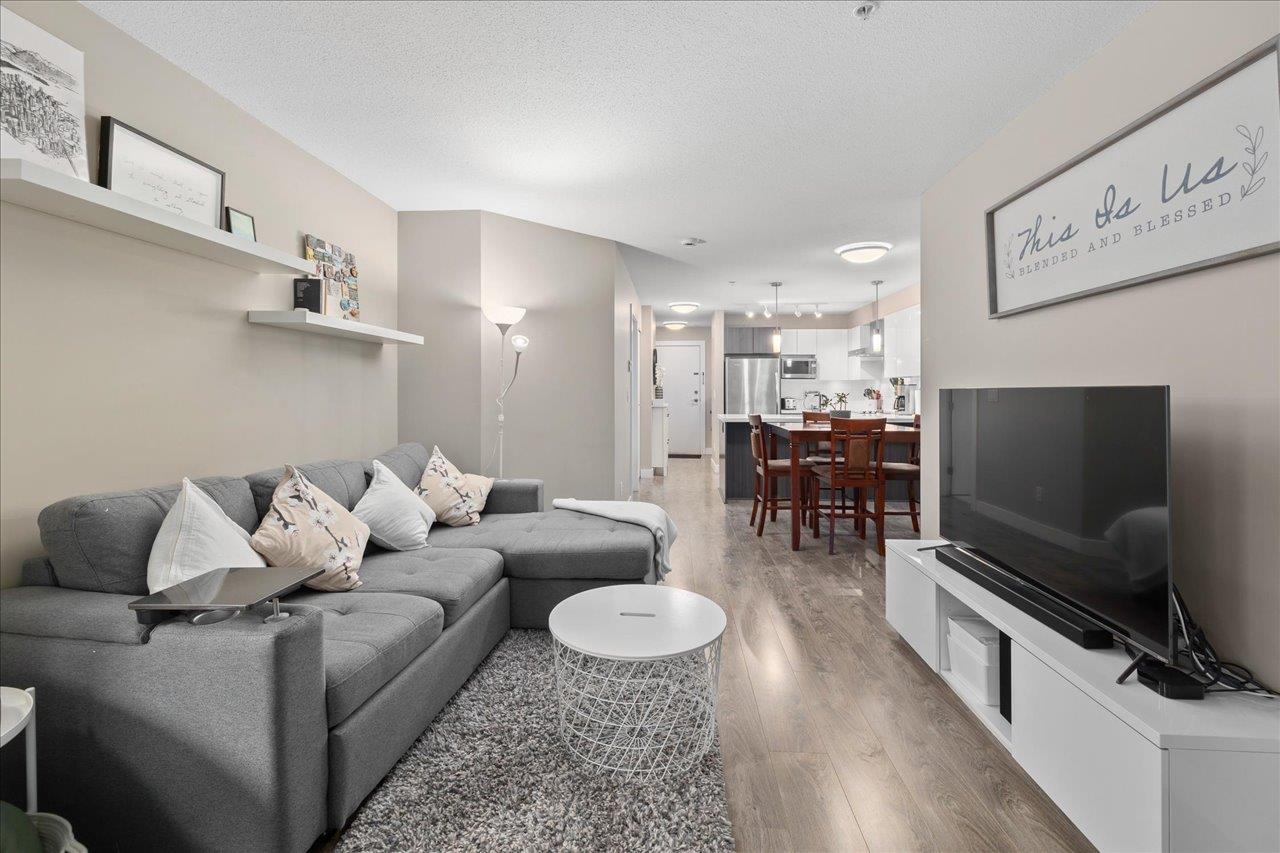 Storybrook by renowned Ledingham McAllister is a quality building awarded best low-rise by UDI in 2014! Spacious ~700 sqft 1 bed + den unit features open concept living: a gourmet kitchen w/ stone counters & S/S appliances that opens to your dining & living areas. Primary bedroom with cozy carpets & reading nook make for a perfect morning, plus easy cheater ensuite access. Open den is a perfect home office or extra storage space. Serene treed exposure is private w/ no one looking in - on quiet side of the b...