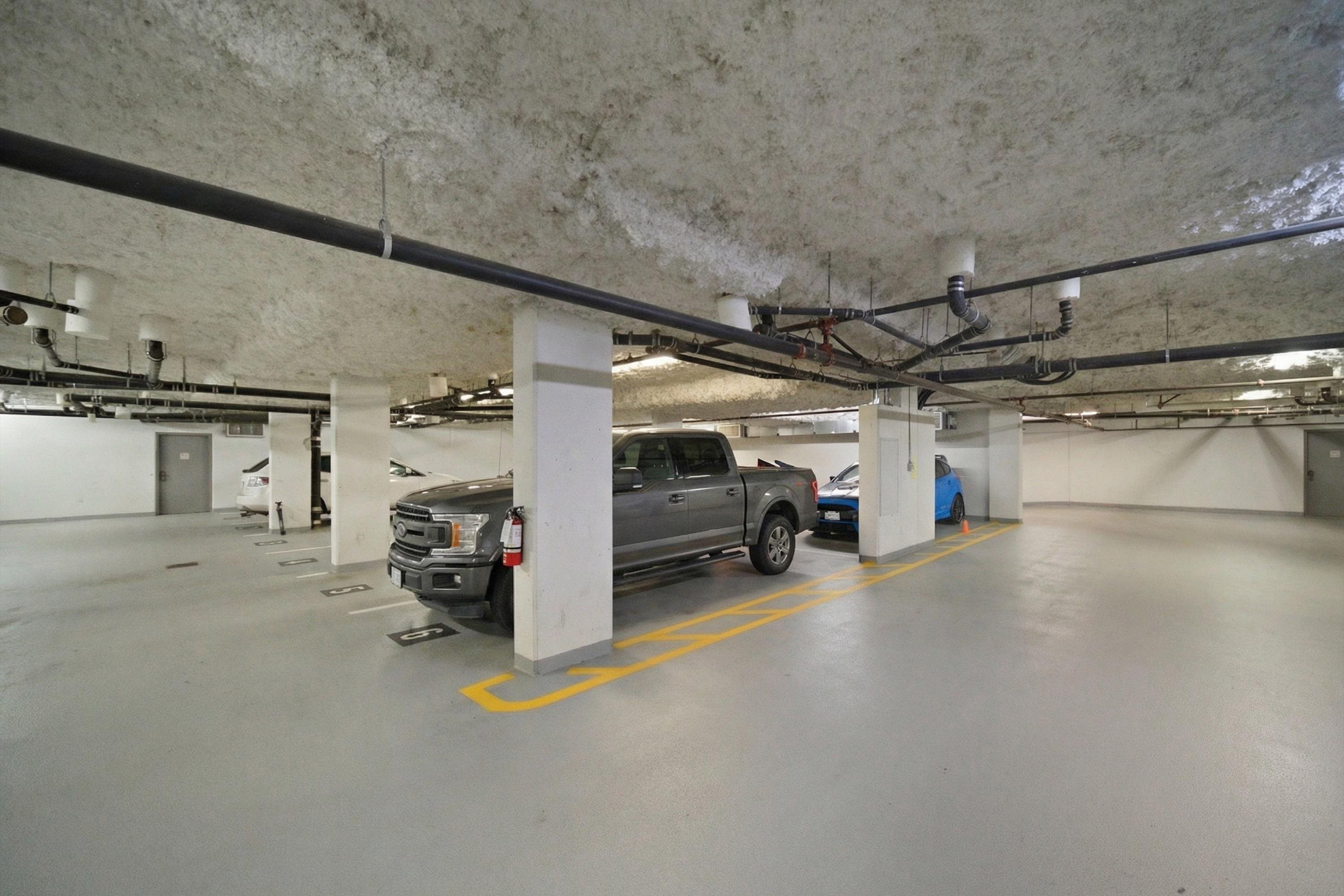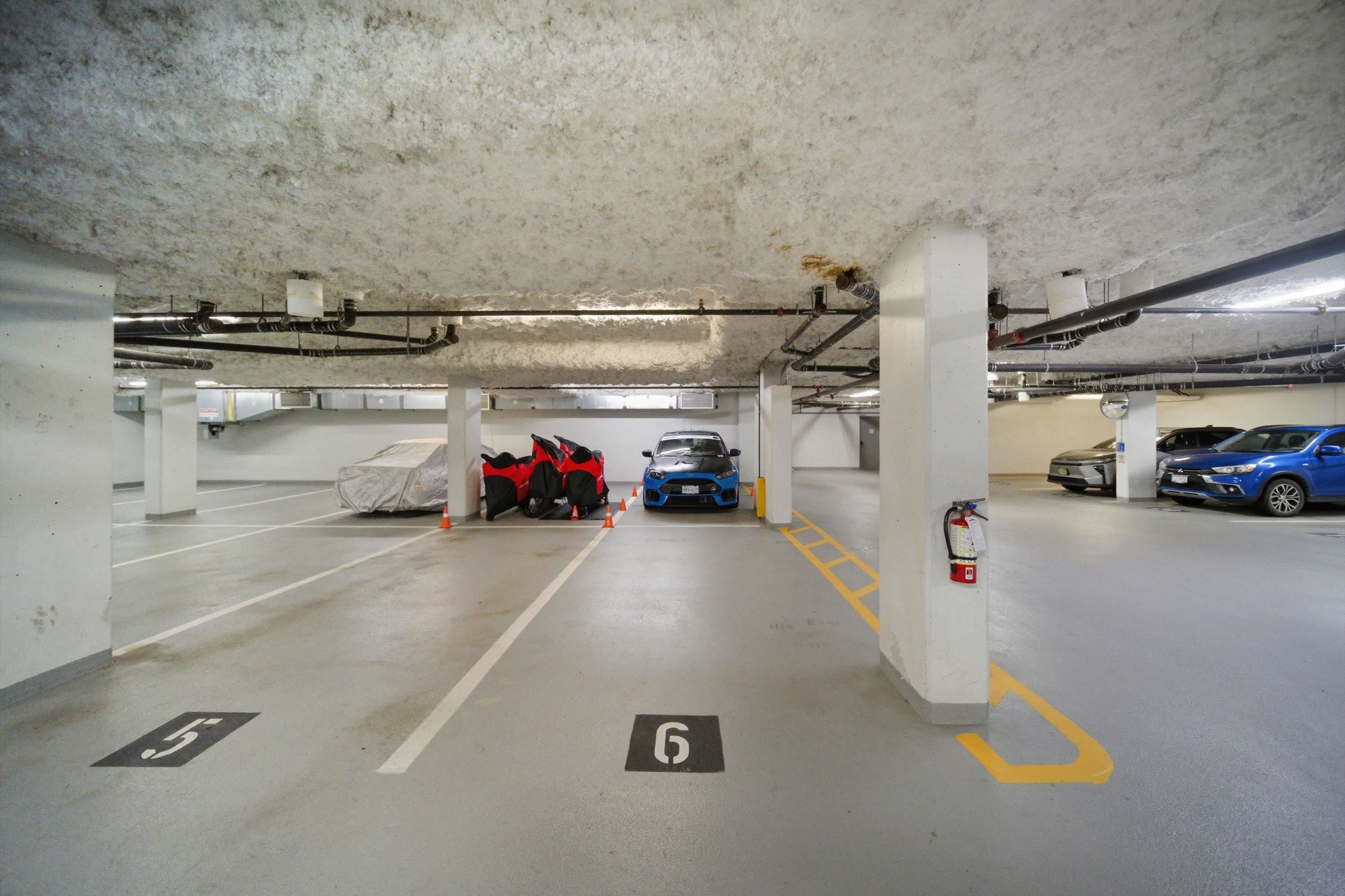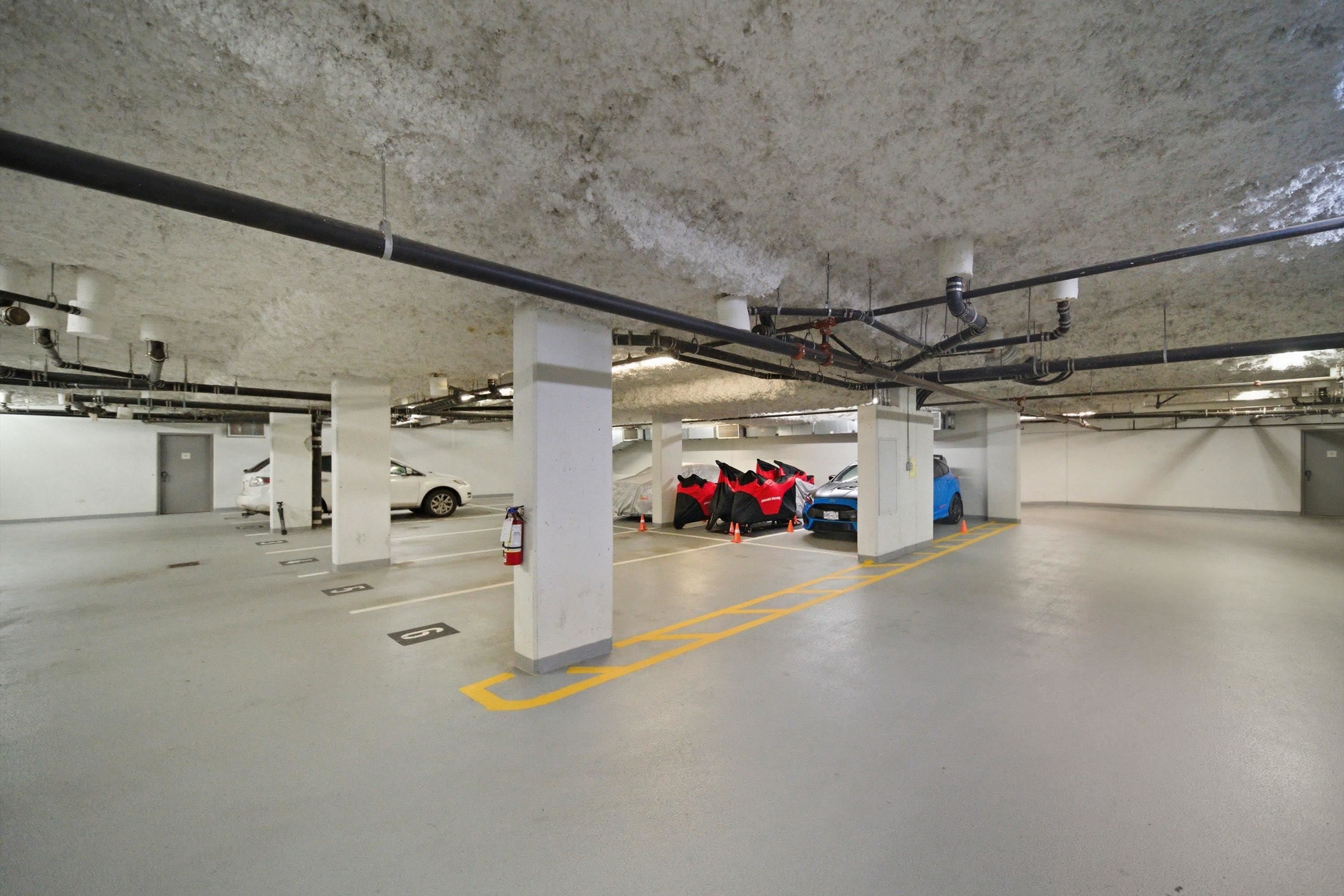 Rarely available bright corner unit over 500 sqft w/ exceptional privacy&functional layout. This well-maintained 1-bedroom features 3 extra windows bringing in abundant natural light w/ quiet courtyard views. Conveniently located beside the stairwell for quick access while maintaining privacy w/ no direct neighbours on one side. Includes 3 underground parking stalls (2 tandem) + storage locker, a rare bonus in this area. Recent updates: new water-resistant laminate flooring in living room & bedroom, fresh f...