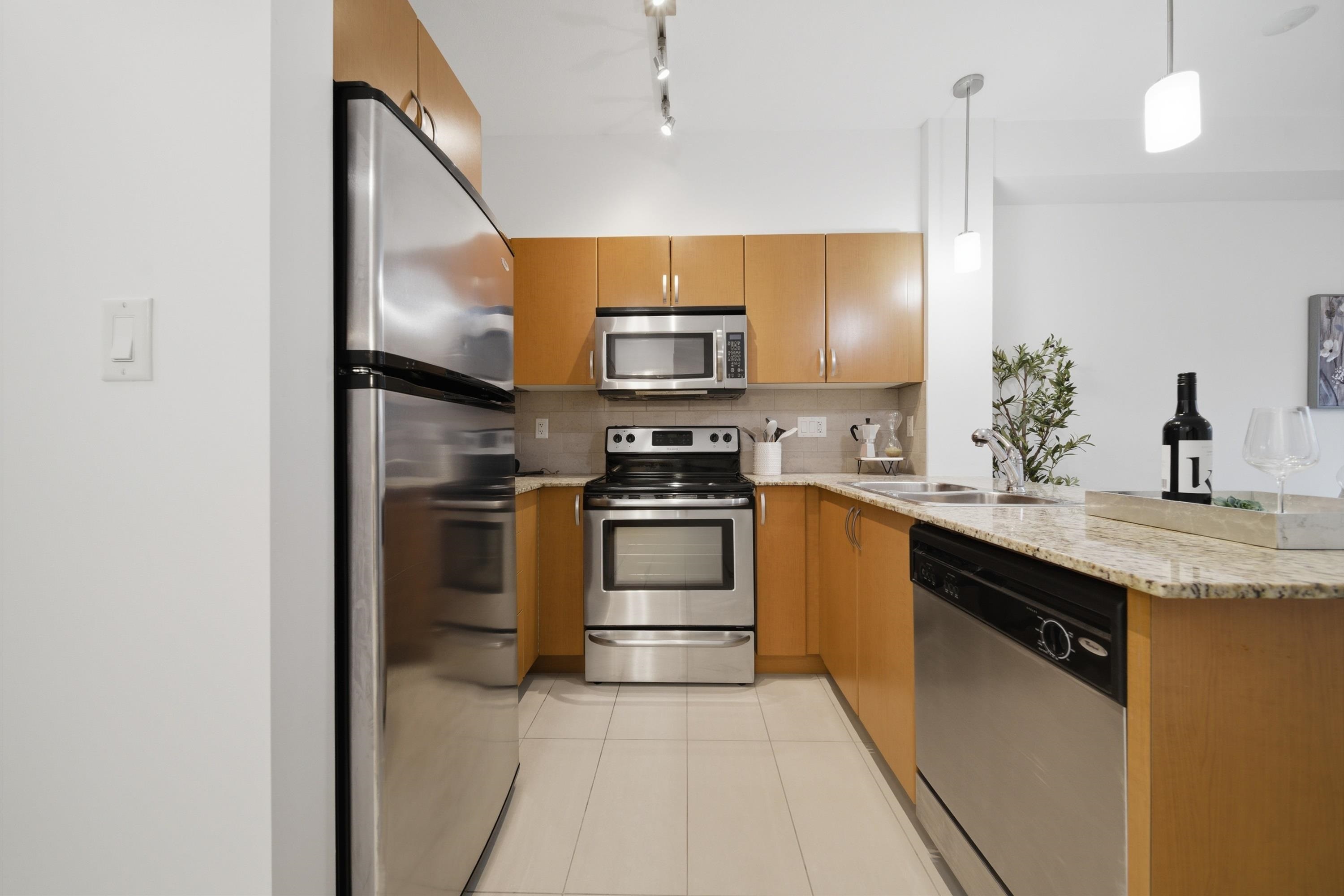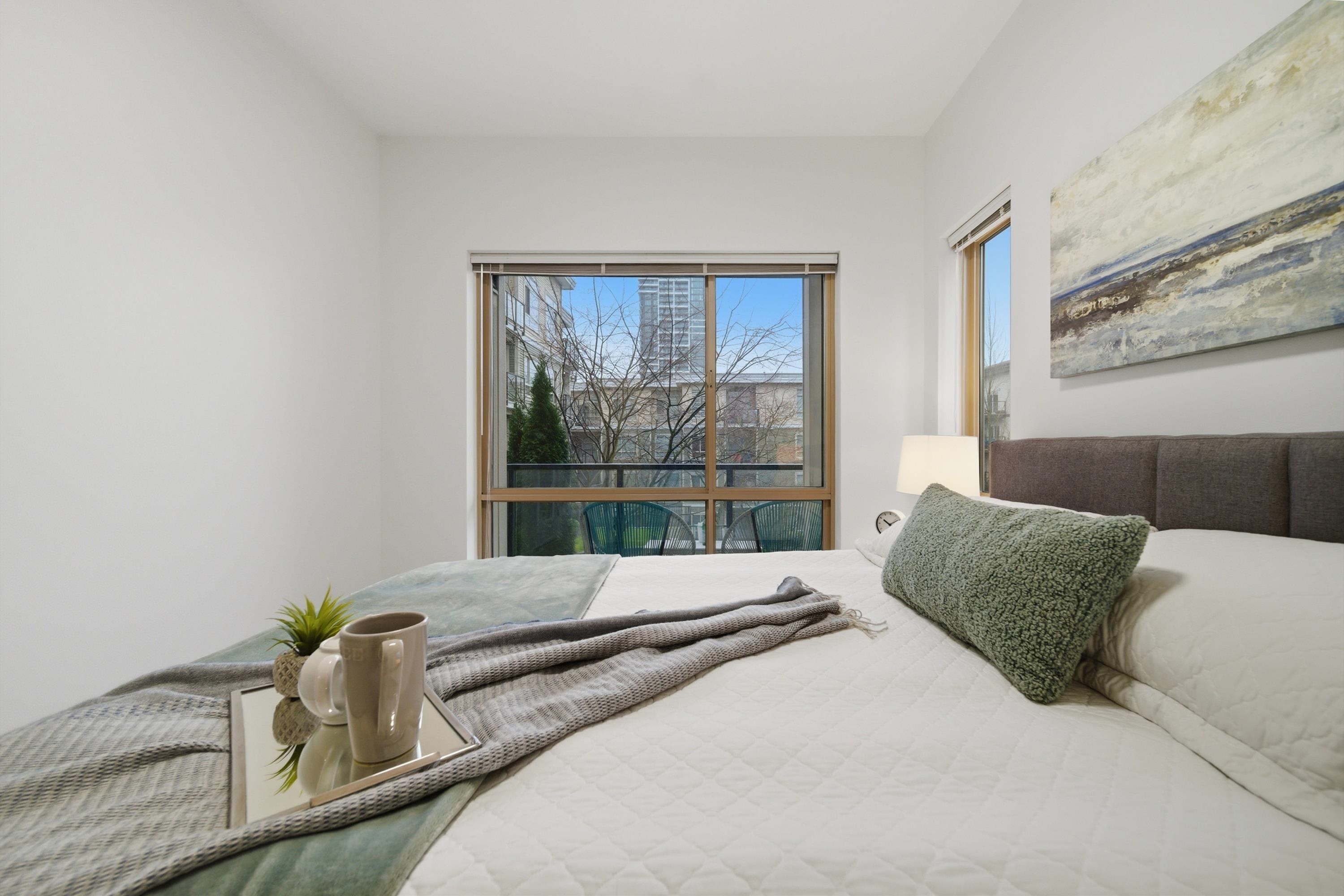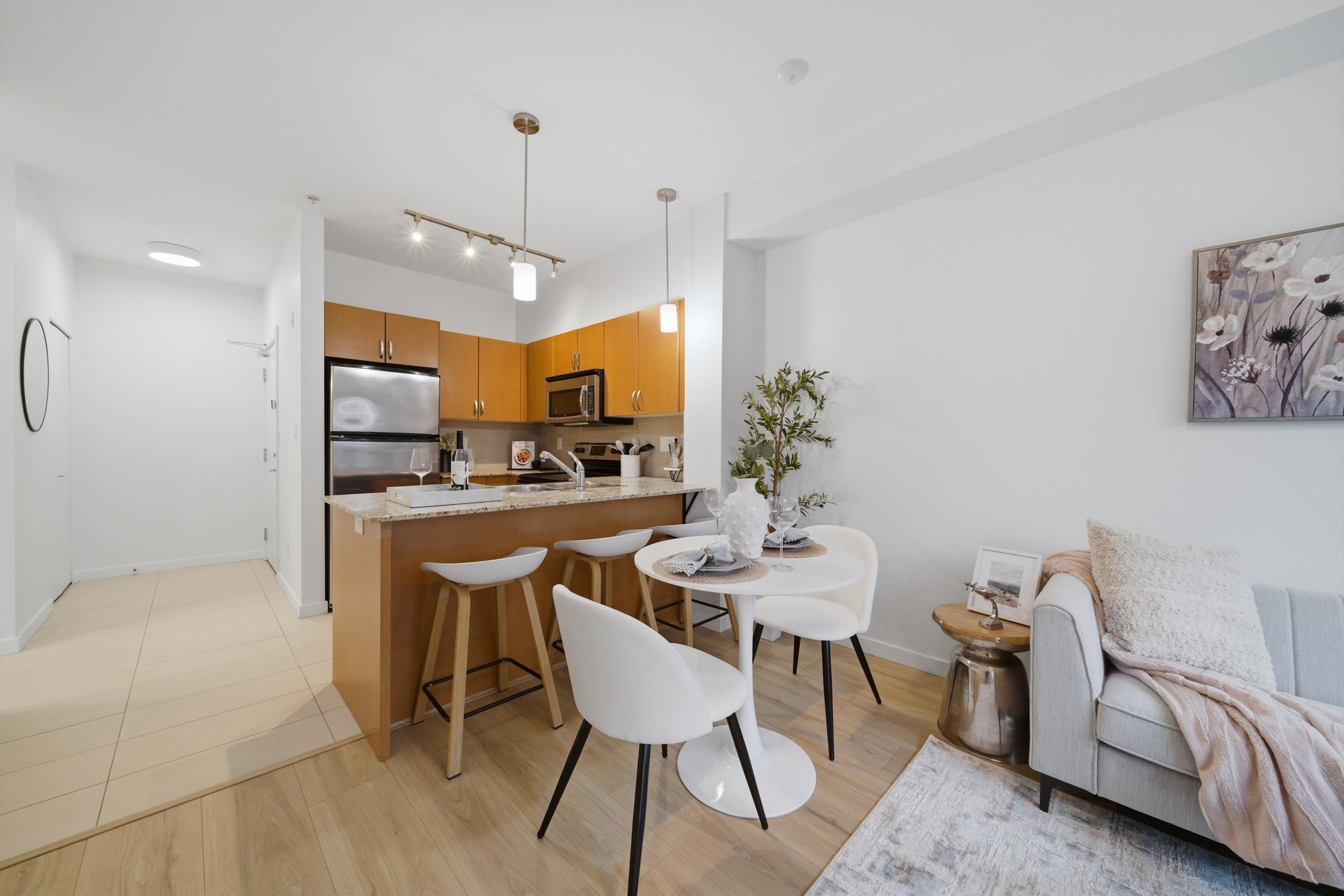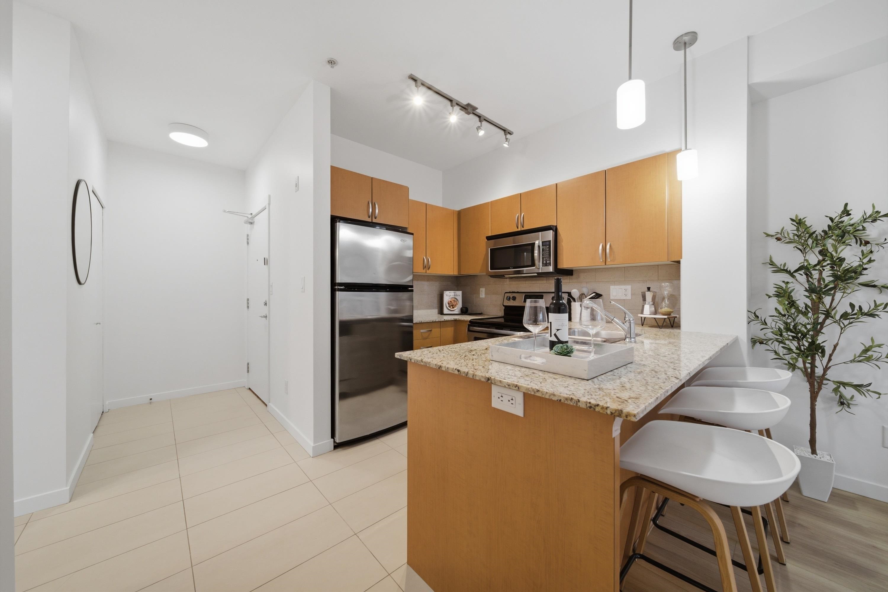 Rarely available bright corner unit over 500 sqft w/ exceptional privacy&functional layout. This well-maintained 1-bedroom features 3 extra windows bringing in abundant natural light w/ quiet courtyard views. Conveniently located beside the stairwell for quick access while maintaining privacy w/ no direct neighbours on one side. Includes 3 underground parking stalls (2 tandem) + storage locker, a rare bonus in this area. Recent updates: new water-resistant laminate flooring in living room & bedroom, fresh f...