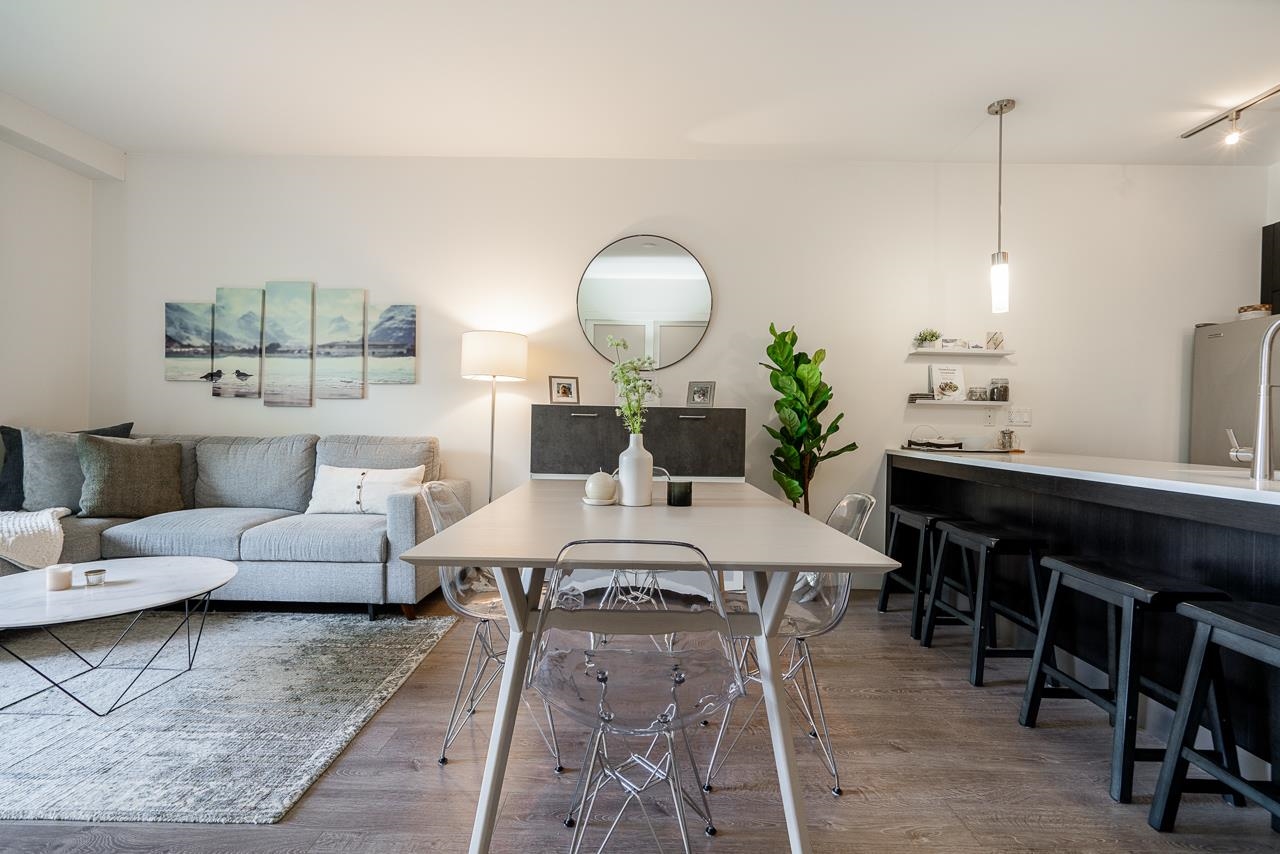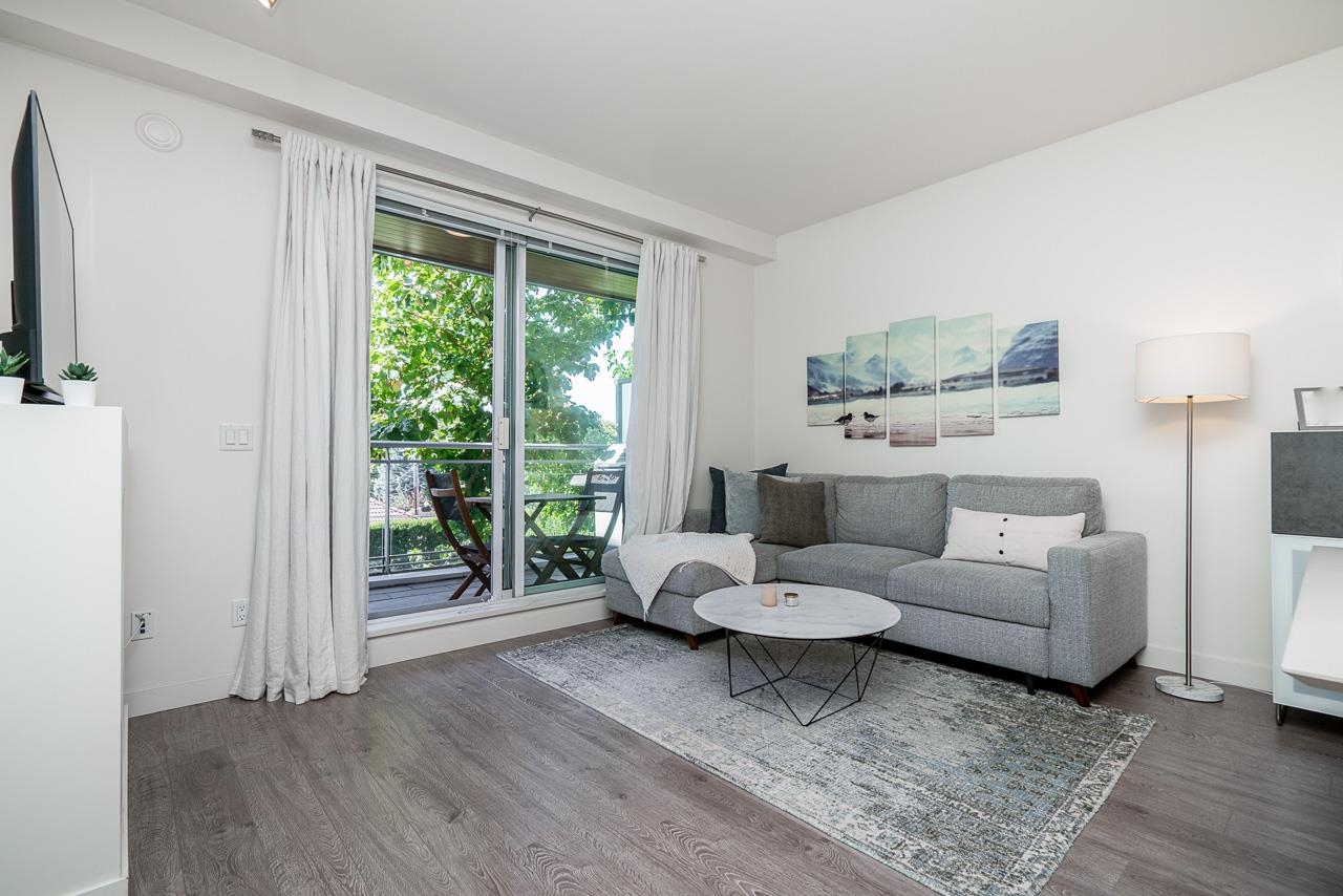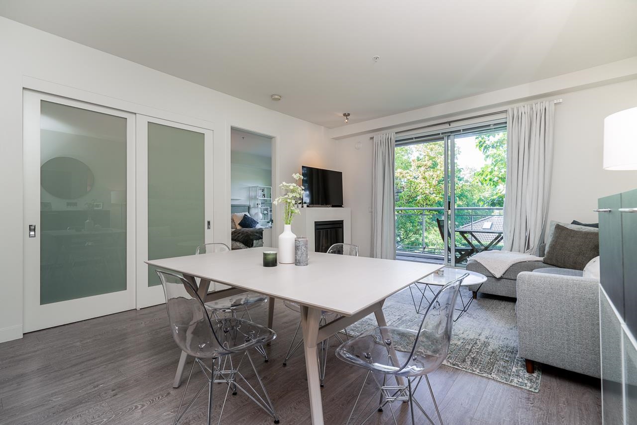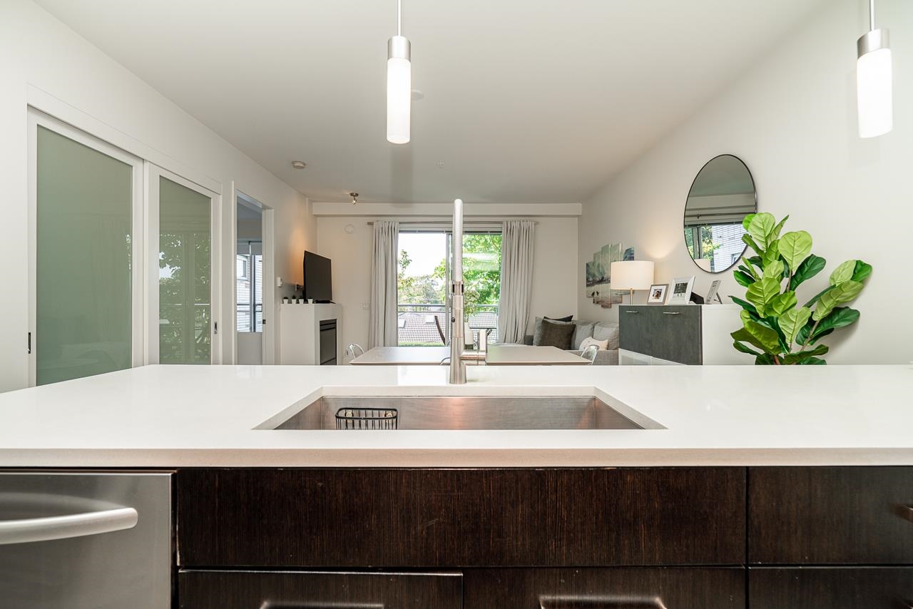 AN ABSOLUTE MUST SEE! A Rare Opportunity to own in one of the Newer Buildings in one of Vancouver's Most Desired Neighbourhoods. This immaculately kept, one bedroom & den is situated on the quiet side of the building & offers a peaceful and completely private setting with west-facing exposure & mountain views. Open-concept living includes an entertainers kitchen with huge island & a conveniently located den that could be used as storage or office. Features include: 9' over-height ceilings, updated flooring...