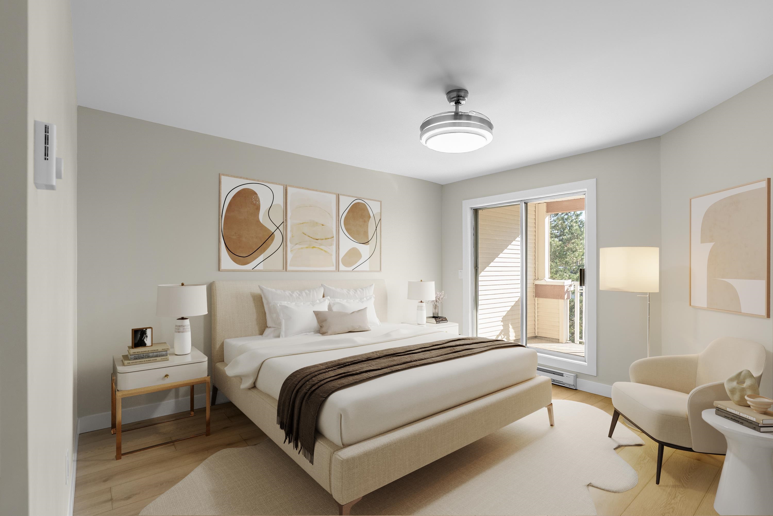 COLONY BAY – Feels like moving into a brand-new condo! Beautifully updated (2025) and well-maintained 805 sq. ft. 1-bedroom home in a prime location. Modern kitchen with quartz countertops, tiled backsplash, ample storage, and newer appliances opens to bright, open-concept living and dining areas. Enjoy a cozy gas fireplace, large windows with a peaceful outlook, and new laminate flooring throughout. Tastefully renovated bathroom with contemporary vanity, fixtures, and quartz counters. Proactive strata with...