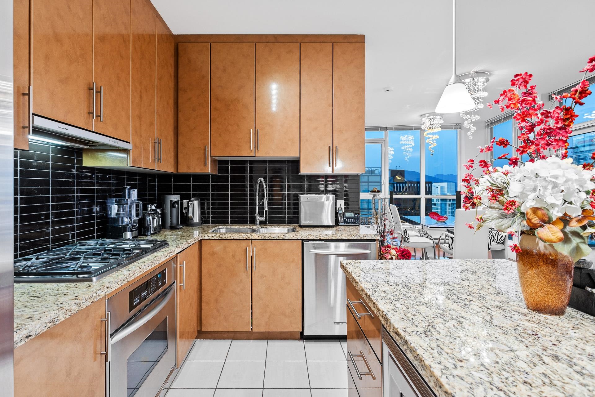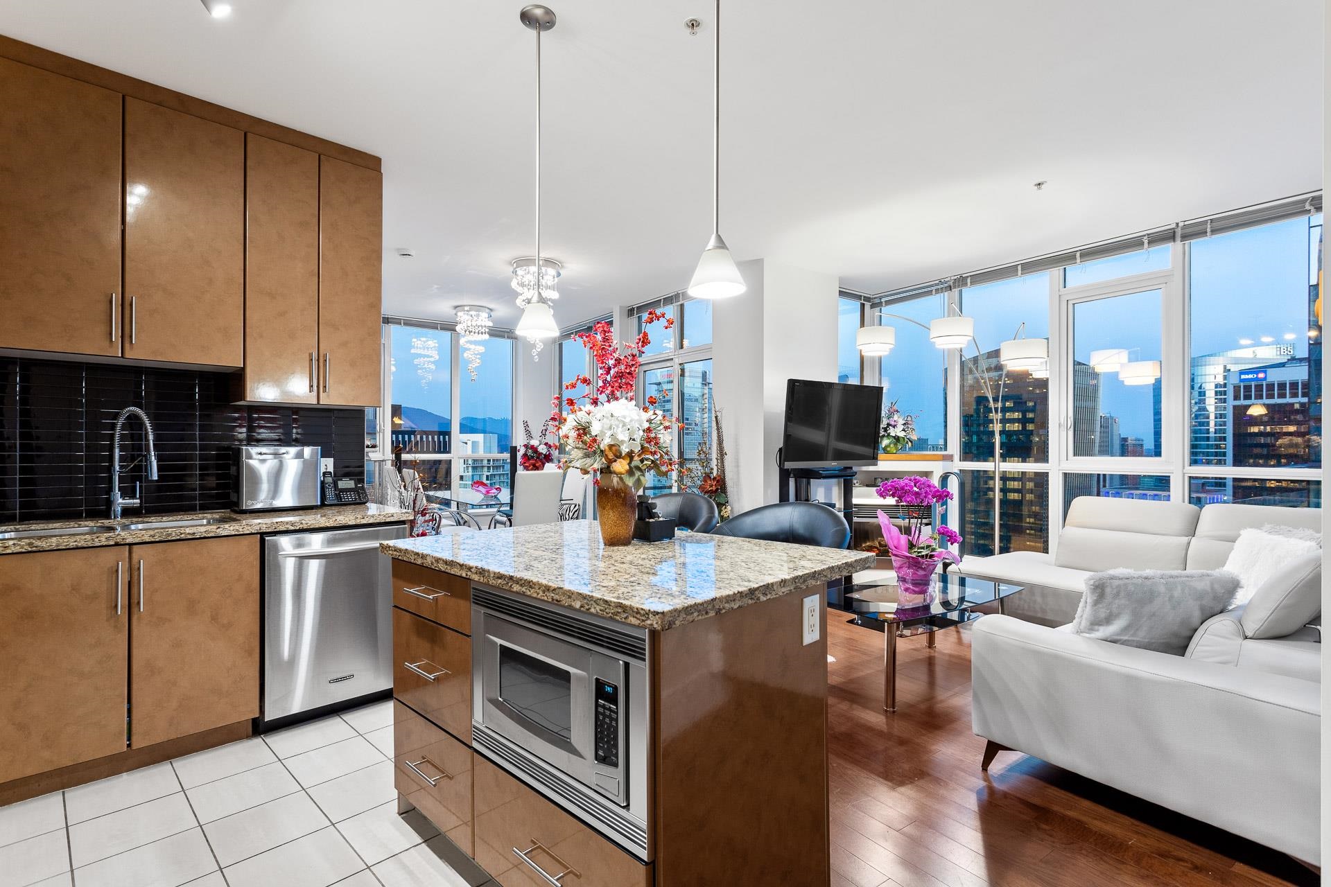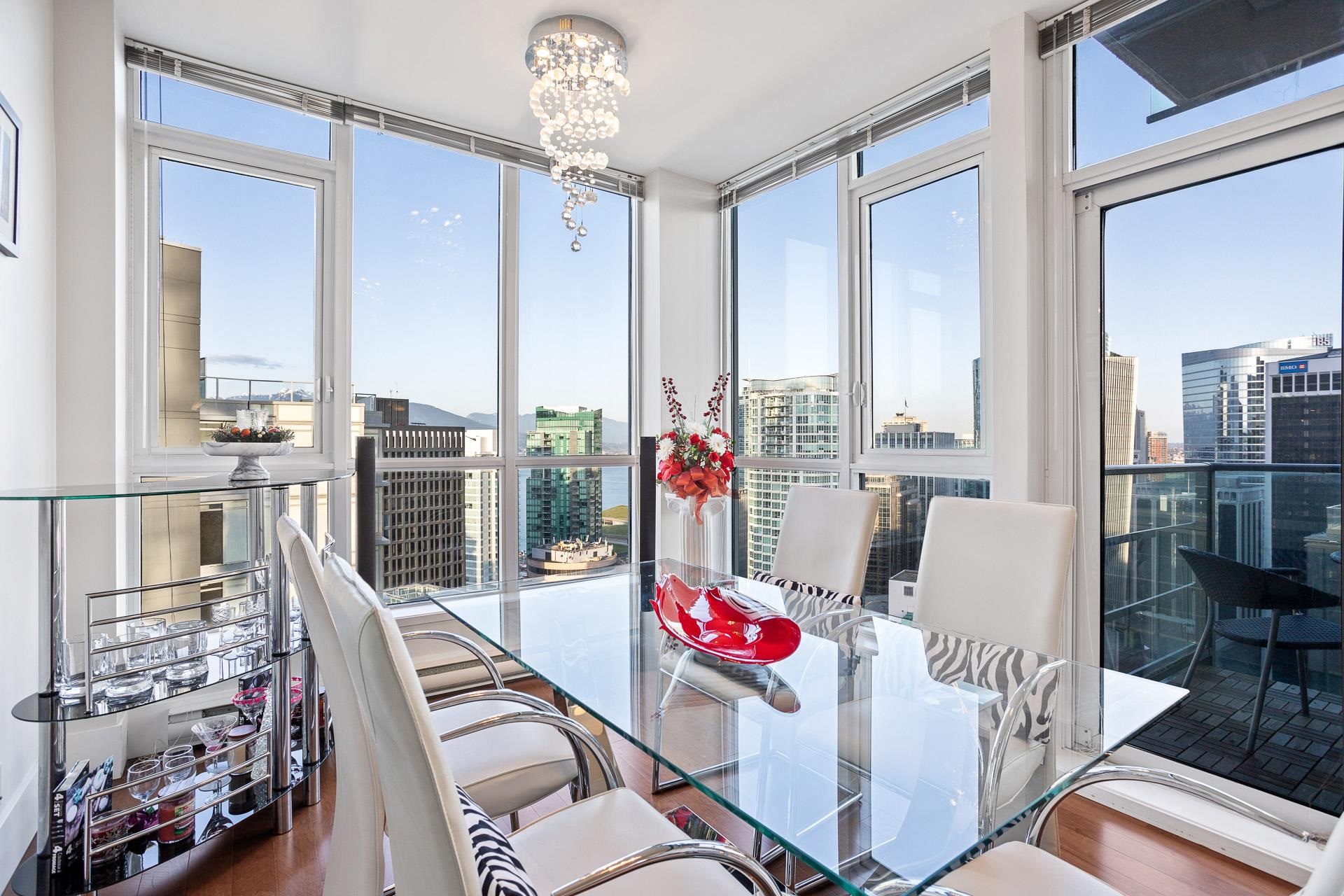 Amazing Coal Harbour living in the highly sought after building “The Melville”. This executive super well maintained 2 Bed/2 Bath upper floor corner unit offers over-height ceilings w/modern city & ocean views from the floor to ceilings windows & covered balcony. Large gourmet kitchen with tons of cabinets, stainless steel KitchenAid appliances with gas range & island with breakfast bar seating. Enjoy the convenience of an in-suite storage room & an additional underground storage. One of only a few resident...