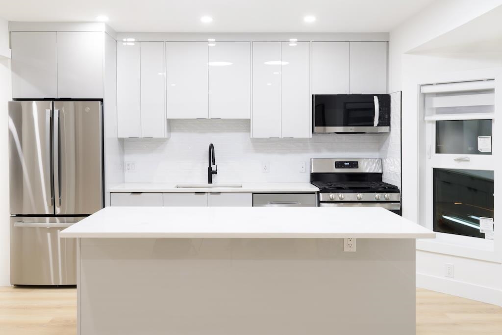 BRAND NEW, centrally located 3 bed, 2 bath, Air Conditioned single-level home on the main floor of an exclusive 4-unit complex. NO Strata Fees! Blends heritage charm with modern living. Efficient layout (no wasted space on stairs!), ideal for aging in place, with an open plan, 9' ceilings, abundant windows, and natural light. Stylish kitchen boasts SS appliances, quartz counters, and perfectly located island. Elegant bay window with wrap-around views. Spacious bedrooms with organized closets; primary featur...