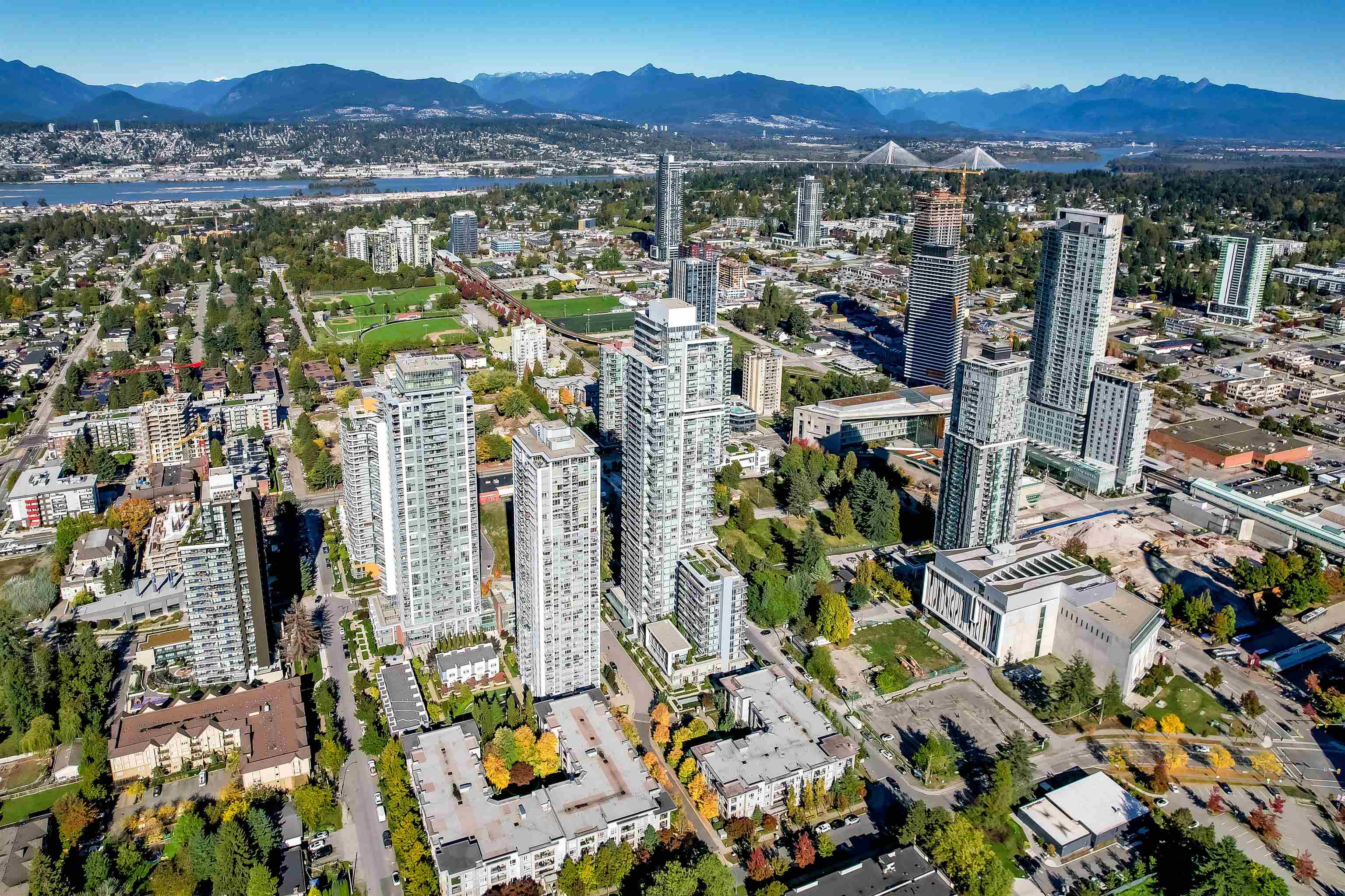 Welcome to One Central! Priced below BC Assessment! This stunning 2-bedroom, 2-bath corner unit includes 1 parking stall and a bike locker. Enjoy a bright, open layout with floor-to-ceiling windows, quartz countertops, stainless steel appliances, and a rare wraparound balcony showcasing 270° city and mountain views. Amenities feature a 44th-floor Sky Lounge, rooftop garden, gym, yoga studio, co-working space, dog park, and 24-hour concierge. Steps to SkyTrain, SFU, Central City Mall, restaurants, and Hollan...