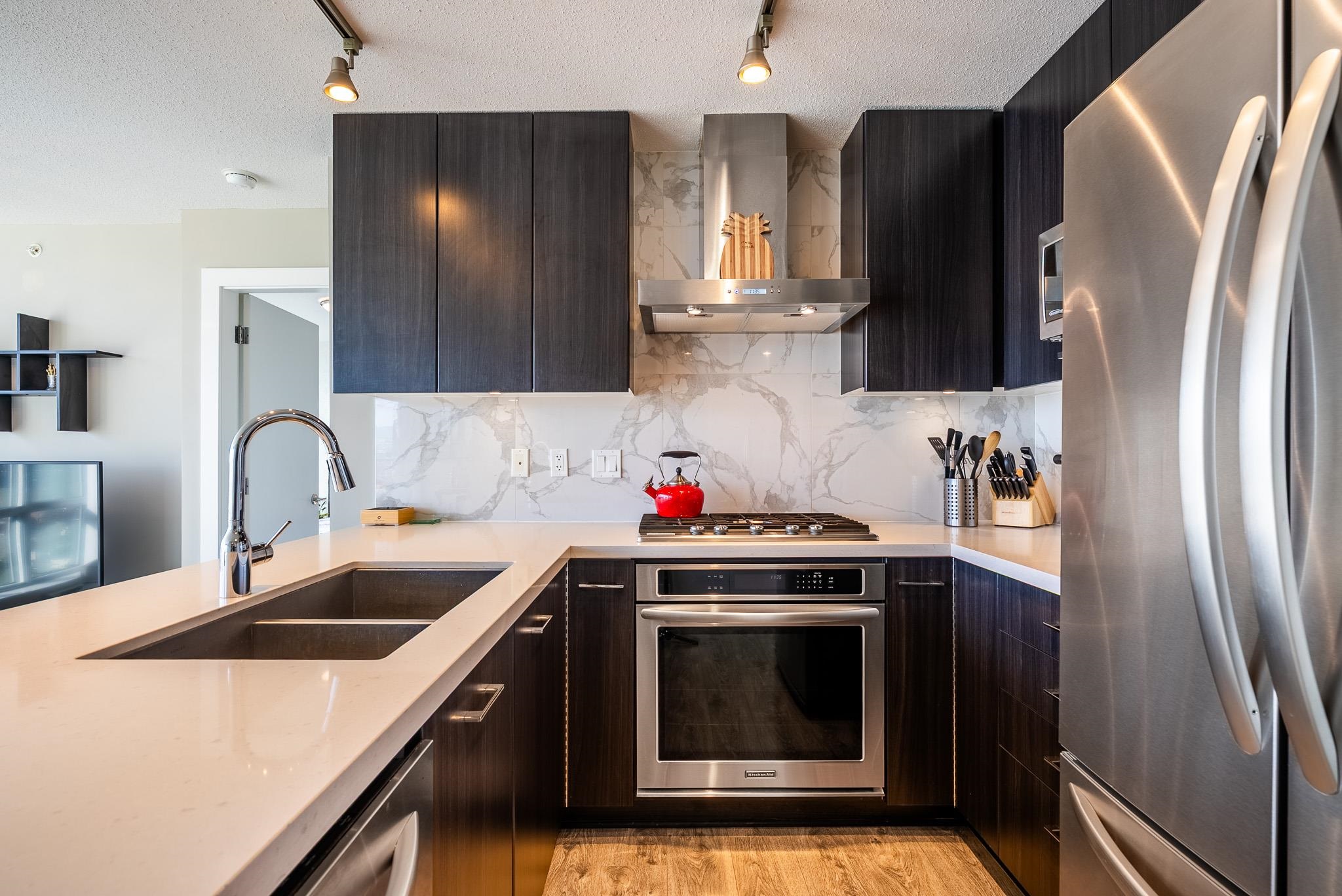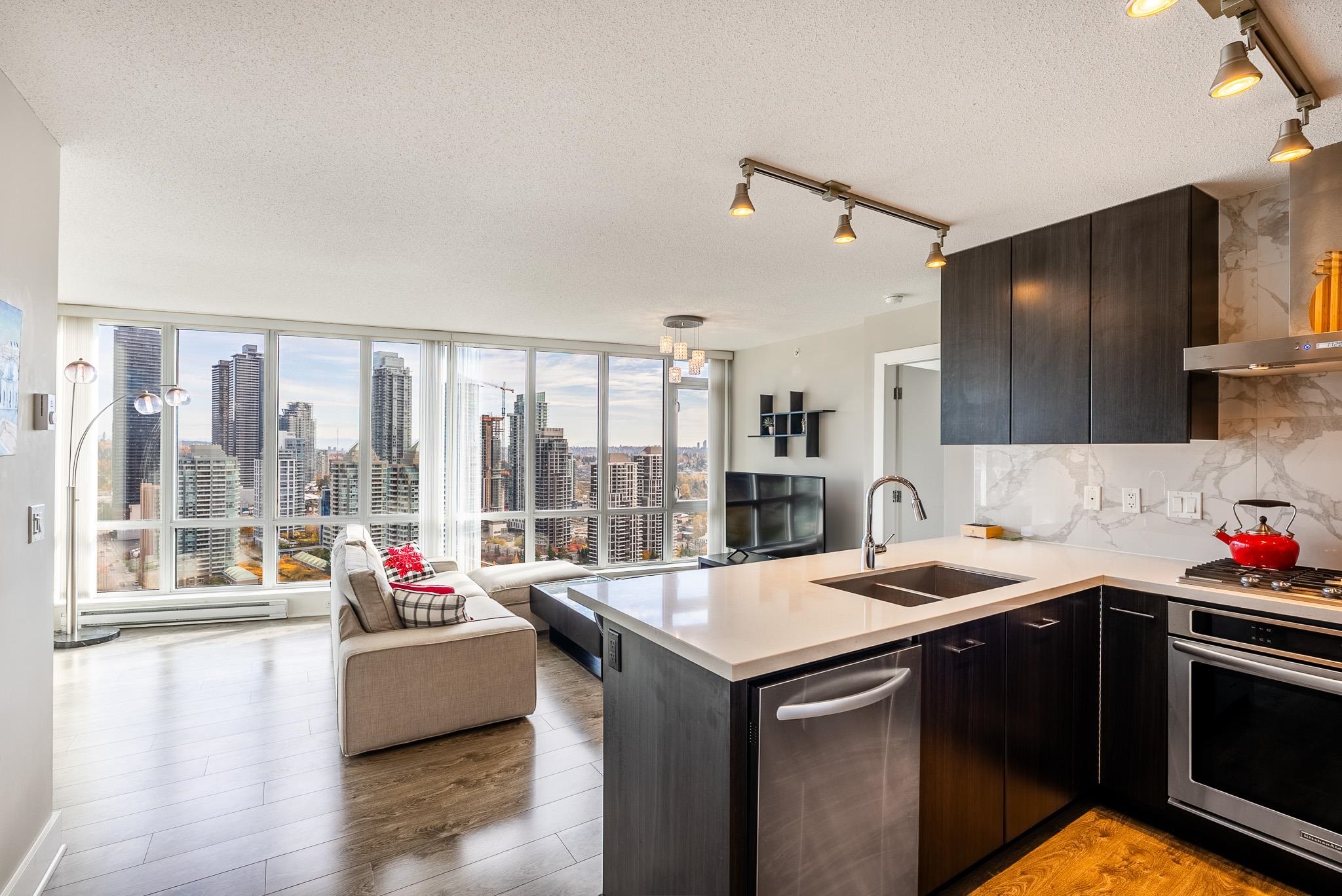 Live above it all at Aviara by Ledingham McAllister. This beautifully maintained 2-bedroom, 2-bathroom home offers an east-facing exposure with stunning morning light and a 33rd-floor outlook. The open-concept layout features a sleek kitchen and well-separated bedrooms for added privacy, while the balcony provides a peaceful space to take in panoramic city views. Ideally situated just steps from The Amazing Brentwood, the new T&T Supermarket, Gilmore Station, Kitchener Elementary School, community centre, p...