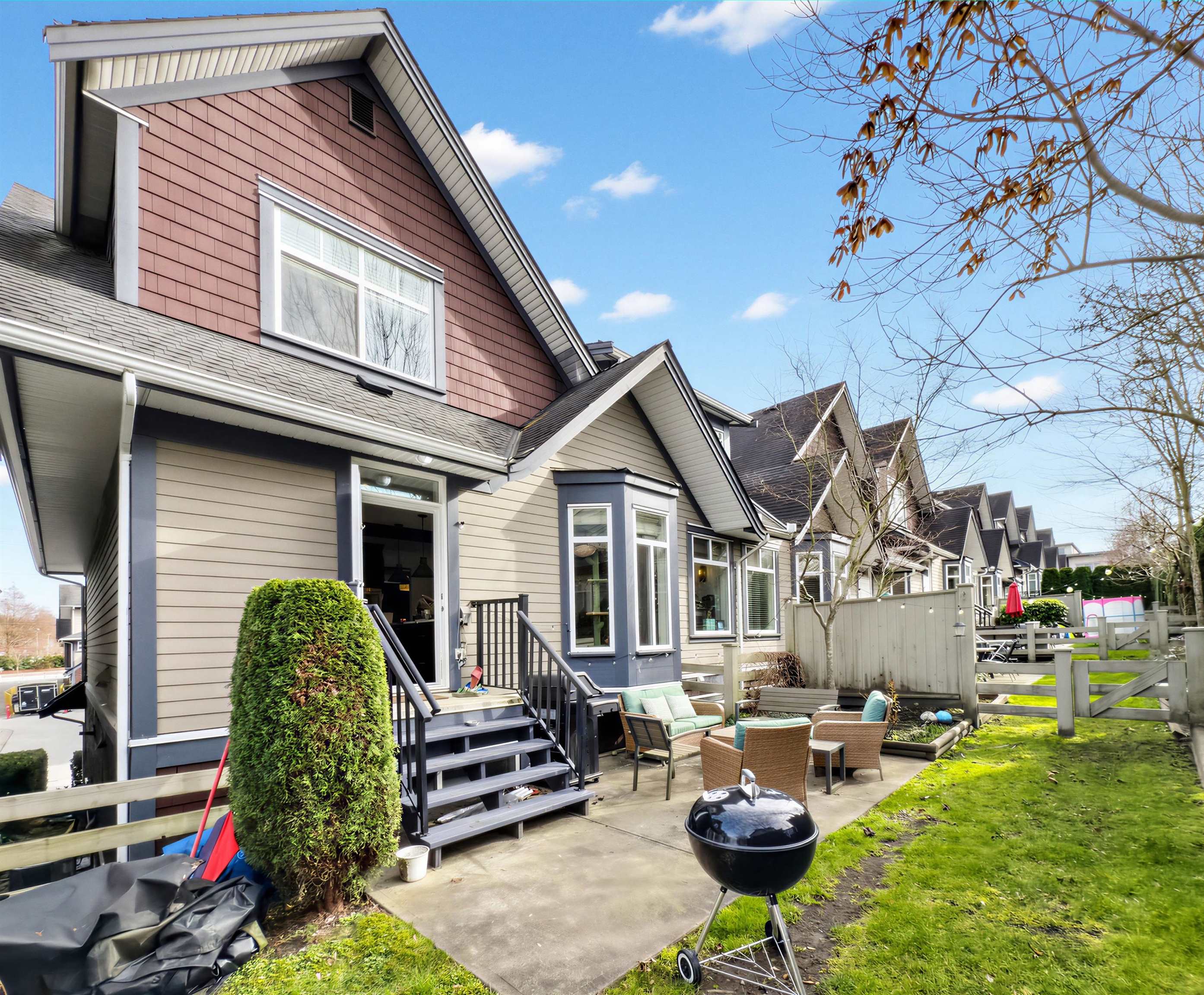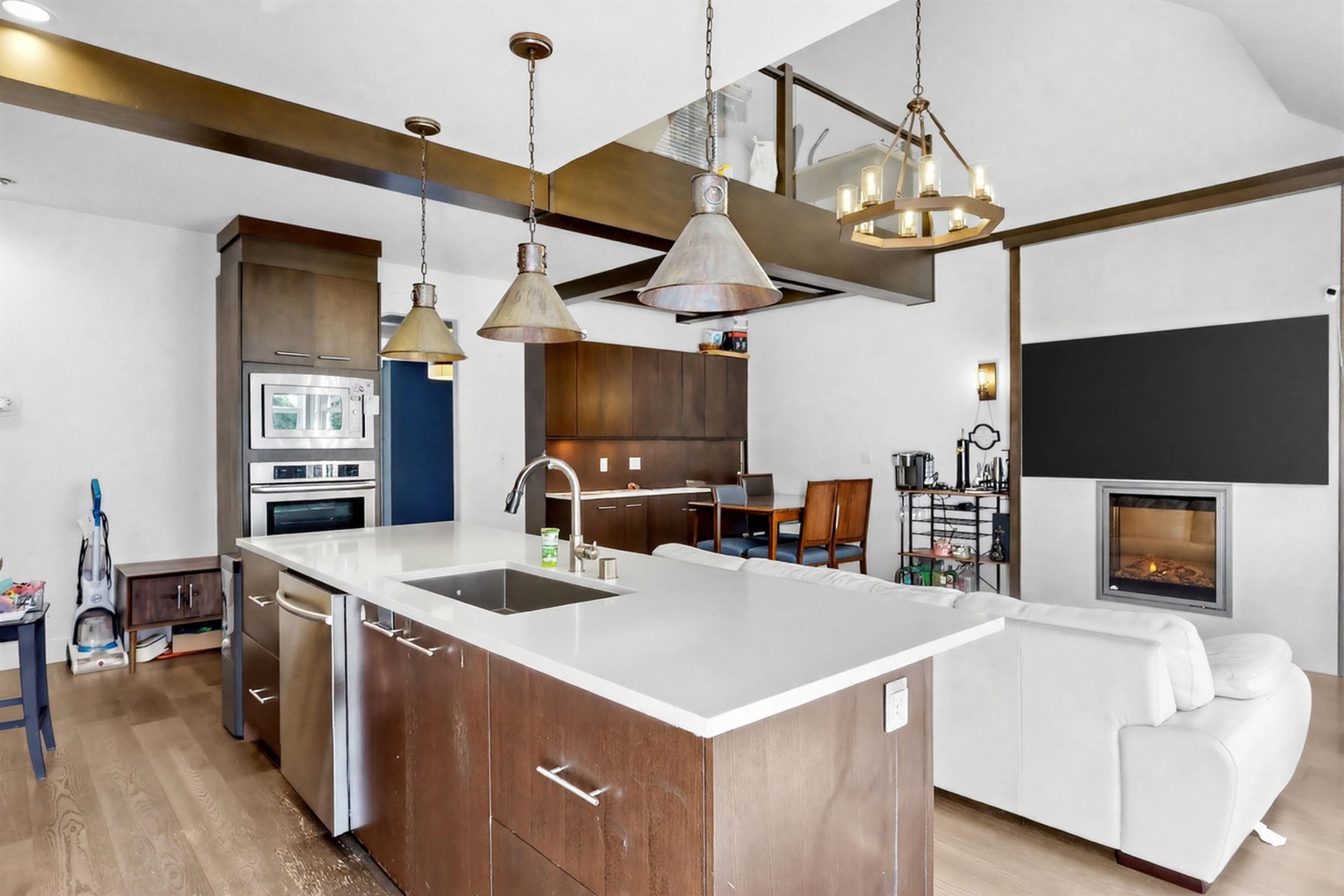 You have it all in this spacious 5-bedroom, 4-bathroom duplex-style townhome offering over 2,300 sq ft of versatile living space. The main floor boasts a generous primary bedroom with a luxurious ensuite, soaring vaulted ceilings in the living room, and a cozy fireplace that creates the feel of a detached home. The high-end kitchen seamlessly connects to the backyard, perfect for entertaining and everyday living. Enjoy year-round comfort with built-in air conditioning. Upstairs offers three additional bedro...
