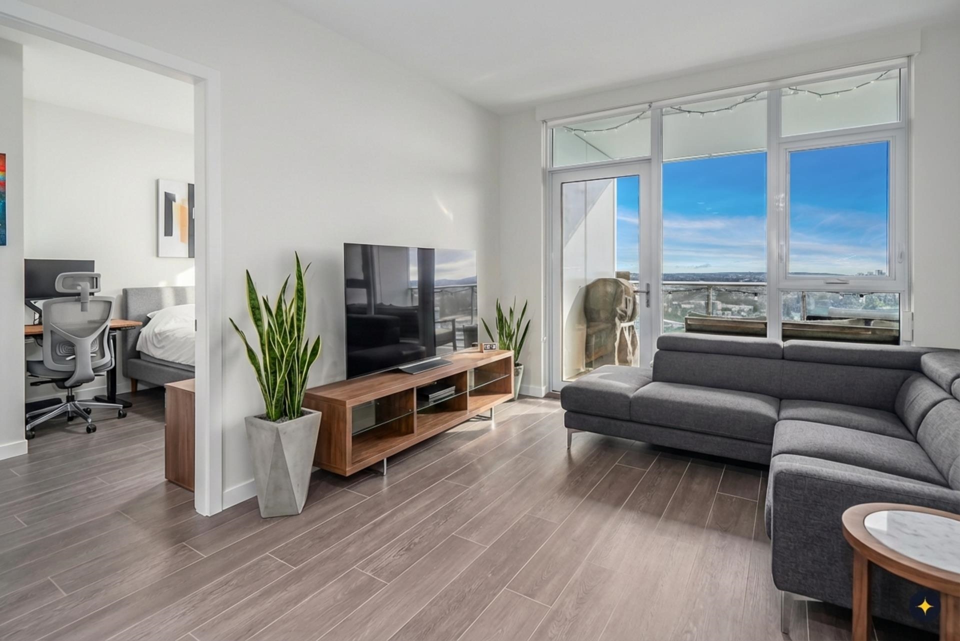 WELCOME TO T1 AT GILMORE PLACE BY ONNI, ideally located in the heart of Brentwood and directly connected to the newly renovated Gilmore SkyTrain Stn, with a future T&T Supermarket coming to the podium below. Perched on the 35th flr, this west-facing 2-bed, 1-bath home offers 707 sq.ft. of efficient living space and stunning city views. The spacious primary bdrm features a w/i closet, while the 2nd bdrm incl A/C, HRV, and a closet (no window). Comfort is ensured year-round with A/C throughout. 1 parking stal...