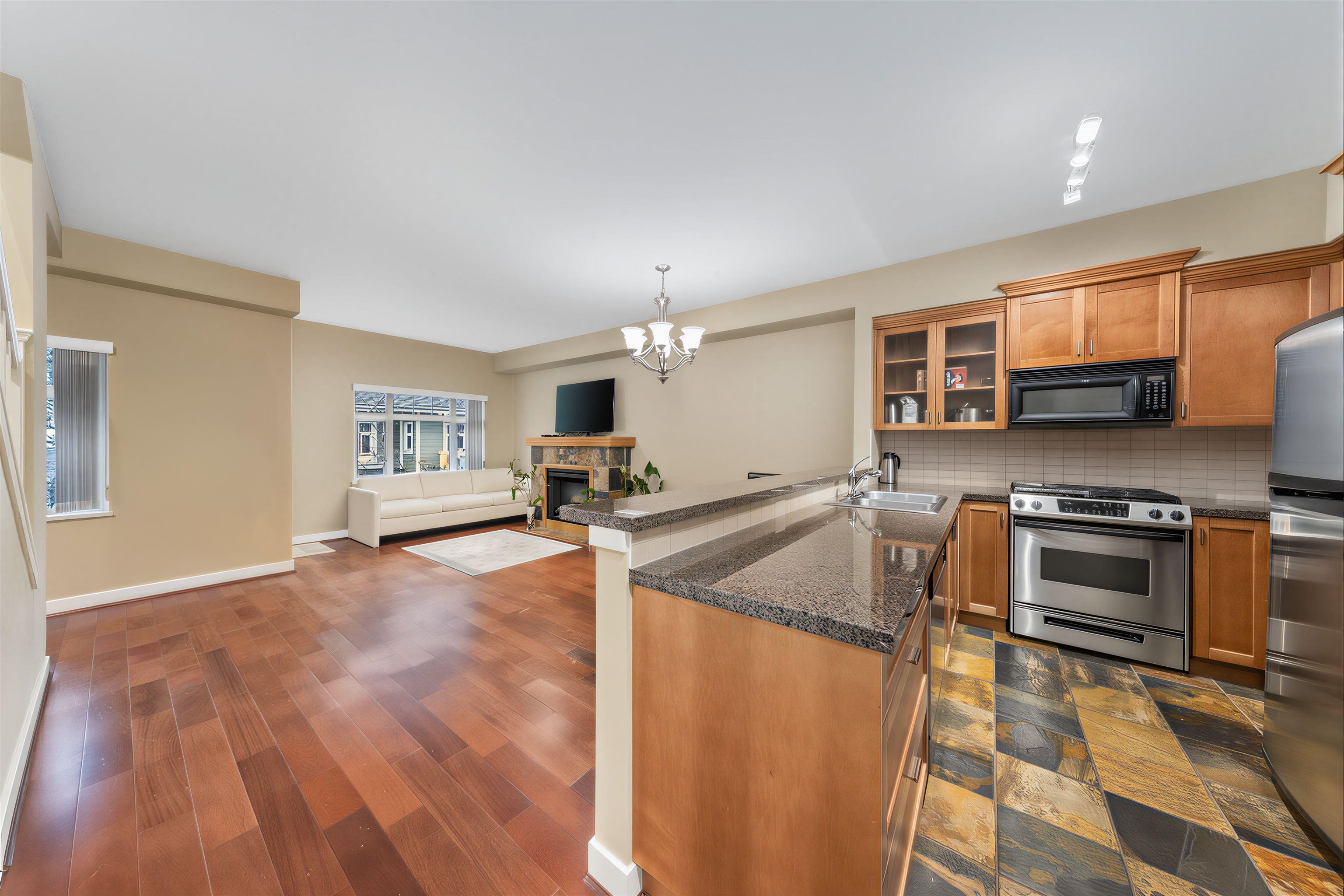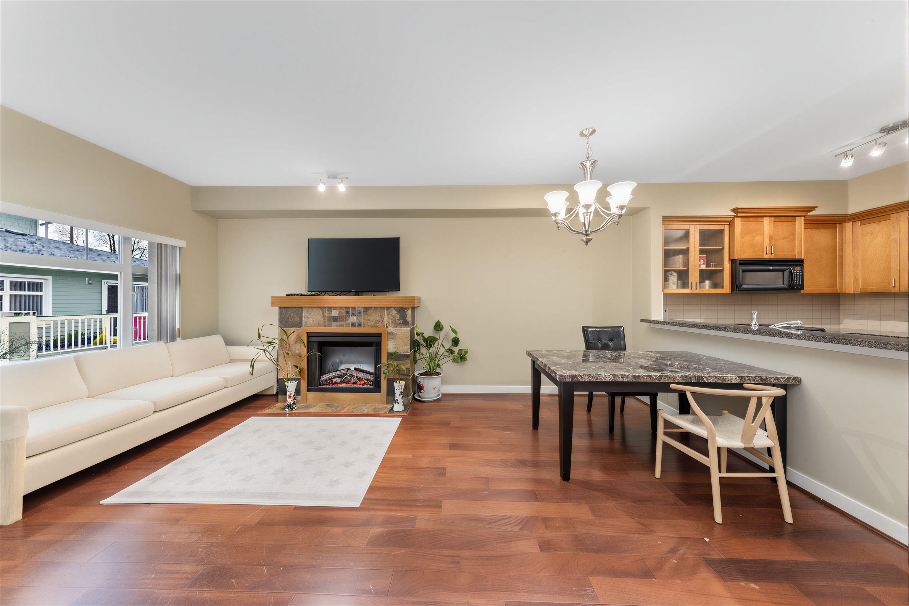 Welcome to Acacia Gardens, a charming and well cared for community in South Burnaby. This bright and inviting 2 bedroom, 2 bathroom above-ground level townhouse is the perfect place to call home. Featuring 9 FOOT HEIGH ceilings, ample storage, and a functional open layout, the space feels both spacious and cozy. Step outside to your private patio and enjoy the quiet surroundings of this friendly complex. Residents enjoy great amenities including a playground, fitness center, bike room, car wash area, and E...