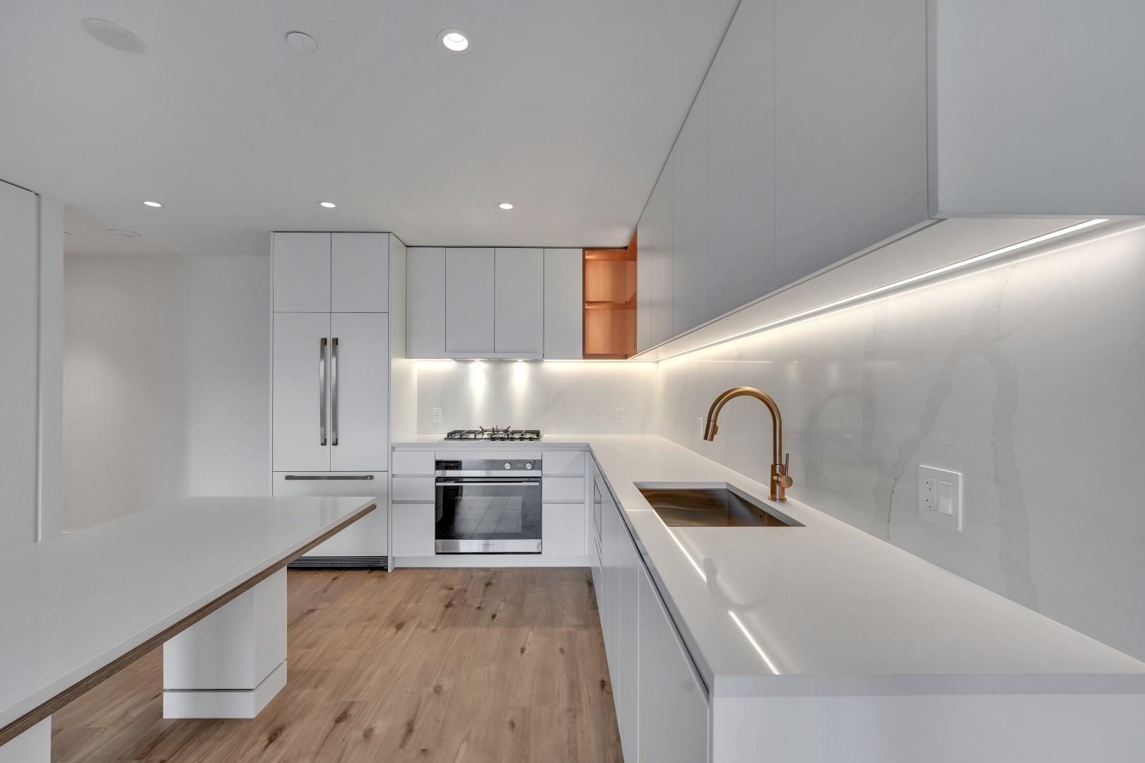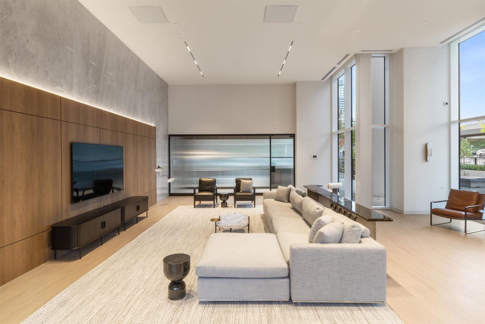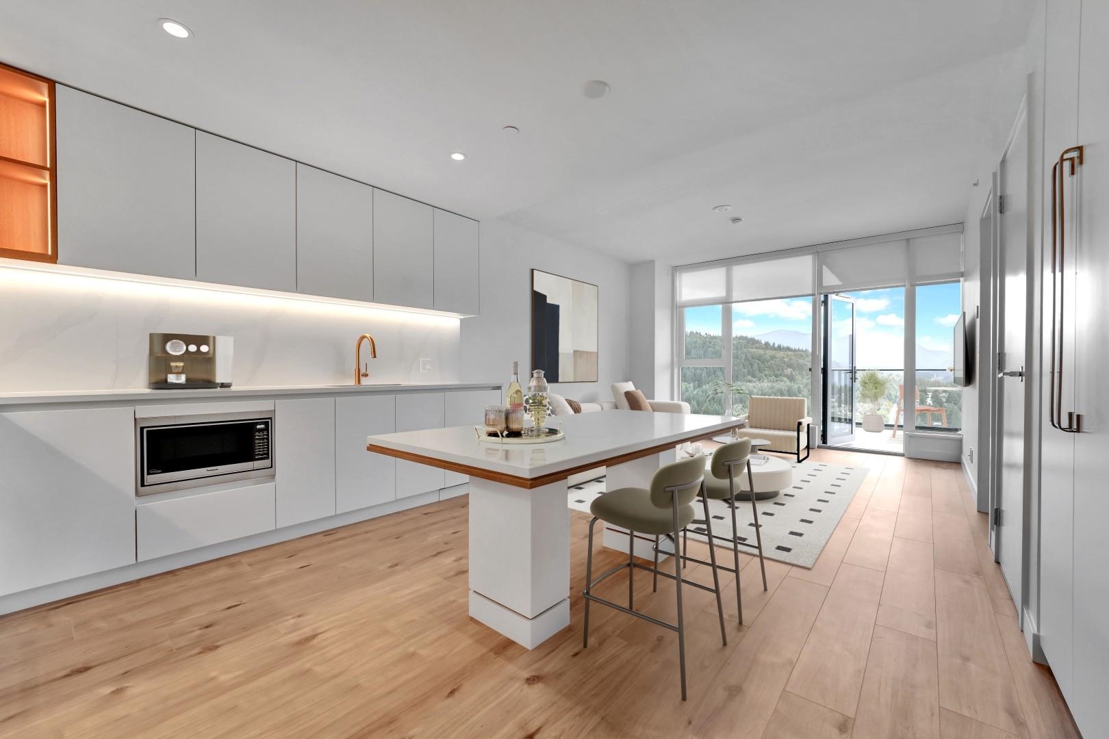 Discover the Boffo difference at Smith & Farrow, Coquitlam's new standard for refined living. This elegant 1-bedroom home features 9' ceilings, A/C, and floor-to-ceiling windows that fill the space with natural light. The chef-inspired kitchen showcases custom cabinetry, integrated Fisher & Paykel appliances, quartz countertops, and a waterfall island. Enjoy a spacious covered balcony for year-round entertaining and access to resort-style amenities-including an outdoor pool, hot tub, sauna/steam rooms, fitn...