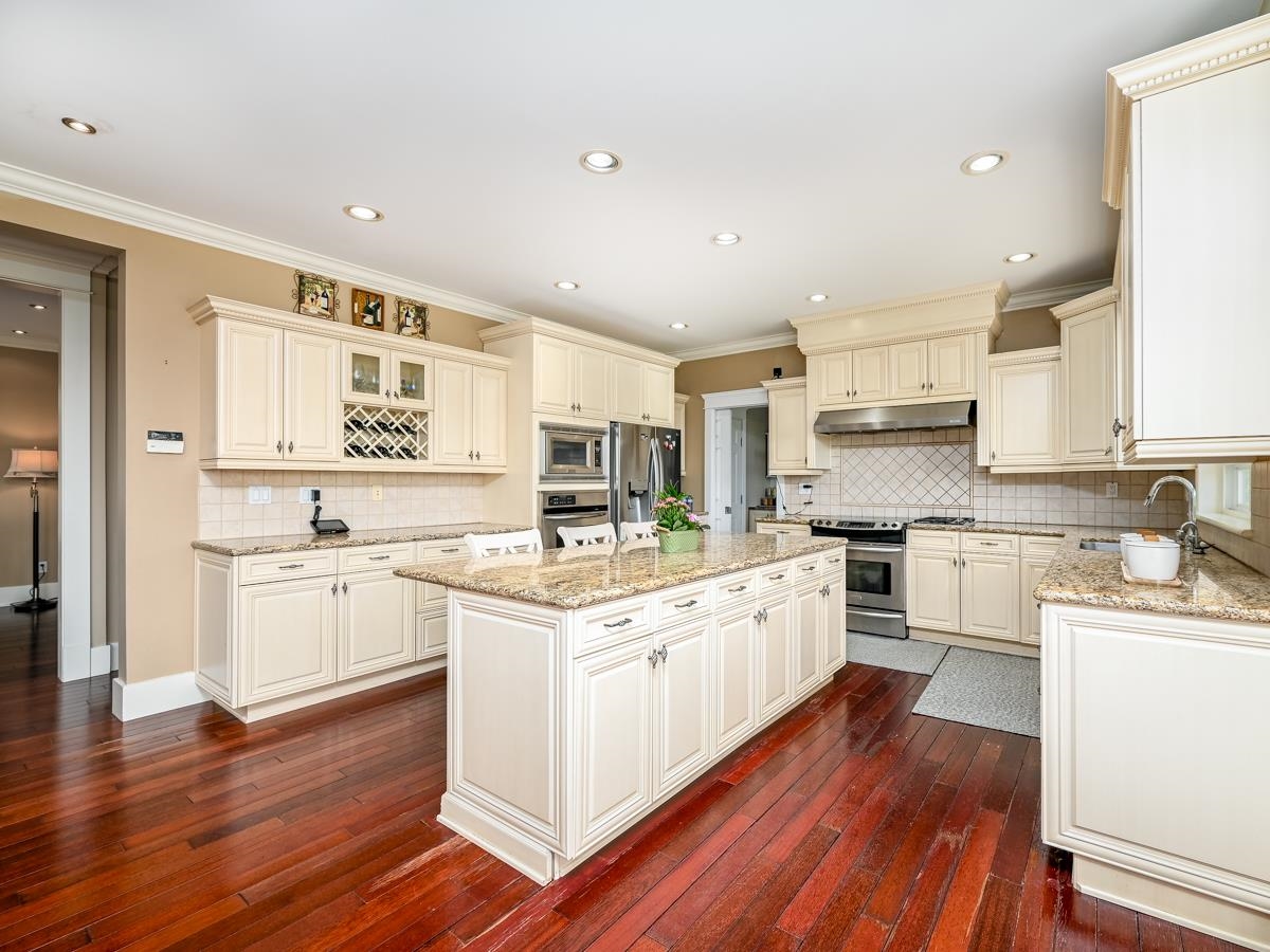 --WOW!!!$912,000 below BC assessment.--- Rarely found luxury 5905 sf home on 40554 sf lot , Huge yard with 180 degree mountain view in beautiful Morgan Creek community. SENSATIONAL SWEEPING PANORAMIC MOUNTAIN & PASTORAL VIEWS from large decks, patios, balconies and huge floor-ceiling view windows and kitchen! Stunning custom quality built 2 level & walkout daylight bsmt. Gourmet kitchen and wok kitchen with big granite island & stainless appliances. 19’ & 9’ ceiling, Brand new hardwood floor on Main floor. ...