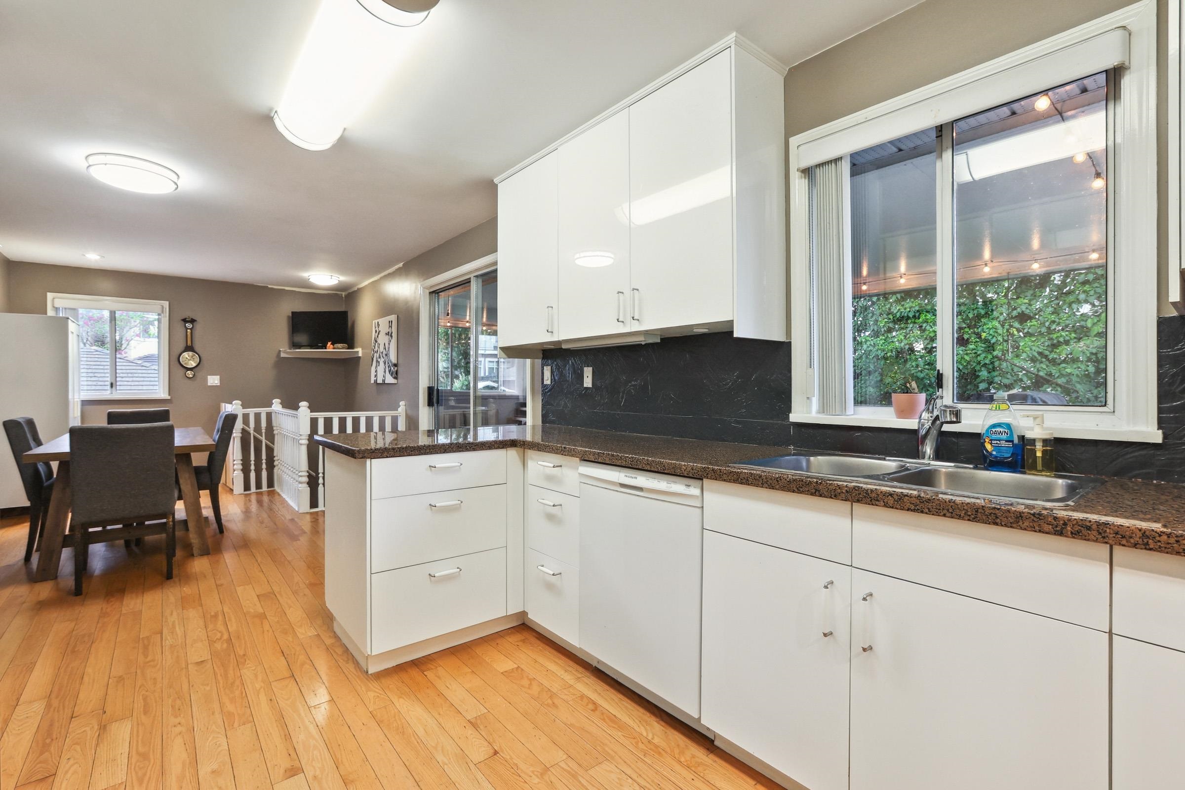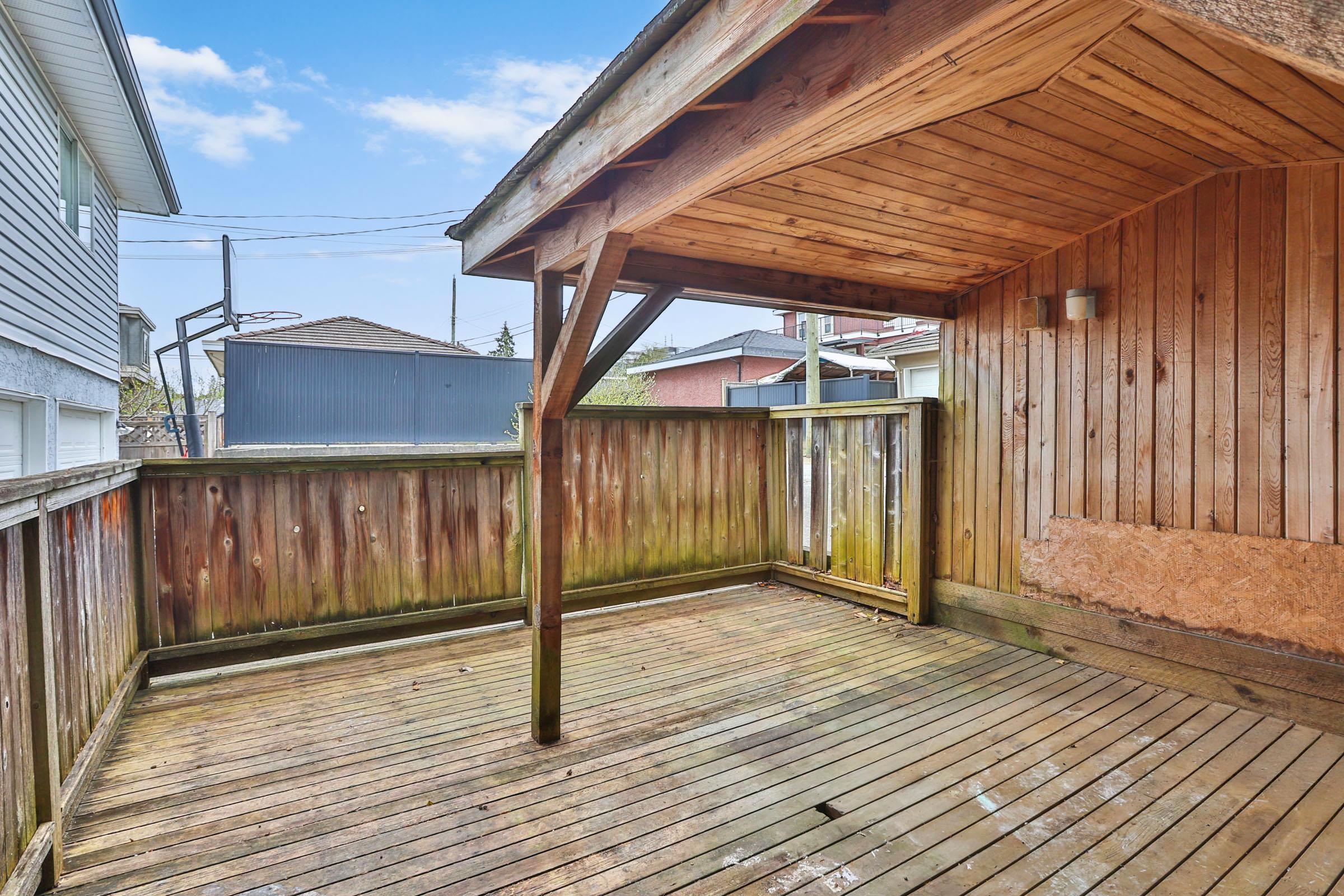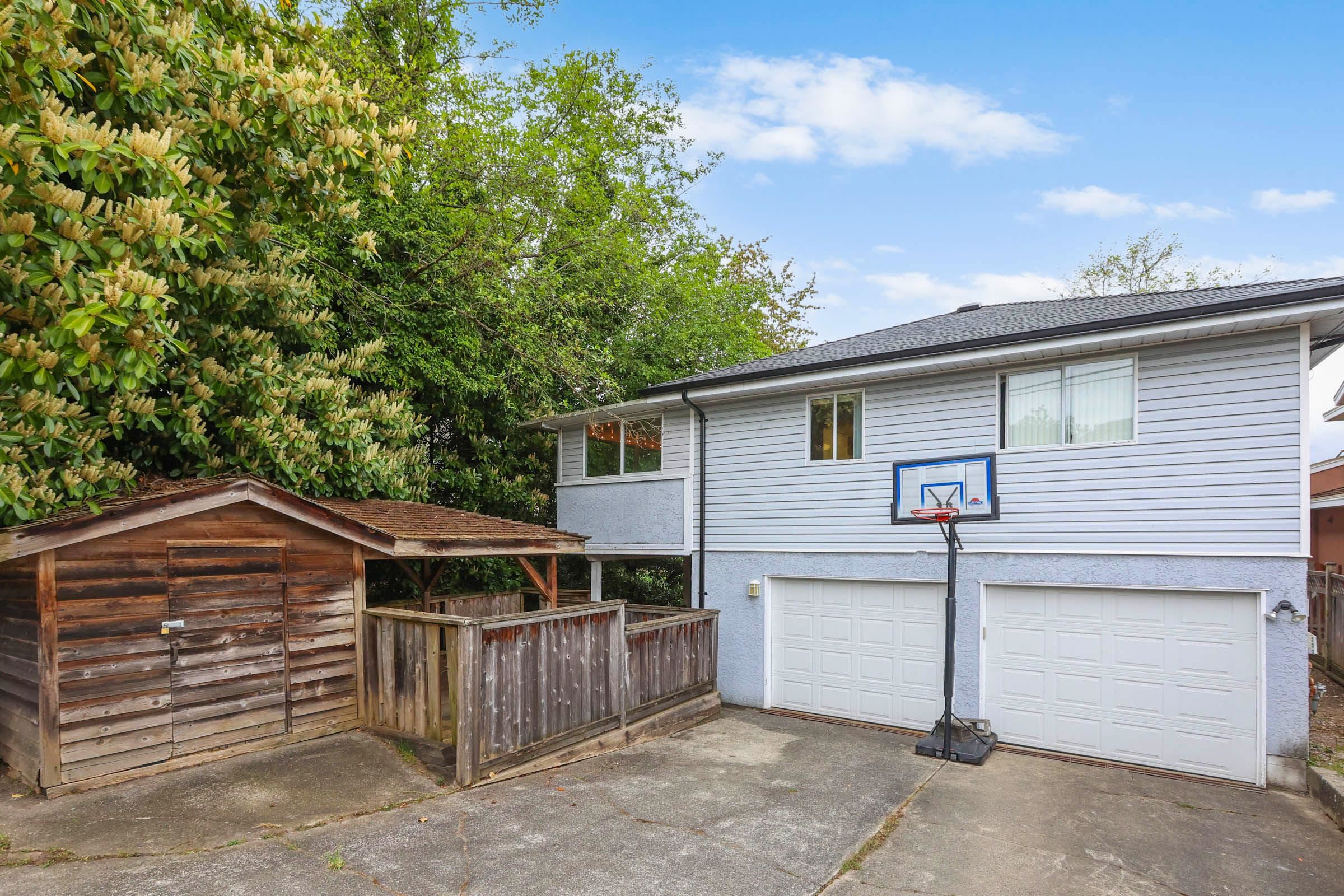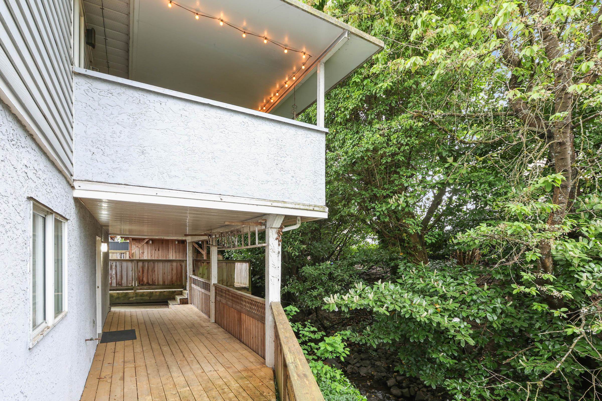 Listen to the creek in this great family home with 3 bedroom(possibly 4 bed, if dining room converted) on the main floor. Hardwood floors on the main. 2 laundries. Double drywall on the suite ceiling for extra sound proofing. Doors widen for wheel chair accessibility in the basement suite. Large PRIVATE covered balcony, BIG ground floor wooden patio and LARGE deck w/Gazebo. Shed in the back. Laneway leads to two car garage with two extra spots n the back. Underground sprinkler system. Short drive to Vancouv...