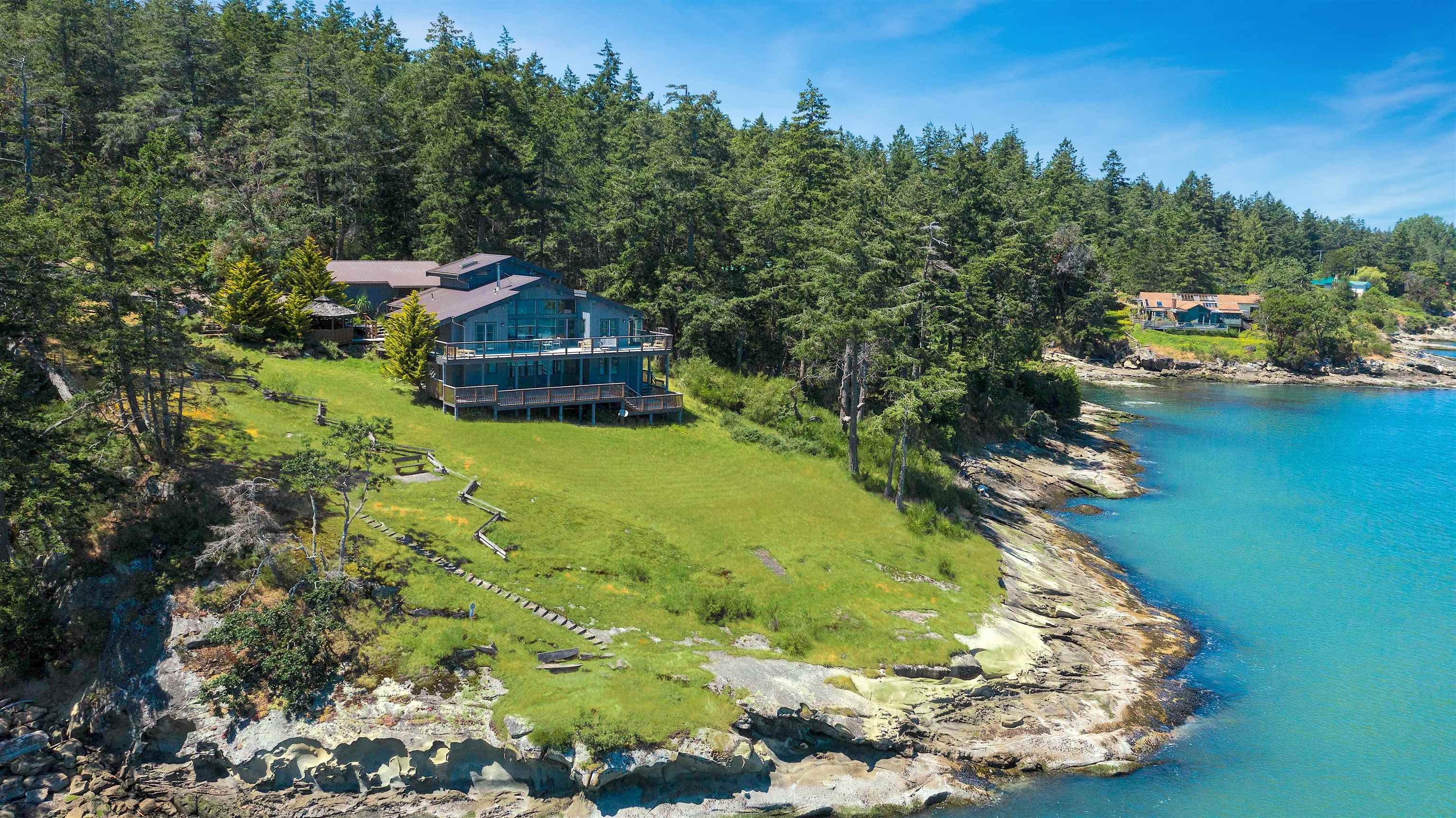 West Coast Beach House Experience the best of coastal living in this bright, east-facing oceanfront retreat. With 300+ ft of shoreline on Active Pass, it’s a prime whale-watching location! This Lindal cedar home features an open-plan design, vaulted ceilings, and exposed beams. With 5 beds, 4 baths, gourmet kitchen, sunroom, and loft, this property offers ocean views from most rooms. Enjoy seamless indoor-outdoor living with 1,000+ sqft of decks, natural landscaping, and a gazebo. A fully equipped guest su...