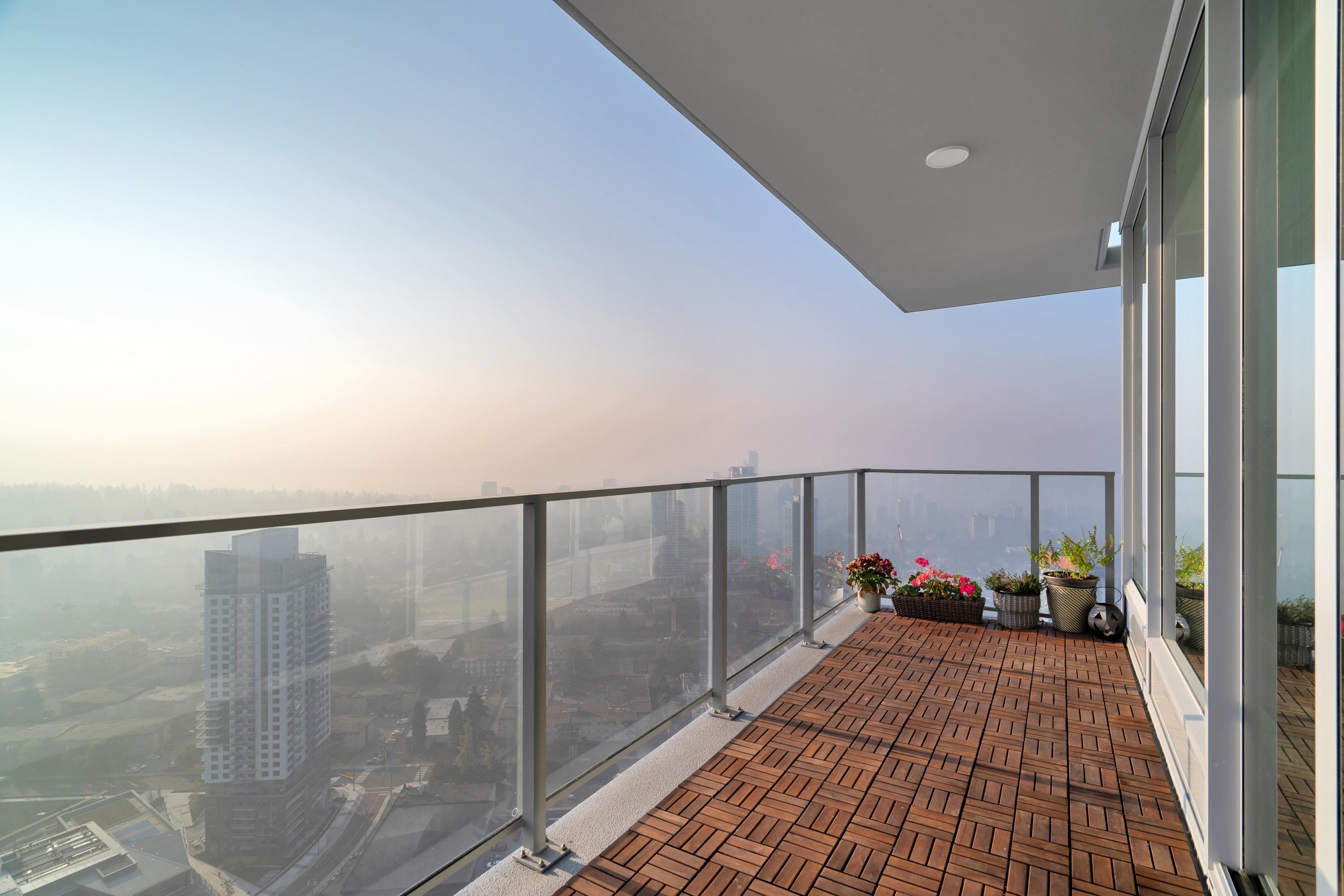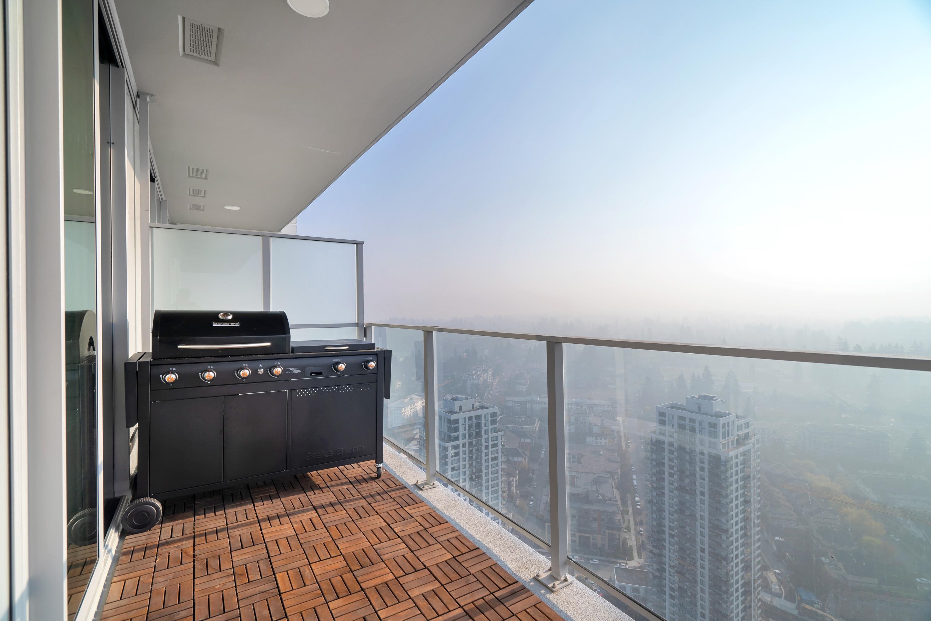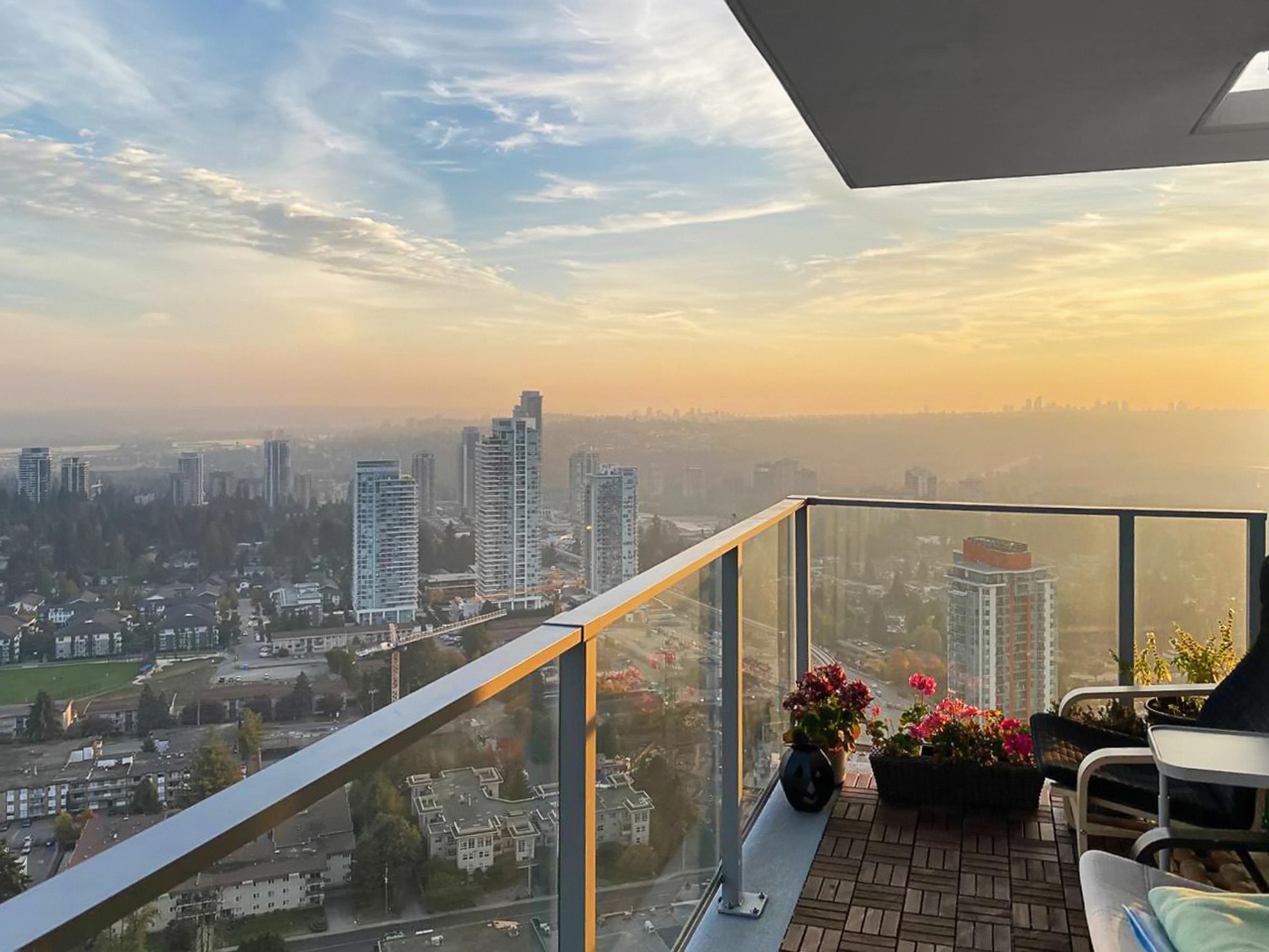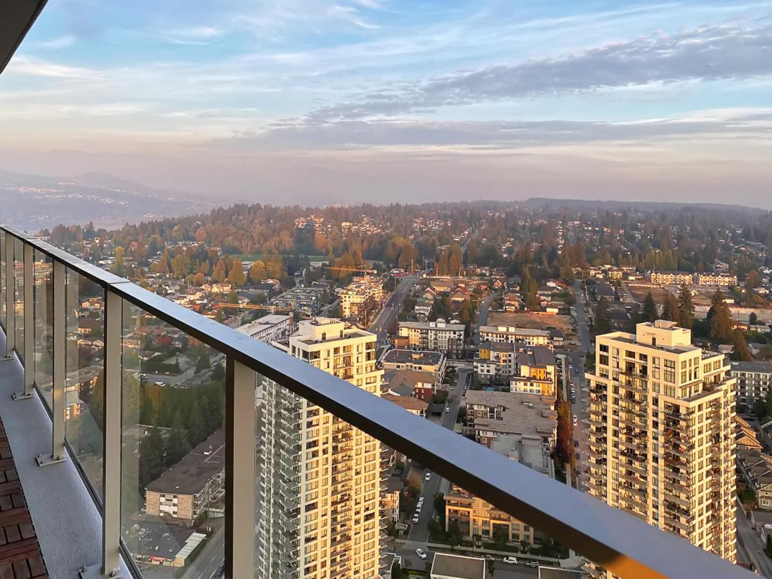 Welcome to the most luxurious building in Coquitlam - 567 CLARKE & COMO by Marcon. This 2BD+DEN, 2 BATH unit has an AMAZING view from the 38th floor. It ft. a gourmet kitchen w/gorgeous full-size appliances, custom cabinets, quartz countertops, 9 foot ceilings, A/C & generous balcony to enjoy the breathtaking views of the mountains & river beyond. Unbelievable first-class amenities incl. concierge, sky lounge on the 49th floor w/outdoor 360 degree viewing deck, music room, karaoke, fully equipped gym, sauna...